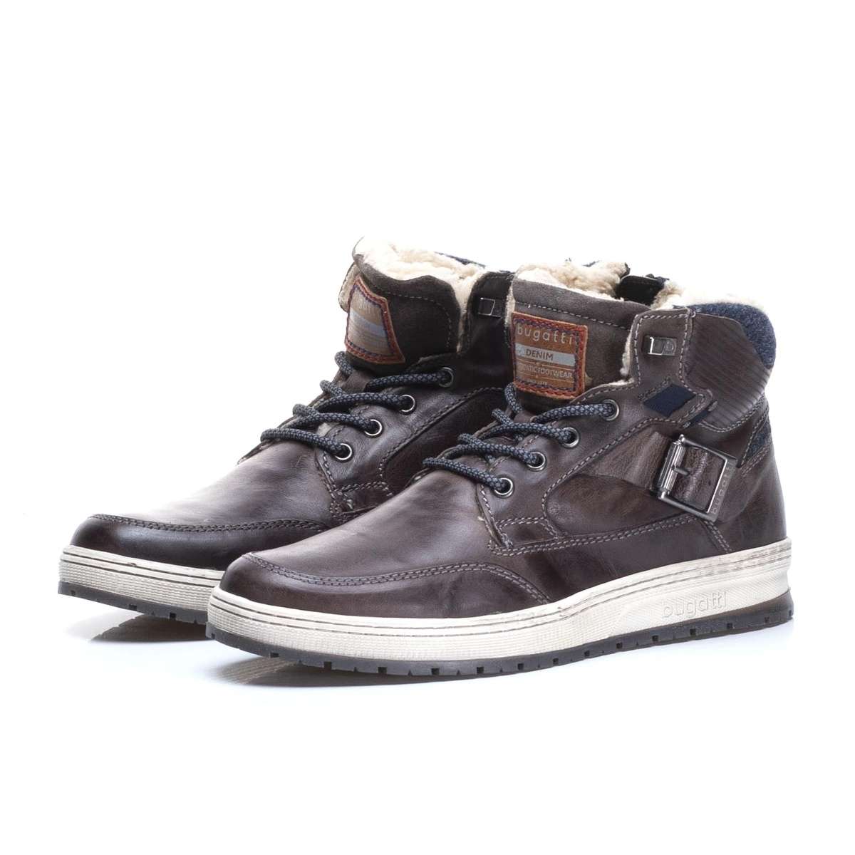 Pánská kožená kotníková obuv sportovního vzhledu, značky BUGATTI.