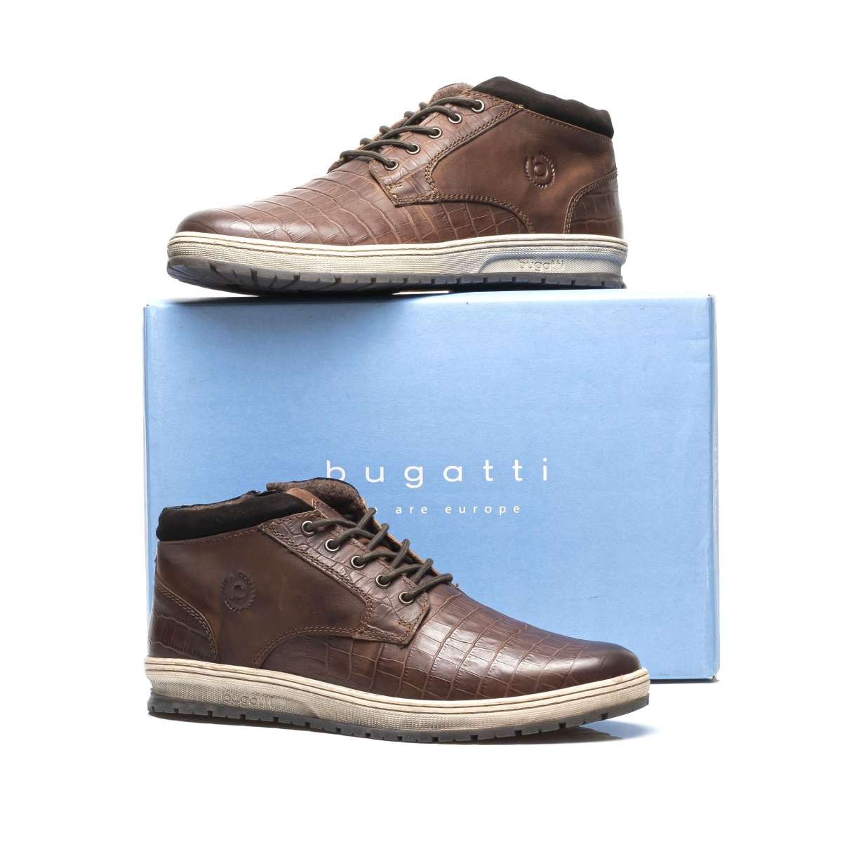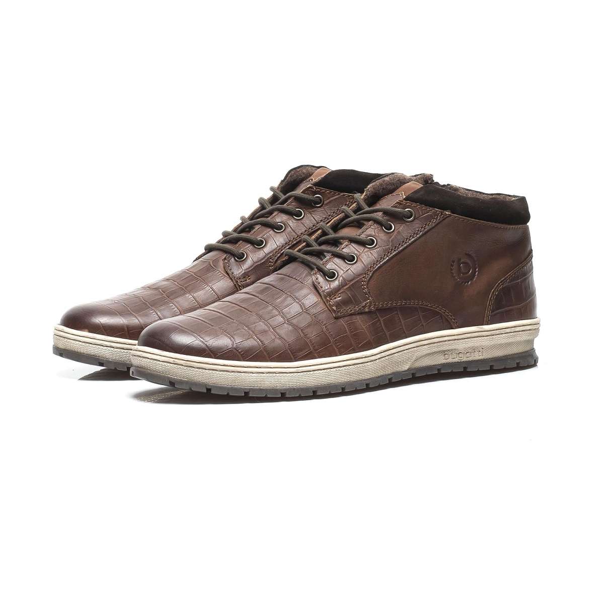 Pánská kotníková obuv z hnědé hladké kůže, značky BUGATTI.