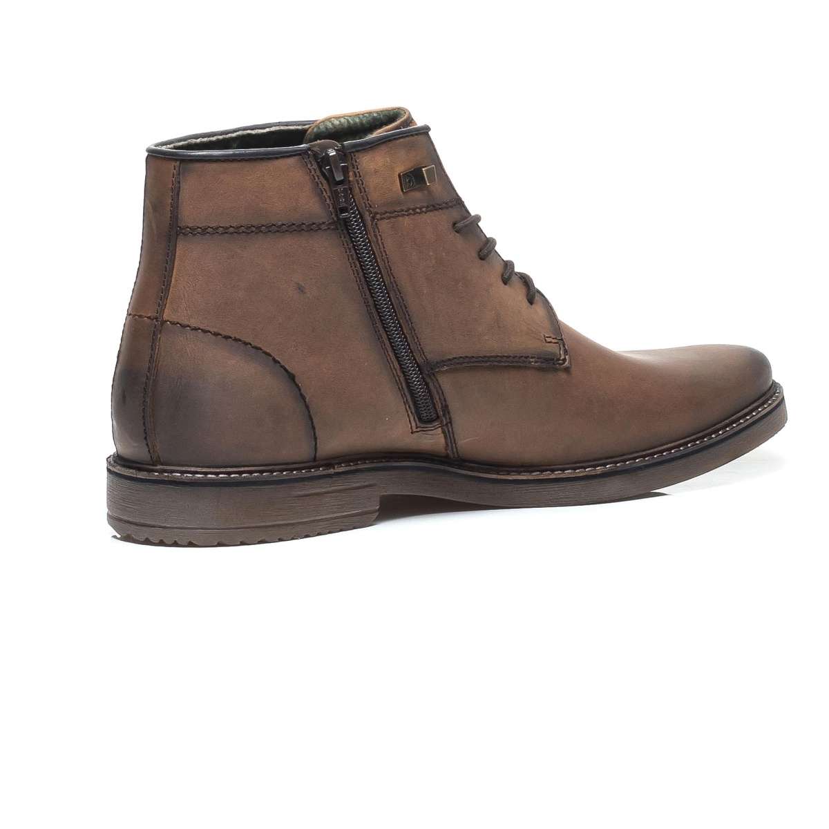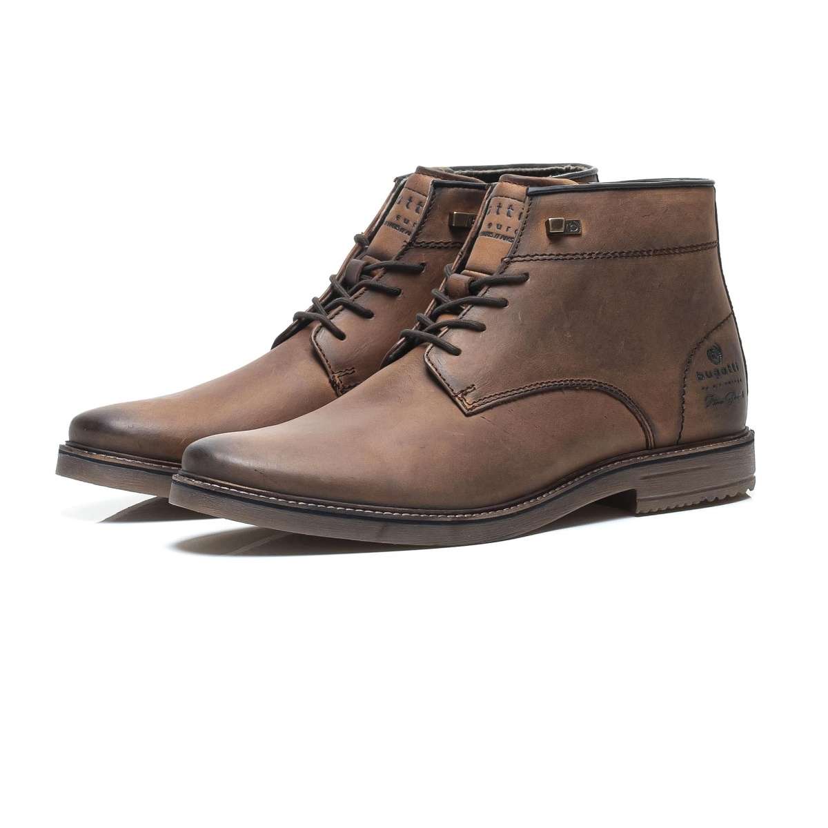 Pánské kotníky šité z pravé kůže v hnědé barvě jsou zdobené elegantním šitím a nápisem Bugatti na jazyku i na vnější straně paty. Mají užší kulatou špičku a jemně sametový povrch. Šněrováním si je upravíte dle svých požadavků. Na vnitřní straně je funkční zip pro snadné obutí. Tento model užijete k procházkám podzimní krajinou i na cestu do práce.