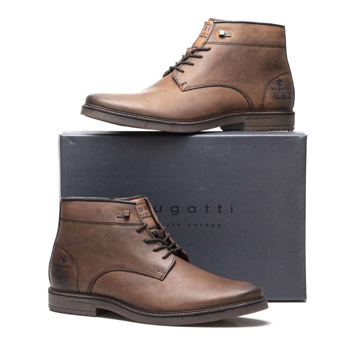 Pánská kotníková obuv z hnědé kůže, značky BUGATTI.