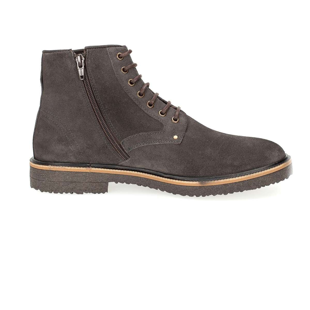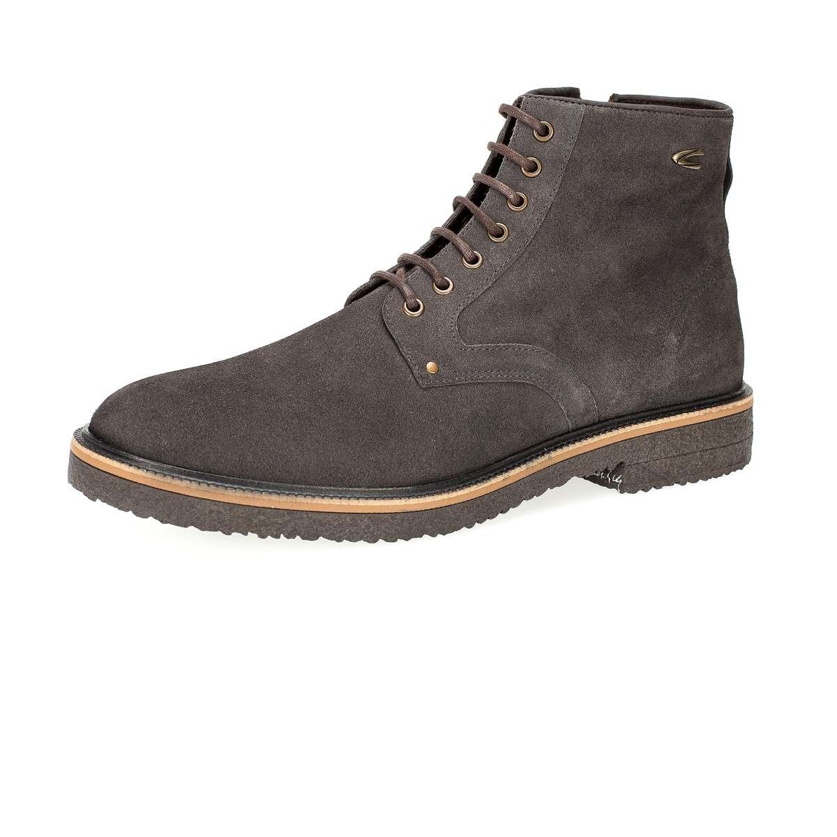Kožené kotníkové boty pro moderního muže v šedé barvě mají svršek šitý z pravé broušené kůže s neodmyslitelným logem Camel na vnější straně. Moderní vzhled sportovně elegantního kotníku oceníte při každodenním nošení a pohodlnost při dlouhé chůzi. Zip z vnitřní části kotníku Vám ulehčí nazouvání a šněrováním si dokonale botu přizpůsobíte k Vaší noze. Pevnou a stabilní podešev s hrubším vzorkem oceníte na kluzném povrchu.