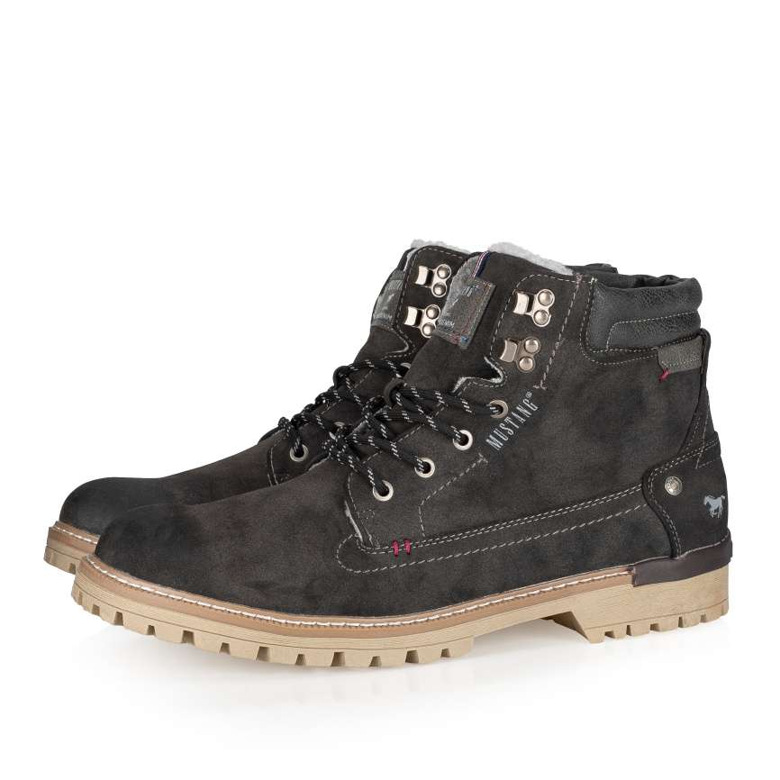 Pánské kotníkové boty od značky MUSTANG se strakatými tkaničkami a prošitým lemem u horního okraje. Šněrováním si obuv můžete upravit přesně podle Vašich představ a funkční zip na vnitřní straně skvěle napomůže při nazouvání. Hřejivá podšívka s pohodlnou stélkou se postarají o komfort při celodenní chůzi. Kvalitní podešev s hrubým vzorkem zabrání uklouznutí a zajistí Vám pocit bezpečí. S tímto tmavě šedým modelem můžete vyrazit například na procházku městem nebo na posezení s přáteli.