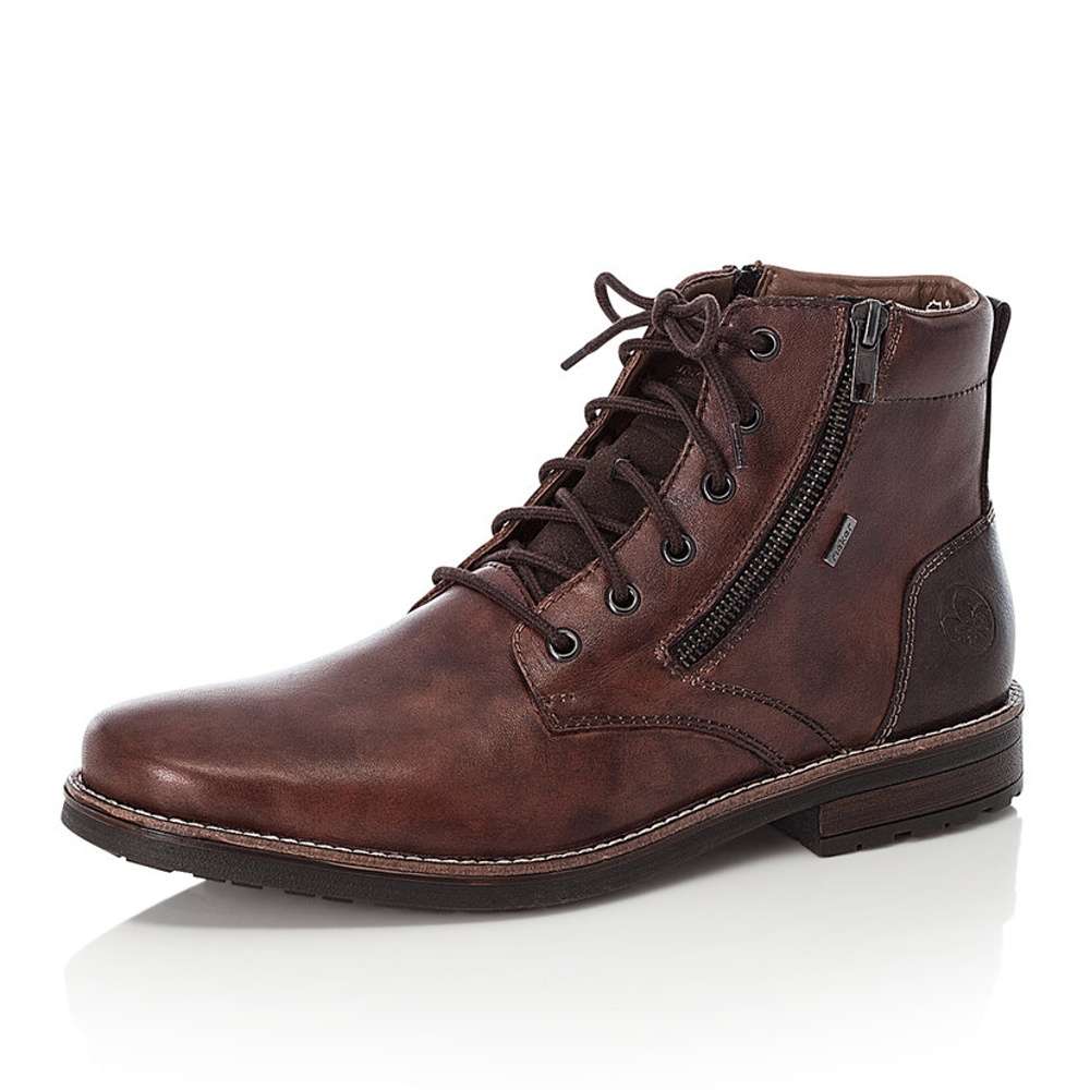 Obuv značky RIEKER je vyrobena z pravé kůže v hnědé barvě, má designový zip u tkaniček a v patní části obšitý tmavý vzorek. Tkaničky na šněrování slouží pro lepší přizpůsobení přímo na Vaši nohu. Skvěle je využijete například na procházku zimním městem.