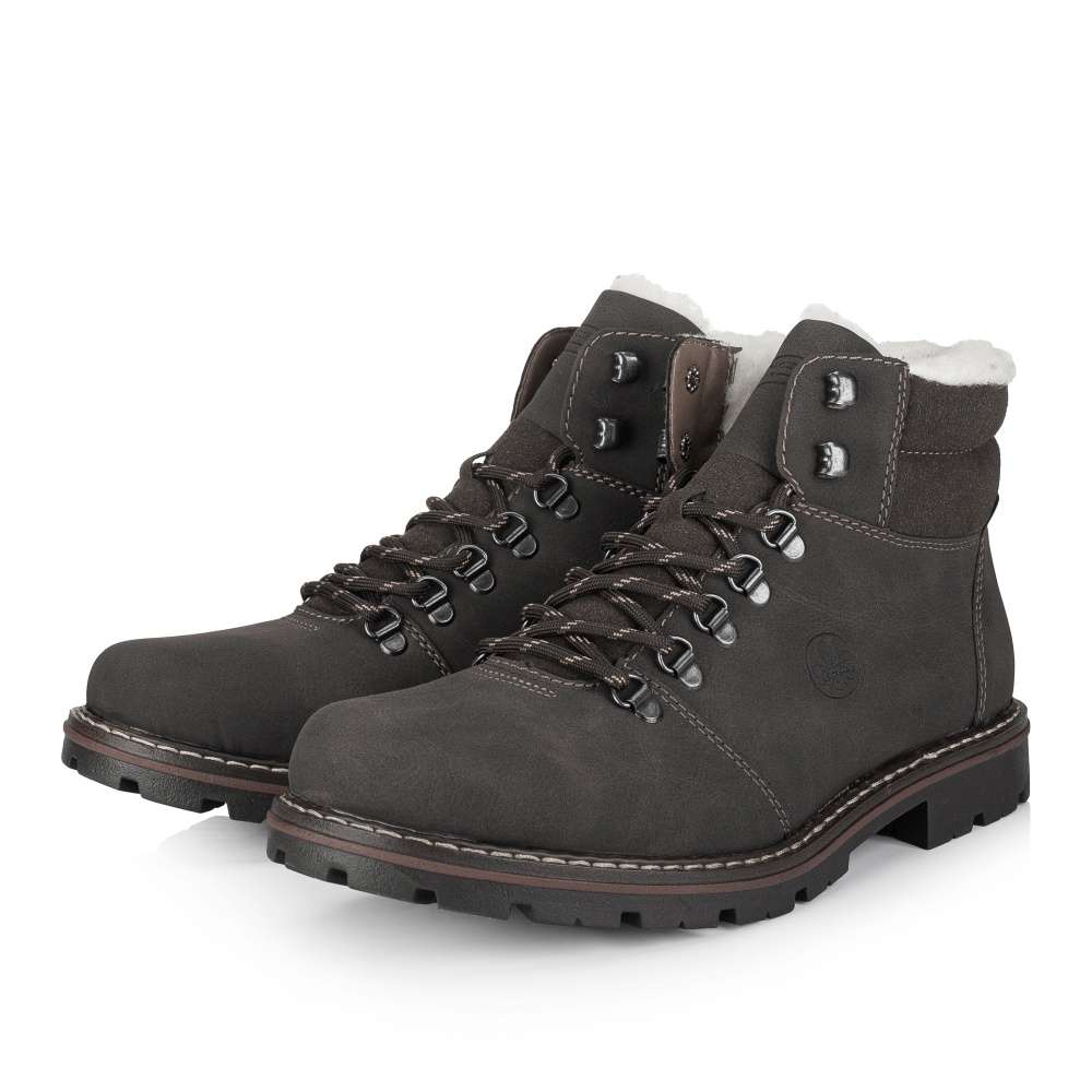 Zimní kotníková obuv od značky RIEKER, která Vás díky zateplení zahřeje i v těch nejchladnějších měsících. Svršek boty upoutá kontrastním prošíváním a vtlačeným logem po boku. Tkaničkami na šněrování si boty můžete upravit přesně podle Vašich představ. S pohodlnou stélkou a hrubší podešví se můžete těšit na komfortní a bezpečnou chůzi po celý den nošení. Tyto pánské boty budou úžasným doplňkem pro každého muže. Technologie: Antistress – podešev je díky této technologii lehká, flexibilní, absorbuje nárazy při došlapu a snadno se přizpůsobí každé noze. Podšívka je vyrobena z pravé jehněčí vlny.