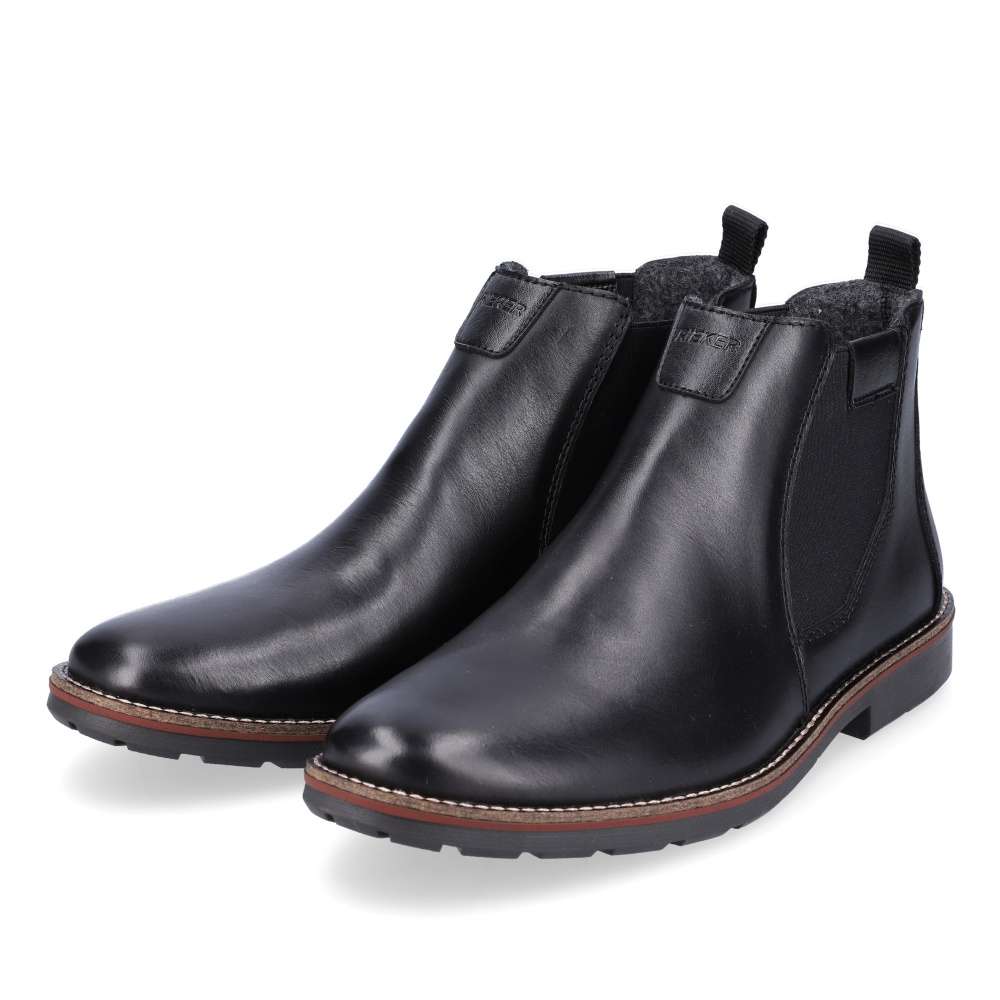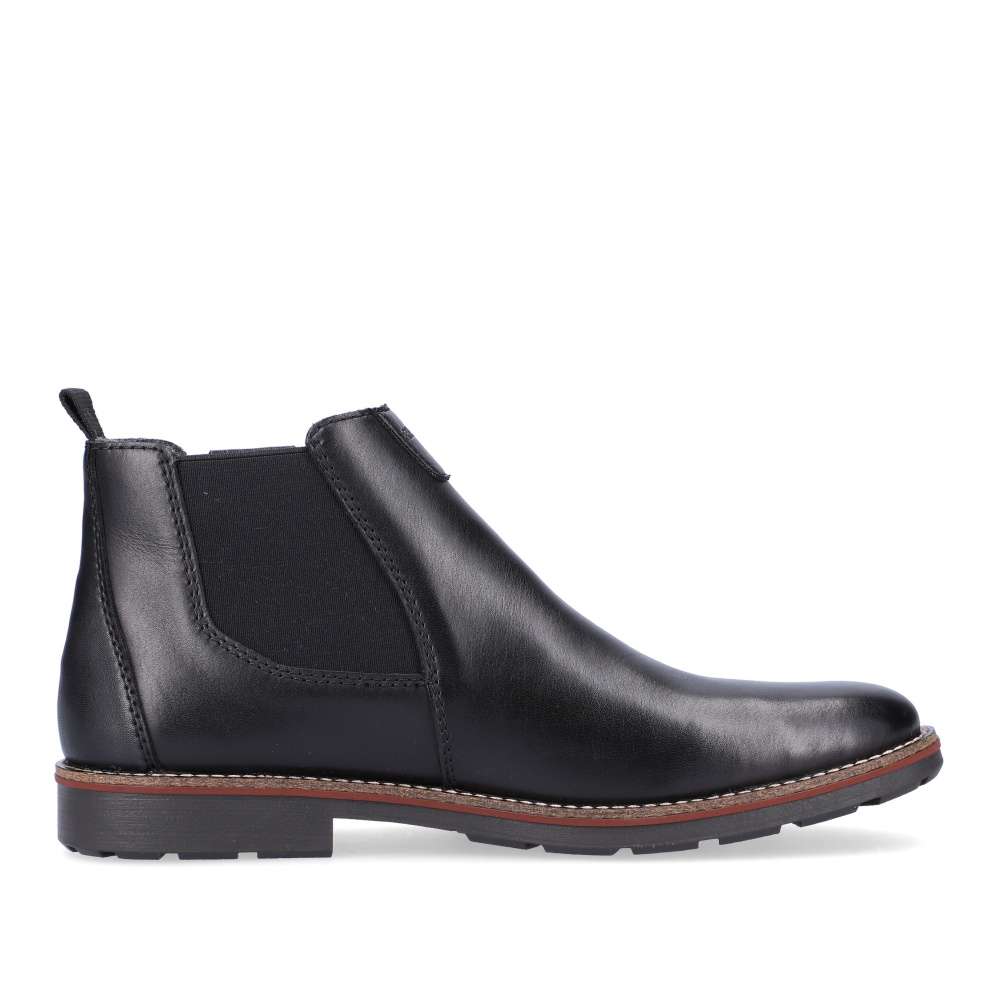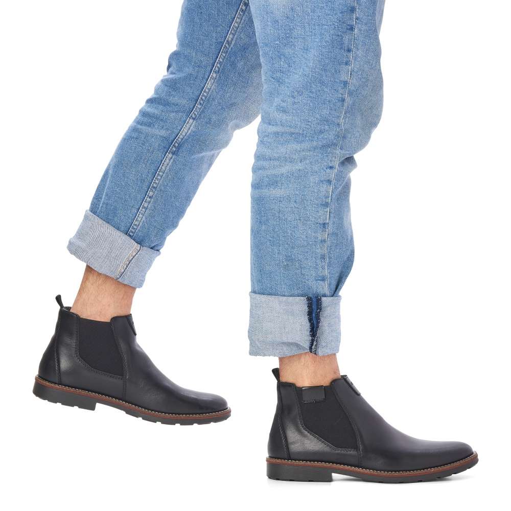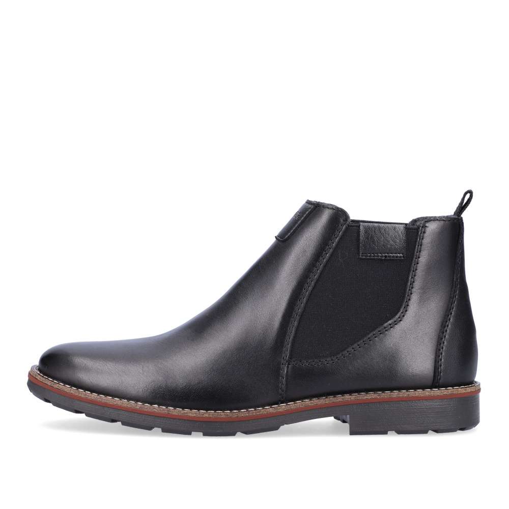 Pánská kotníková obuv z přírodní usně značky RIEKER v černé barvě působí velice elegantně. Je dozdobená kontrastním lemováním podešve a dvojitým prošitím. Lehce pružná všitá guma po obou stranách a poutko u horního okraje Vám usnadní nazouvání. Měkká stélka Vám zaručí pohodlí po celý den. Tento skvělý model sladíte snad s každým outfitem. Technologie: Antistress – podešev je díky této technologii lehká, flexibilní, absorbuje nárazy při došlapu a snadno se přizpůsobí každé noze.