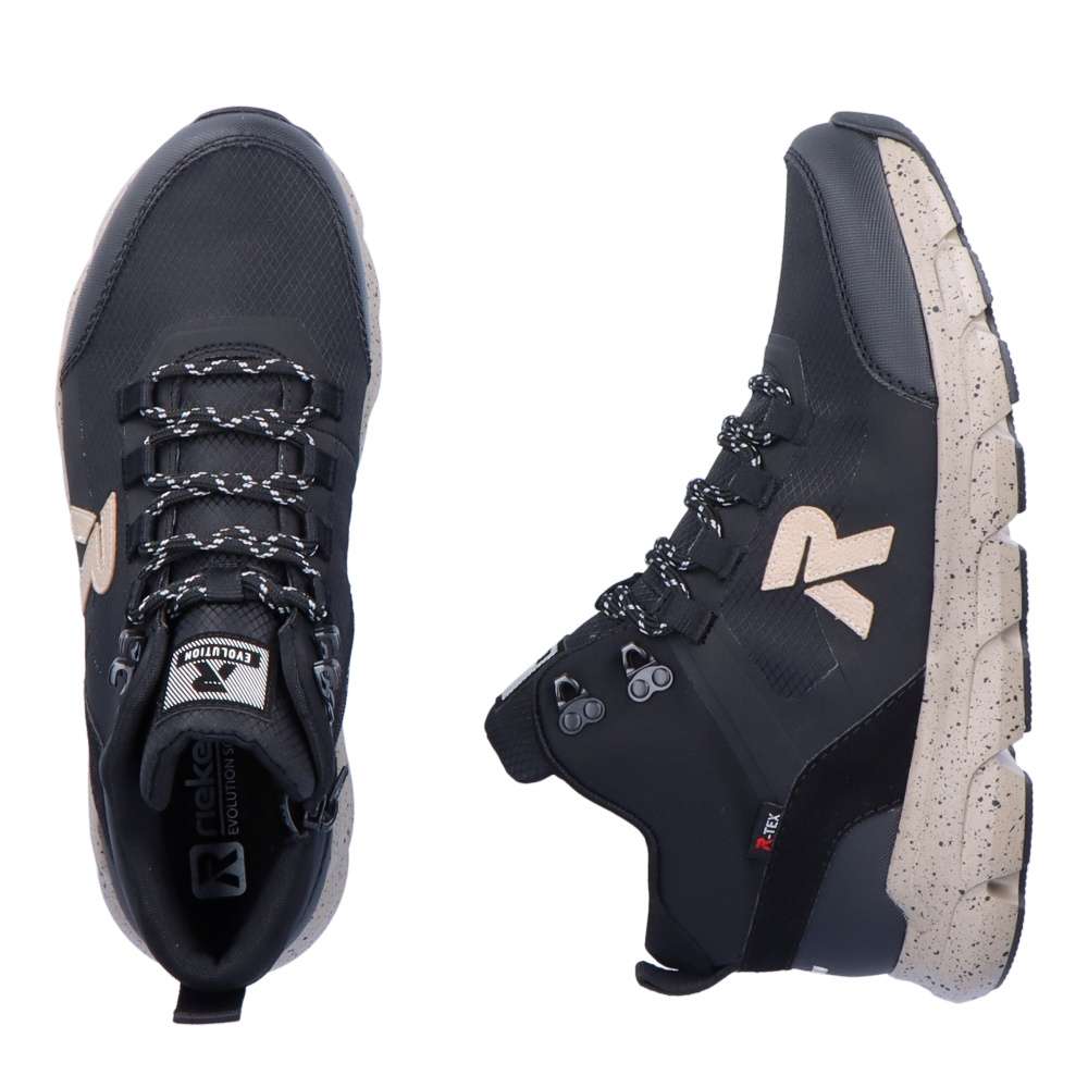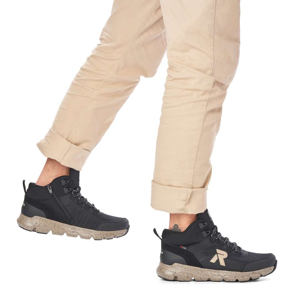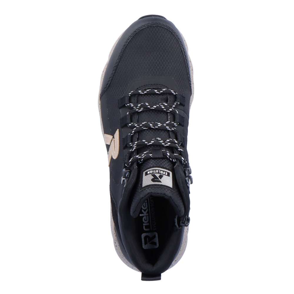 Detailní informace Rieker Revolution je nová řada moderní sportovní obuvi s obrovským důrazem na komfort a pohodlí i při celodenním nošení. Krásný stylový sportovní kotník značky Rieker, který Vám nabízíme v tomto perfektním černém provedení doplněný béžovou barvou, bude skvělým parťákem pro Váš podzim. Svršek boty je v kombinaci materiálů, díky kterým se perfektně přizpůsobí Vašemu chodidlu. Vyjímatelná stélka Revolution Soft ve které se budete cítit jako na obláčku a díky šněrovacímu systému a zipu z vnitřní strany si tenisku upravíte dle Vašeho pohodlí. Membrána TEX se postará o nepromokavost a prodyšnost zároveň. Váš podzimní den nebude vůbec, tak sychravý, jak by se mohlo zdát, díky našim botám a vašemu pohodlí.
