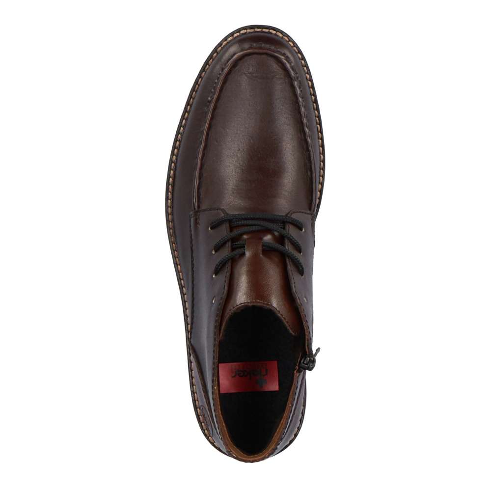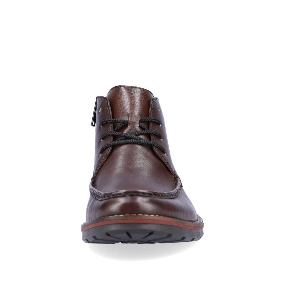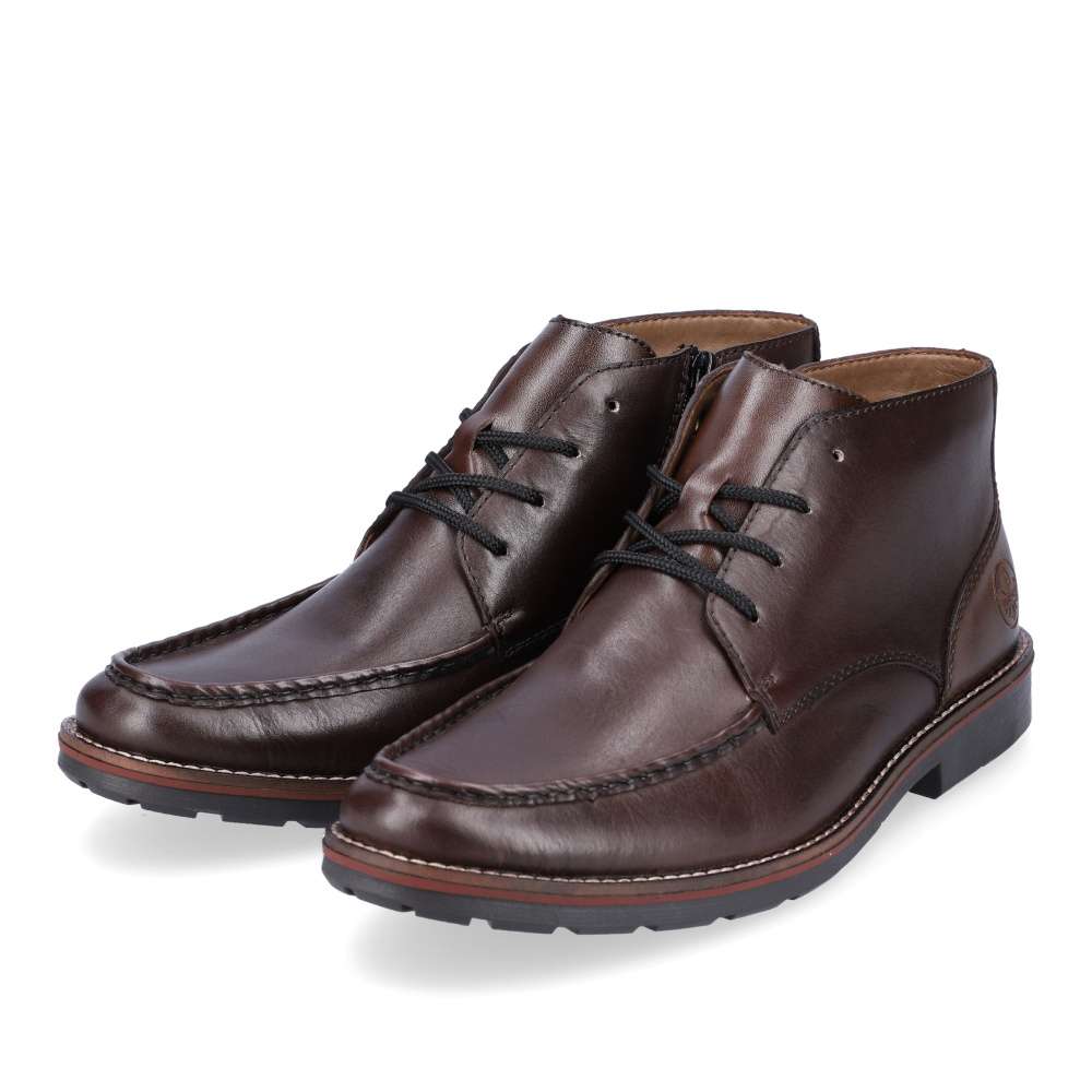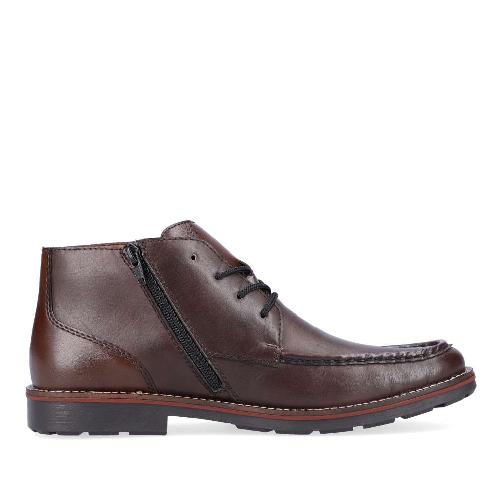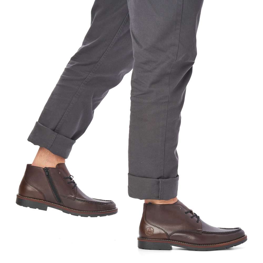 Tato pánská obuv značky RIEKER v tmavě hnědé barvě působí na první pohled velice elegantně. Hladký svršek je vyroben převážně z přírodní usně a ozvláštněn vystouplým švem na špičce. Ke snadnému nazutí poslouží praktický zip z vnitřní strany a tkaničkami na šněrování si boty lehce přizpůsobíte na své chodidlo. Měkká vyjímatelná stélka Vám zaručí pohodlí po celý den. S tímto módním kouskem rozhodně uděláte ten správný krok.