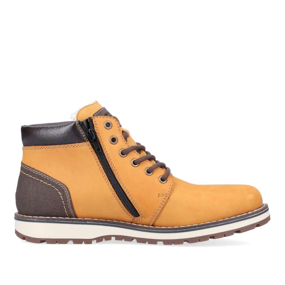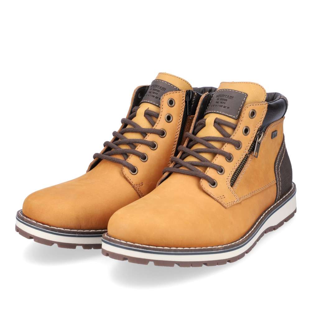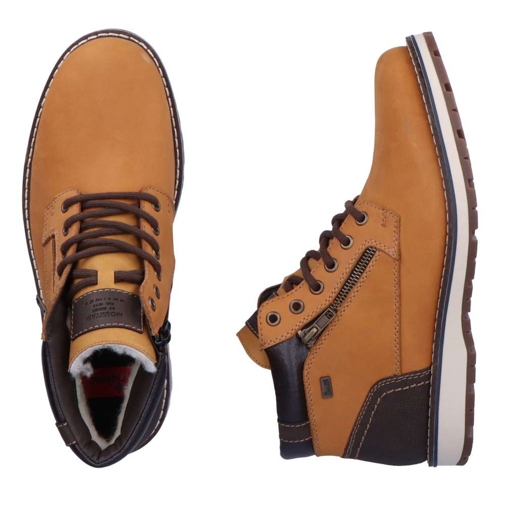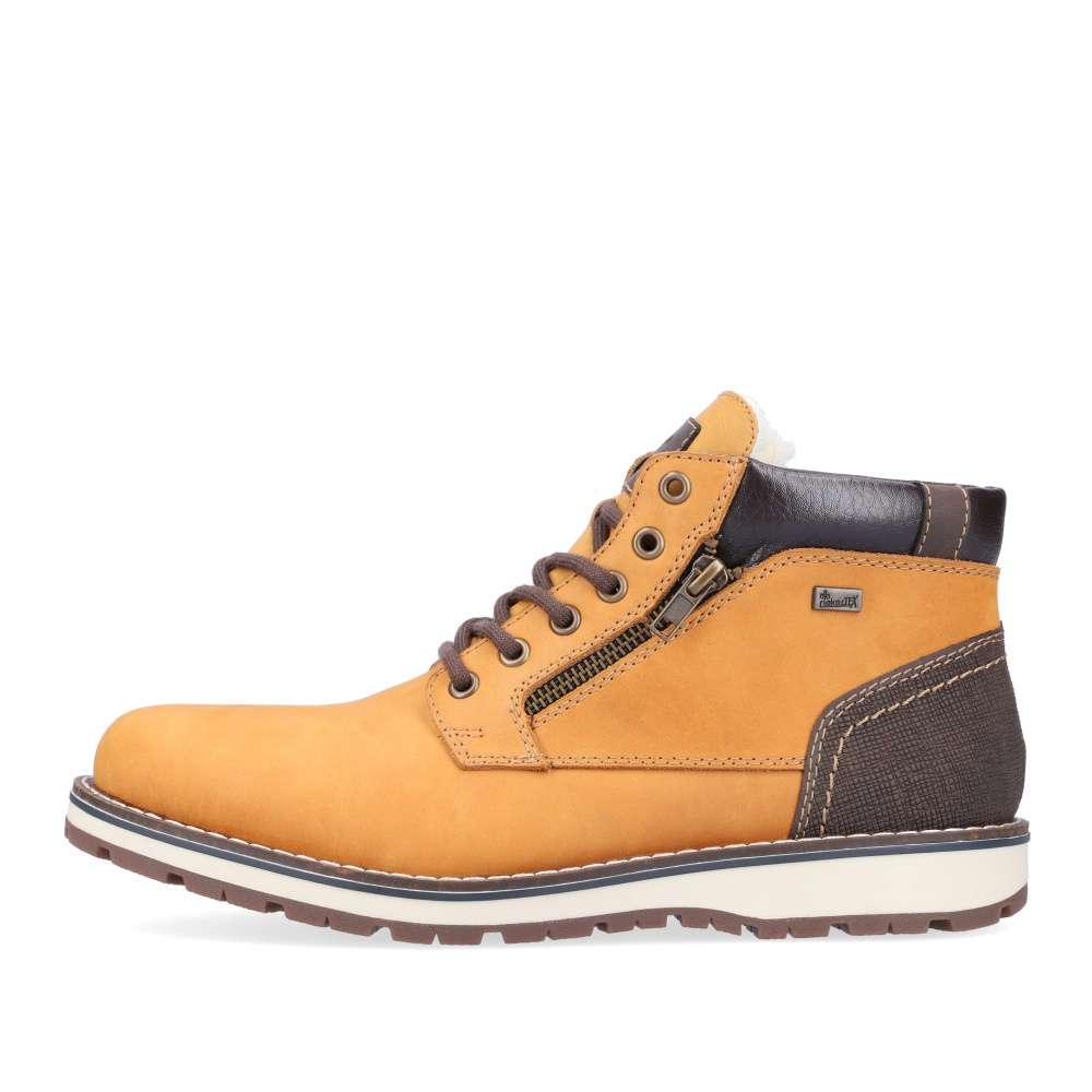 Tato obuv je originální zejména, díky kontrastně sladěné podešvi a stylově použitému zdobnému zipu na vnější straně. Obuv od značky RIEKER má na vnitřní straně funkční zip a tkaničkami si obuv můžete utáhnout přesně podle Vašich představ. S pohodlnou stélkou a hrubší podešví se můžete těšit na komfortní a bezpečnou chůzi po celý den nošení. S těmito zateplenými botami z pravé jehněčí vlny budou zimní dny hned o něco veselejší. Technologie: Antistress – podešev je díky této technologii lehká, flexibilní, absorbuje nárazy při došlapu a snadno se přizpůsobí každé noze. Rieker TEX – funkční vrstva, díky které je bota nepromokavá a přesto prodyšná. Podšívka je vyrobena z pravé jehněčí vlny.