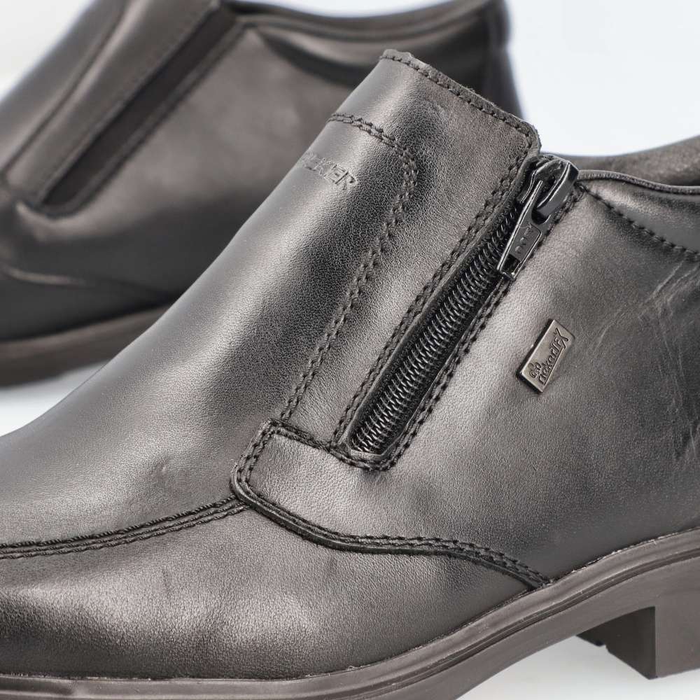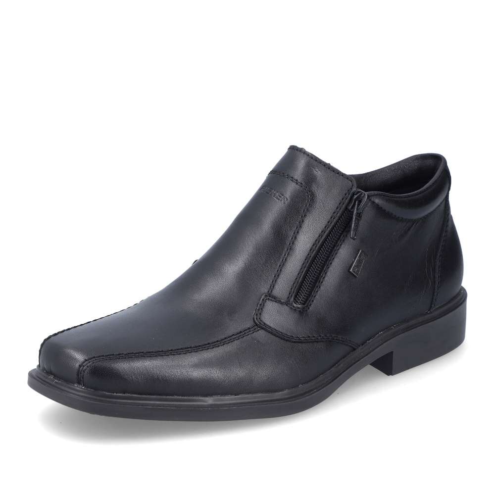 Detailní informace Pánské kožené boty RIEKER budou dokonalým doplňkem Vašeho vzhledu, díky nepromokavé membráně Vás budou provázet i v sychravém počasí a nemusíte se obávat promoknutí. Díky zipu na nártu je jednoduše nazujete a můžete si užívat měkkost stélky, která je přizpůsobena širšímu chodidlu. Ideální obutí do práce i na procházku s rodinou.