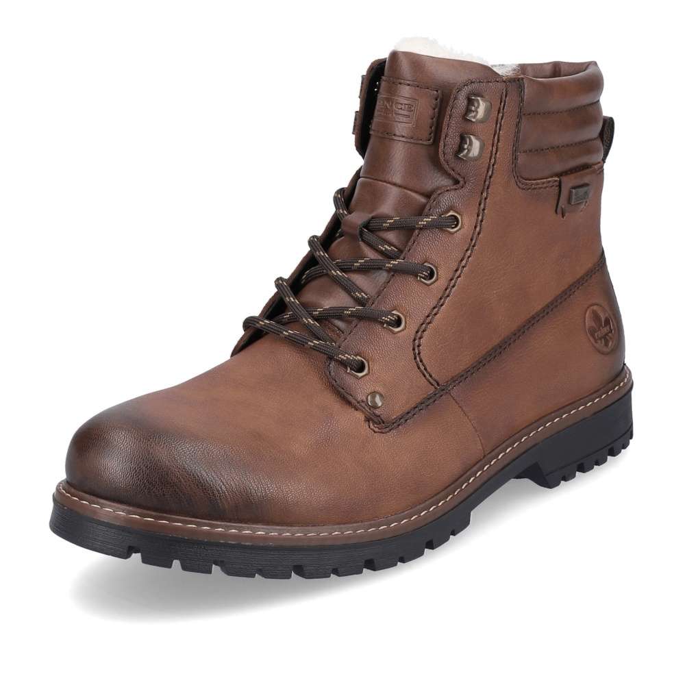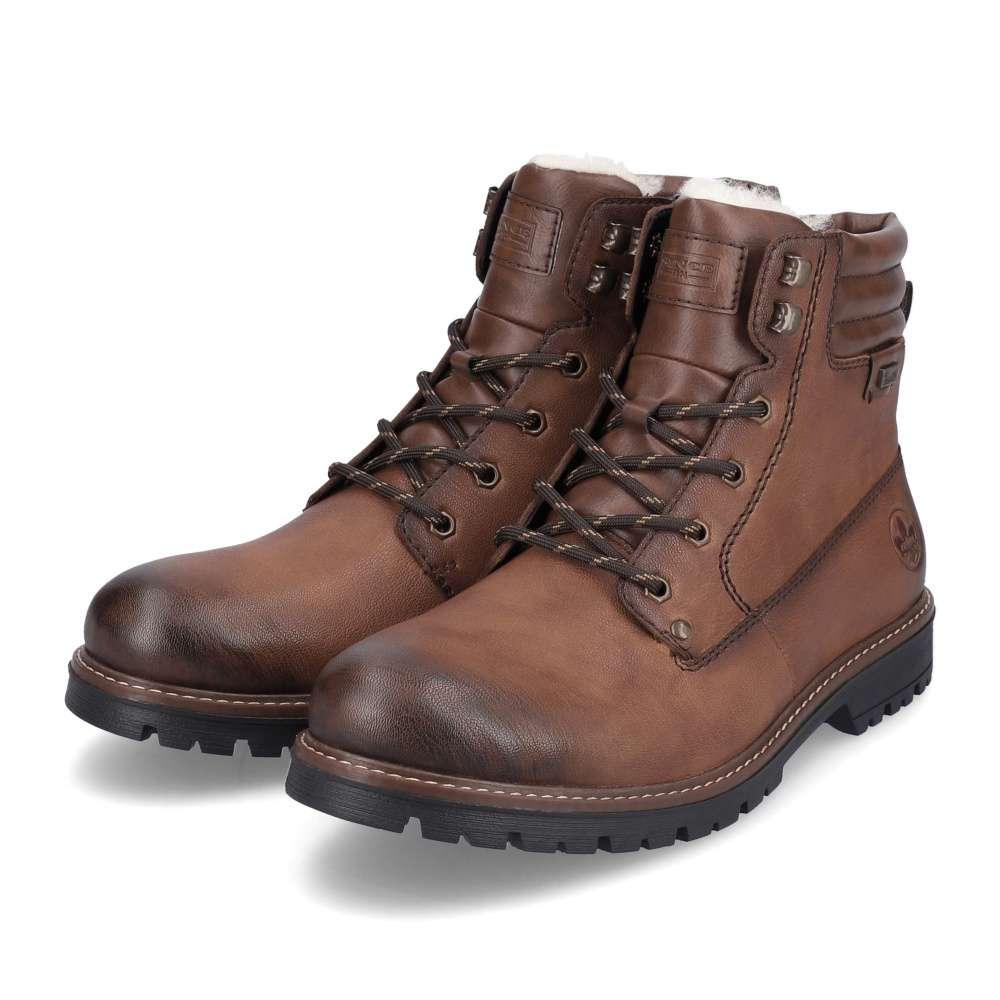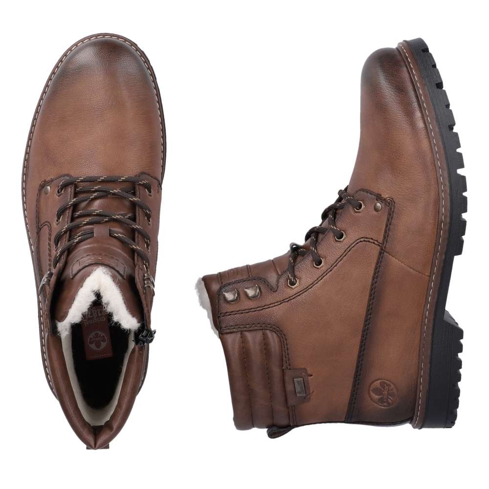 Tyto kvalitní kožené kotníkové zimní boty značky Rieker jistě zaujmou svým jednoduchým klasickým vzhledem a funkčností všechny muže, kteří hledají tu pravou obuv do sněhových dní. Díky vysokému střihu obuvi v kombinaci se speciální membránou TEX a podšívkou vyteplenou pomocí ovčí vlny, se tato obuv stává nepromokavou a neuvěřitelně hřejivou, zároveň však prodyšnou a příjemnou na nošení. To vše navíc s dopomocí měkké stélky. Kromě šněrování se nachází na této obuvi postranní zip pro snazší obouvání. Díky kombinaci všech těchto faktorů si tyto boty značky Rieker tak oblíbíte, že už nebudete chtít nosit žádné jiné. Technologie: Antistress – podešev je díky této technologii lehká, flexibilní, absorbuje nárazy při došlapu a snadno se přizpůsobí každé noze. Rieker TEX – funkční vrstva, díky které je bota nepromokavá a přesto prodyšná. Podšívka je vyrobena z pravé ovčí vlny.