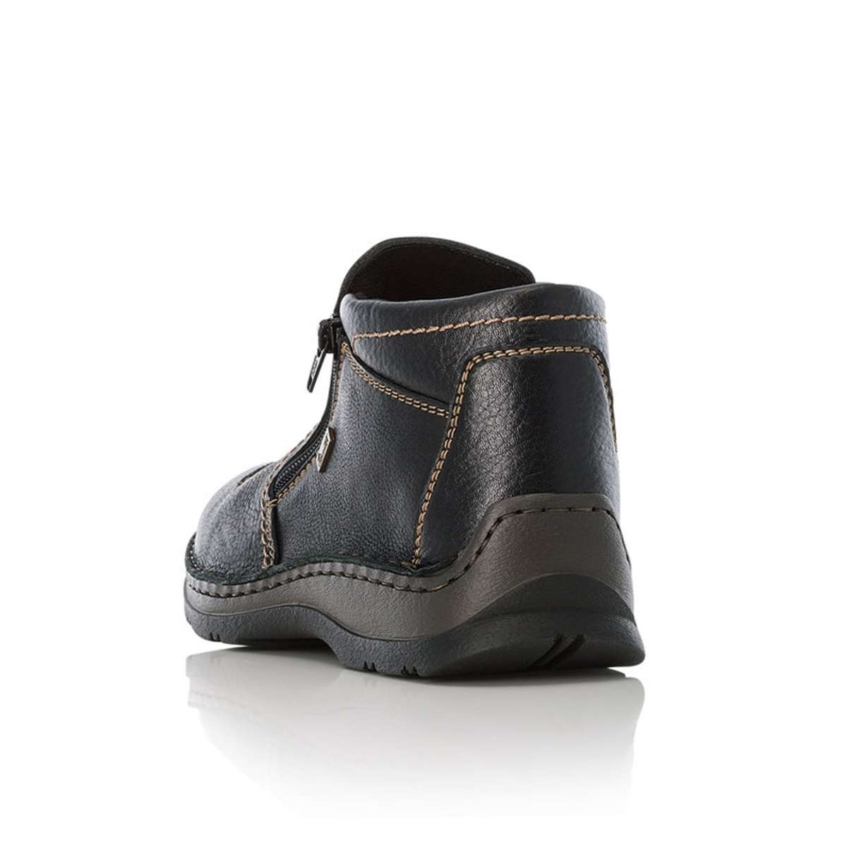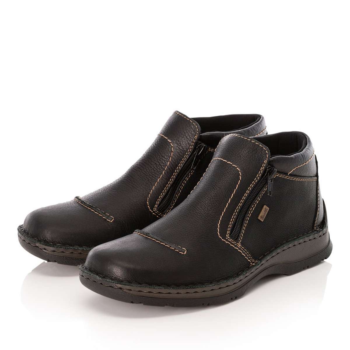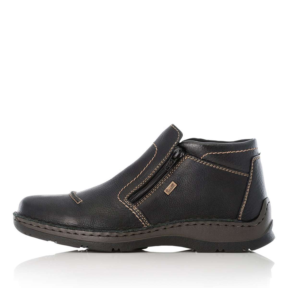 Pánské kotníky v černé barvě od značky RIEKER jsou vyrobené z přírodní usně. Kovové logo a prošití světle hnědou nití zaujme už na první pohled. Obuv má dva boční zipy, které Vám usnadní nazouvání, a navíc také oceníte zateplenou podšívku z pravé ovčí vlny, která Vás zahřeje při chladném počasí. Pohodlí na každém kroku zase zajistí měkká stélka a podešev vysoká cca 3 cm je díky technologii Antistress lehká a flexibilní. Tento model unosíte jak do práce, tak i na běžné pochůzky městem. Technologie: Rieker TEX – funkční vrstva, díky které je bota nepromokavá a přesto prodyšná. Podšívka je vyrobena z pravé ovčí vlny. Antistress – podešev je díky této technologii lehká, flexibilní, absorbuje nárazy při došlapu a snadno se přizpůsobí každé noze.