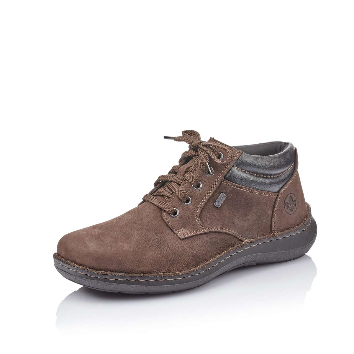 Pánská obuv v hnědém provedení je vyrobena z pravé kůže a decentně ozdobena výraznějším prošitím a logem značky. Tento model jistě ocení pánové, kteří mají rádi elegantnost a zároveň se chtějí cítit pohodlně. Boty mají kulatou špičku a šněrování, kterým si upravíte obuv přímo na Vaši nohu. Jistě také oceníte zateplenou podšívku z pravé ovčí vlny, která Vás příjemně zahřeje i v období mrazíků. Svršek je obohacen funkční vrstvou Rieker TEX, díky které je bota nepromokavá, a přesto prodyšná.