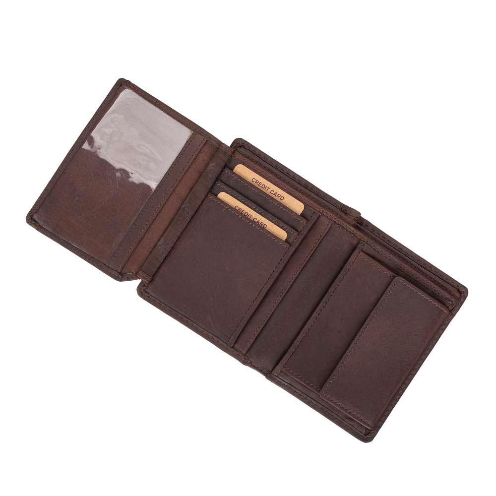 Pánská kožená peněženka RIEKER v hnědém provedení zaujme svým precizním zpracováním a nadčasovým designem. Logo značky na přední straně podtrhuje kvalitu a originalitu tohoto modelu. Vnitřní uspořádání nabízí praktickou kapsu na mince se zapínáním na druk, přihrádky na bankovky a karty, nechybí ani průhledná přihrádka ideální na doklady nebo oblíbenou fotografii. Stylový a funkční doplněk pro moderního muže. Rozměry: cca V 12,5 cm x Š 9,5 cm x H 2,5 cm