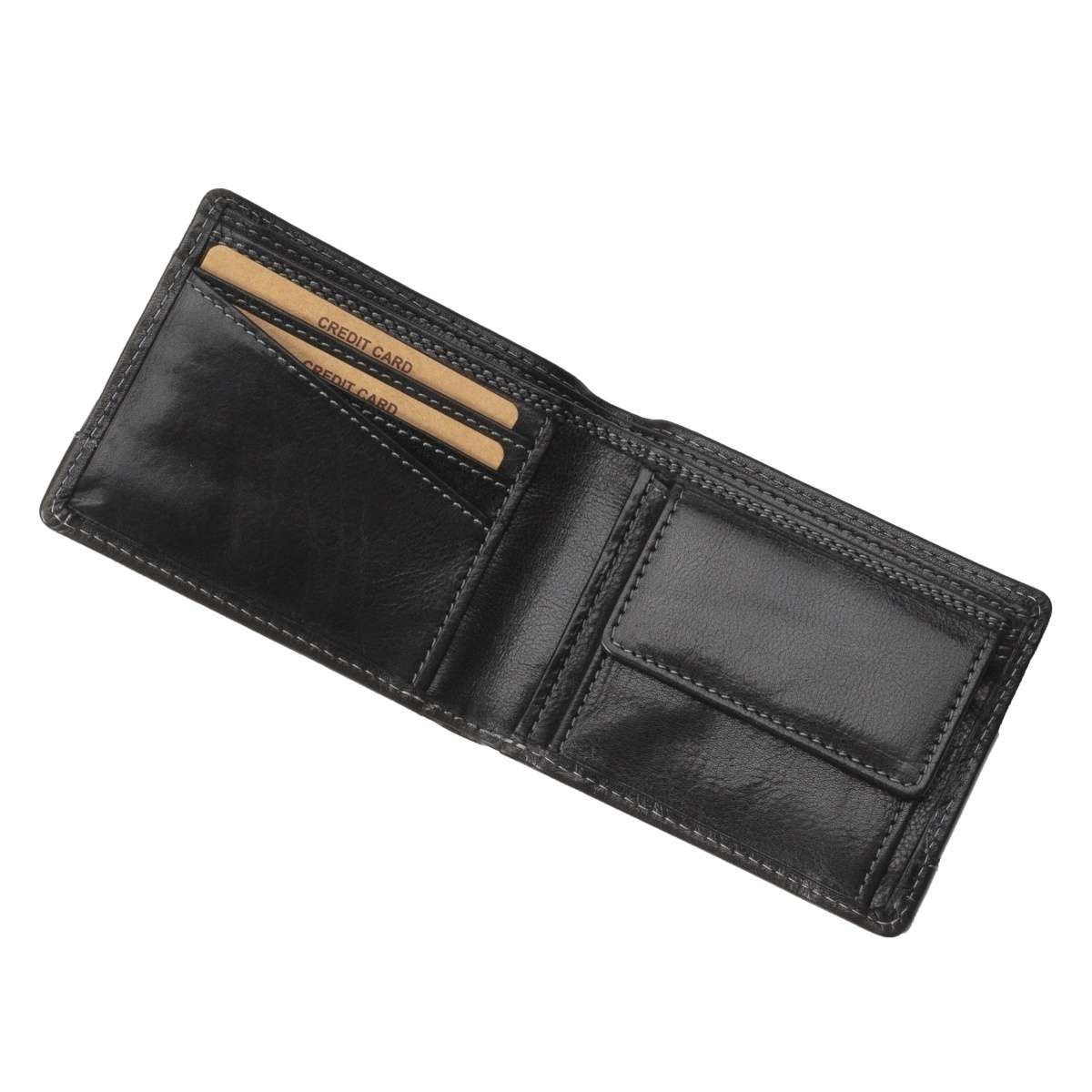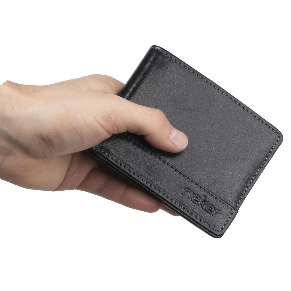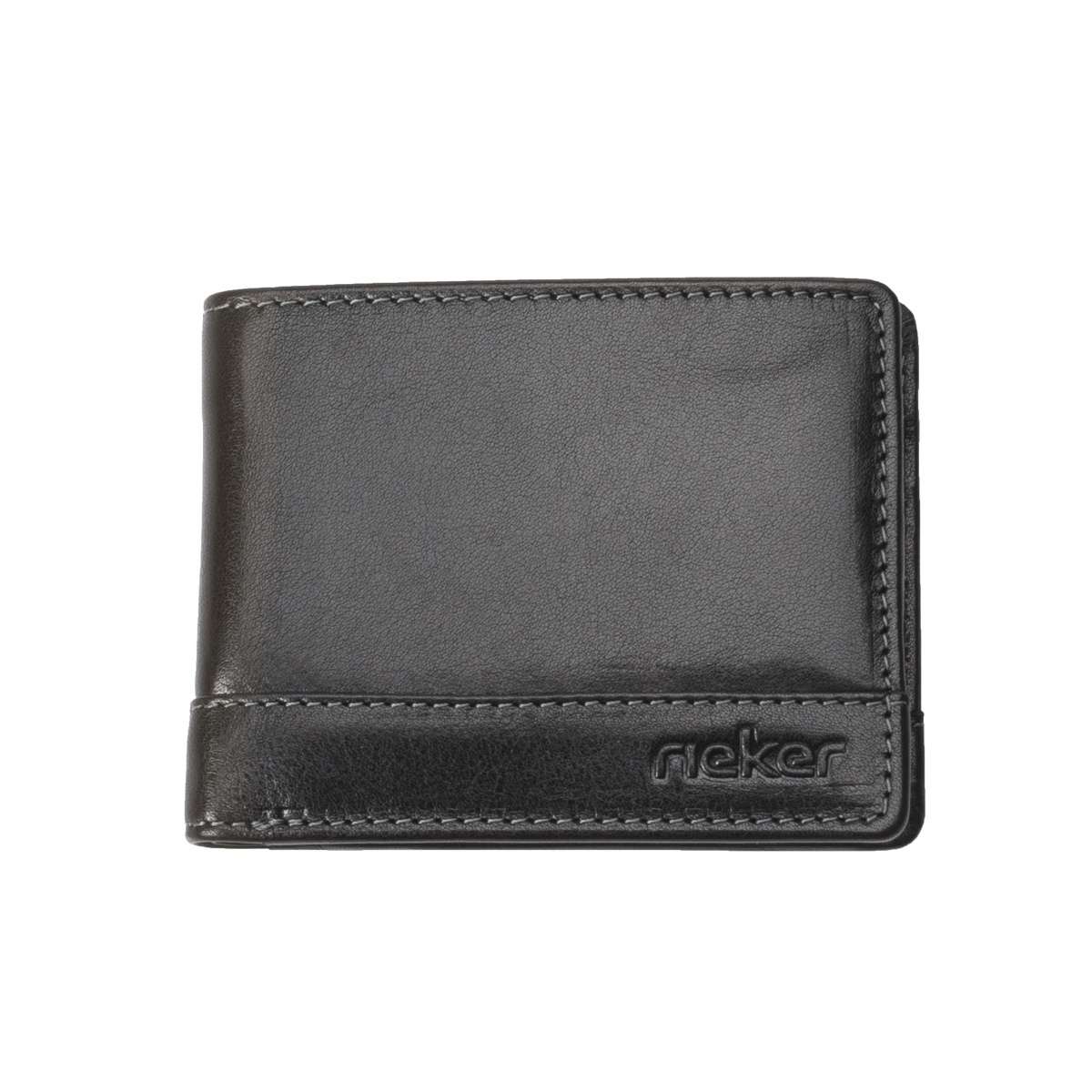 Zajímavá pánská peněženka Rieker přesně pro Vás. Svršek peněženky vyrobený z kvalitní hovězí kůže černé barvy je na přední straně ozdoben lehce vystouplým nápisem značky i elegantním šitím. Po otevření zde najdeme praktické kapsičky na karty, papírové peníze i kapsičku na kovový druk, vhodnou třeba na drobné mince. Velmi příjemný a praktický kus, který vždy oceníte.