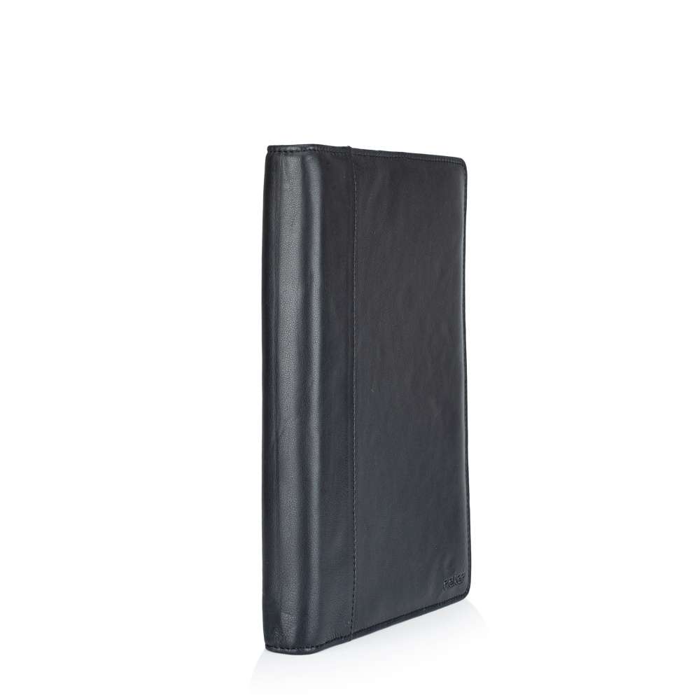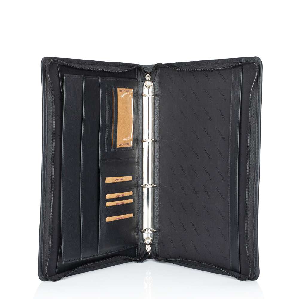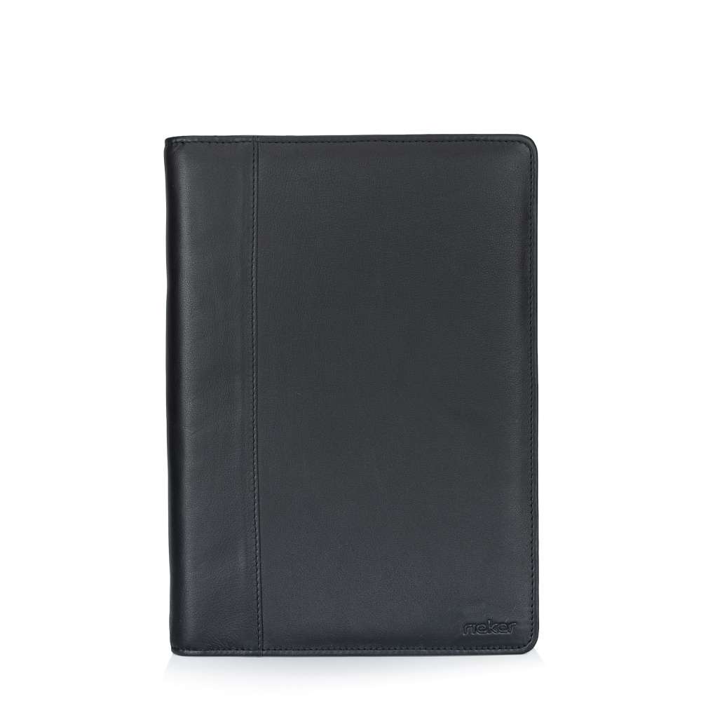 Elegantní kožený organizér pro dokumenty značky RIEKER je ideálním doplňkem pro muže, kteří hledají stylový a praktický způsob, jak mít všechny dokumenty přehledně uspořádány. Hladký kožený svršek doplňuje decentní logo značky, které podtrhuje jeho nadčasový vzhled. Organizér je vybaven zipem, který odhaluje vnitřní prostor s kovovými úchyty pro uložení dokumentů. Boční díl jedné strany obsahuje menší otevřené přihrádky a kapsičky vhodné pro karty, doklady či jiné menší dokumenty, které chcete mít vždy po ruce. Druhá část má otevřený prostor kopírující celou boční část. Tento model spojuje kvalitu materiálů, elegantní design a praktické členění, díky čemuž je ideálním společníkem do práce, na setkání nebo služební cesty.