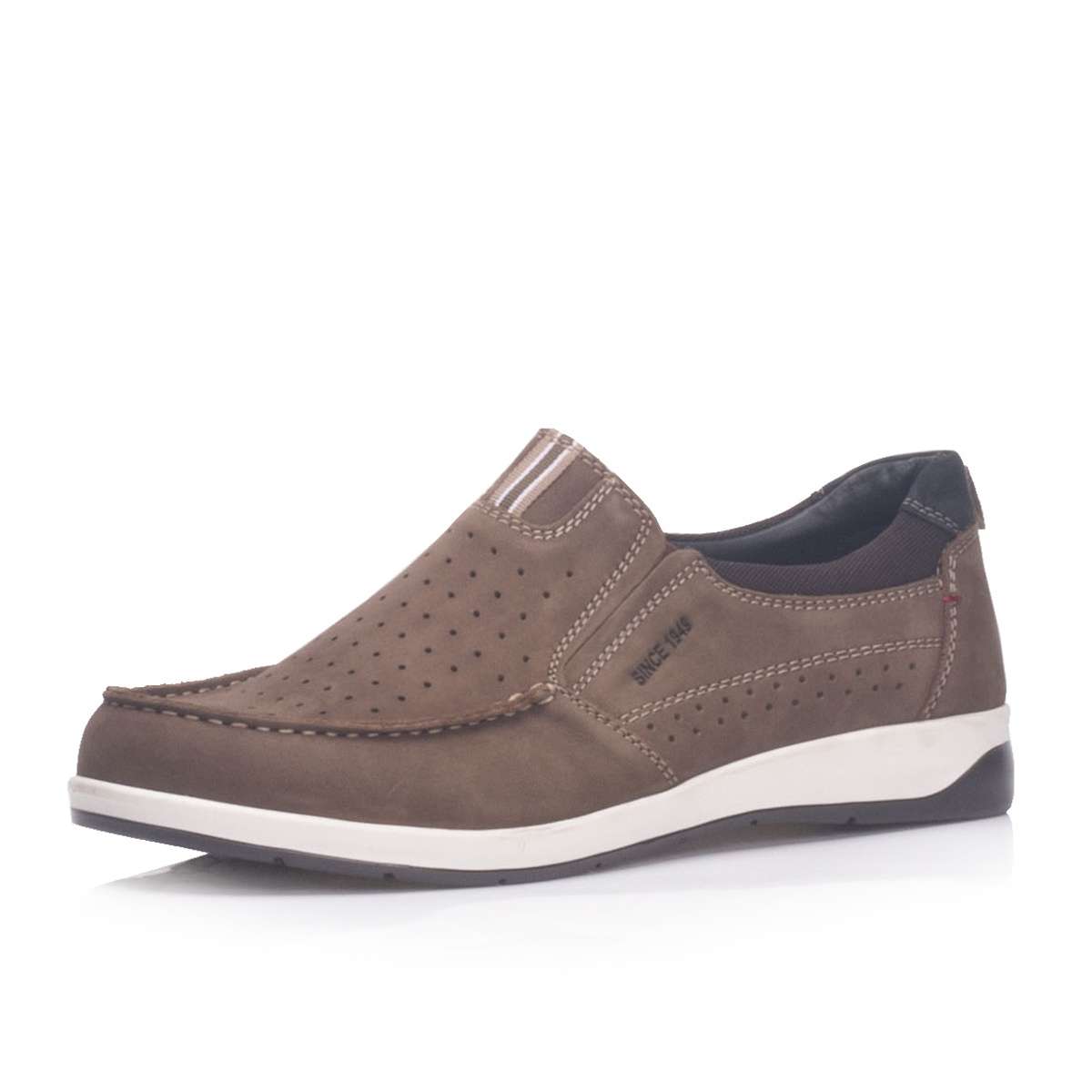Tyto mokasíny z broušené kůže oceníte v teplejších měsících. Zdobnými prvky jsou povrchová perforace, kontrastní prošívání a snadné nazouvání umožňují pružné gumičky všité po stranách obuvi. Můžete v nich vyrazit do práce, ale i na procházku do města. Skvěle budou vypadat k lehkým plátěným kalhotám.