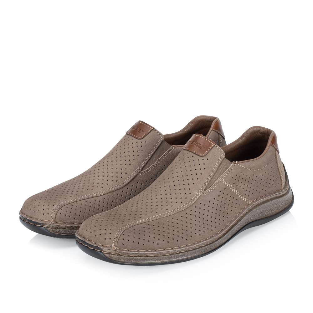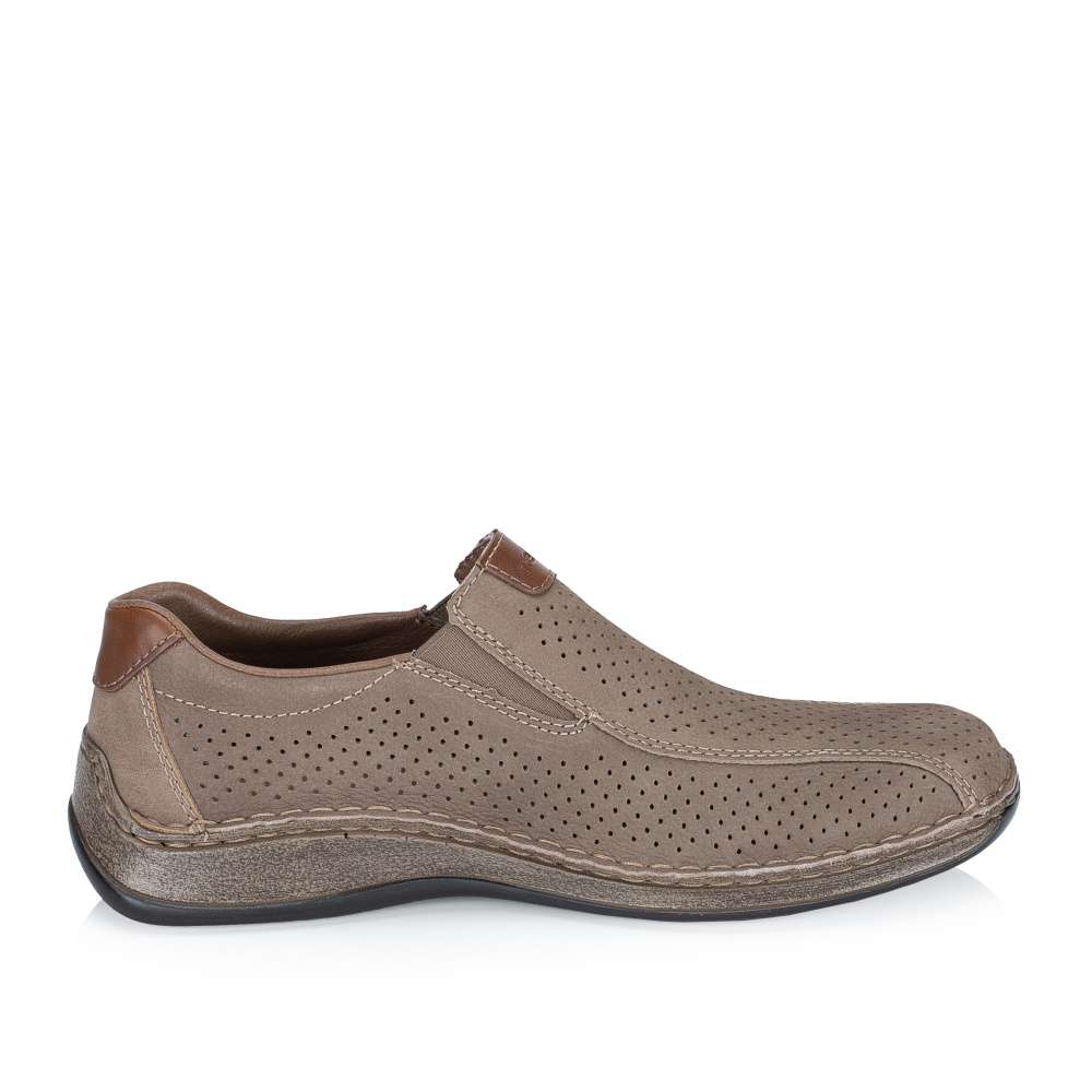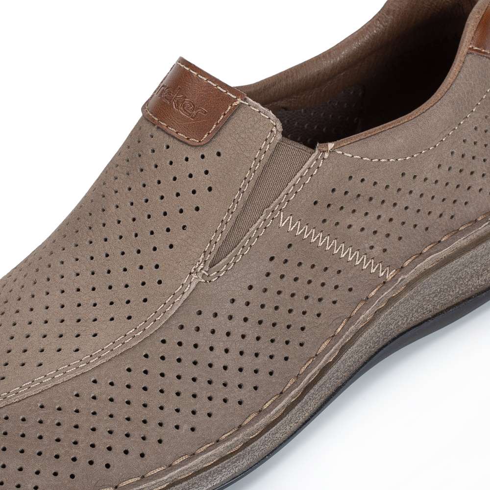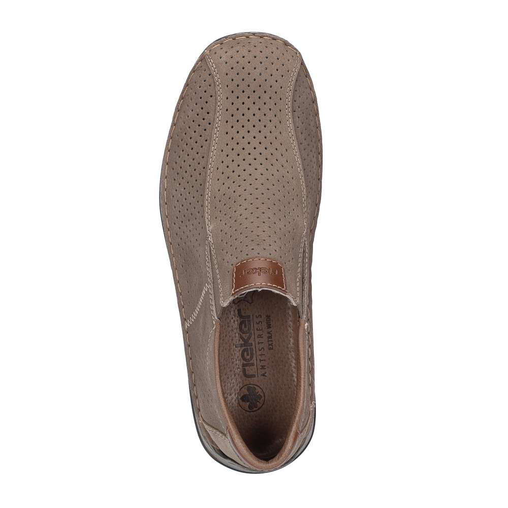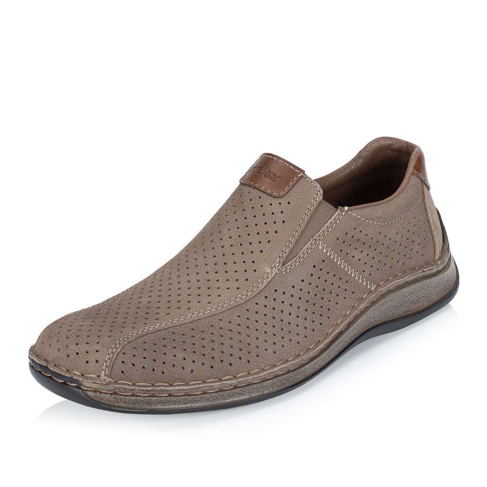 Stylové a pohodlné obutí v podání značky RIEKER spojuje moderní design s funkčností, kterou oceníte každý den. Kvalitní kožený svršek zdobí jemný perforovaný vzor, který dodává obuvi vizuálně zajímavý vzhled. Tento detail působí decentně, ale přitom zvýrazňuje styl a kvalitu zpracování typickou pro značku RIEKER. Díky gumičkám umístěným na nártu je obouvání rychlé, jednoduché a pohodlné – boty se přirozeně přizpůsobí tvaru chodidla, čímž poskytují ideální komfort během celého dne. Kožená stélka širšího střihu je měkká, prodyšná a zaručuje příjemný pocit i při delším nošení. Lehká podešev s tlumícím efektem účinně pohlcuje nárazy při chůzi a přispívá k celkovému pohodlí, které je pro RIEKER typické. Tento model je proto ideální volbou pro muže, kteří hledají kombinaci stylu, komfortu a kvality.