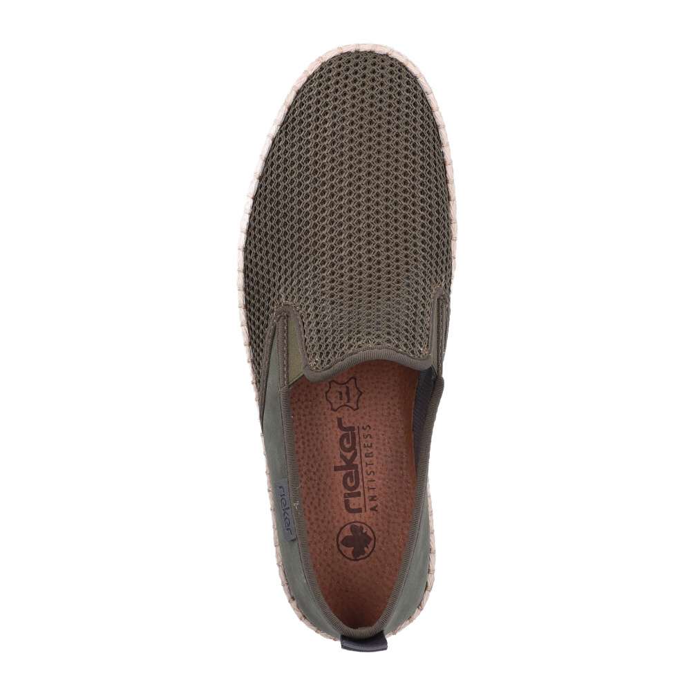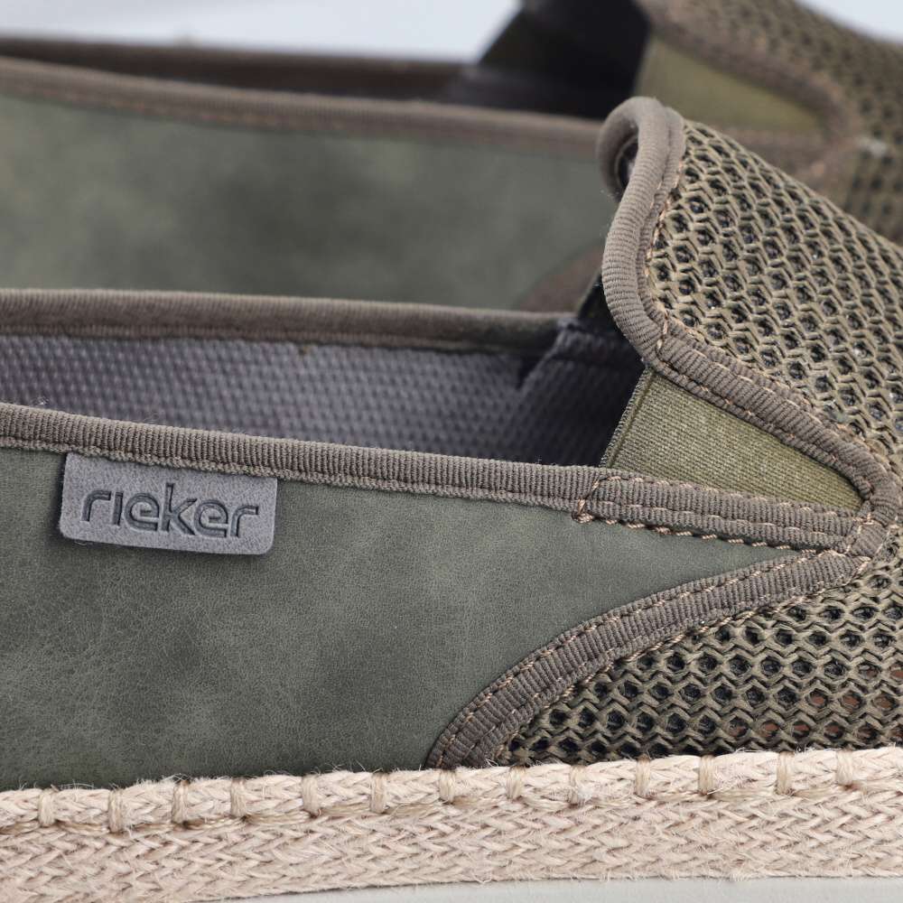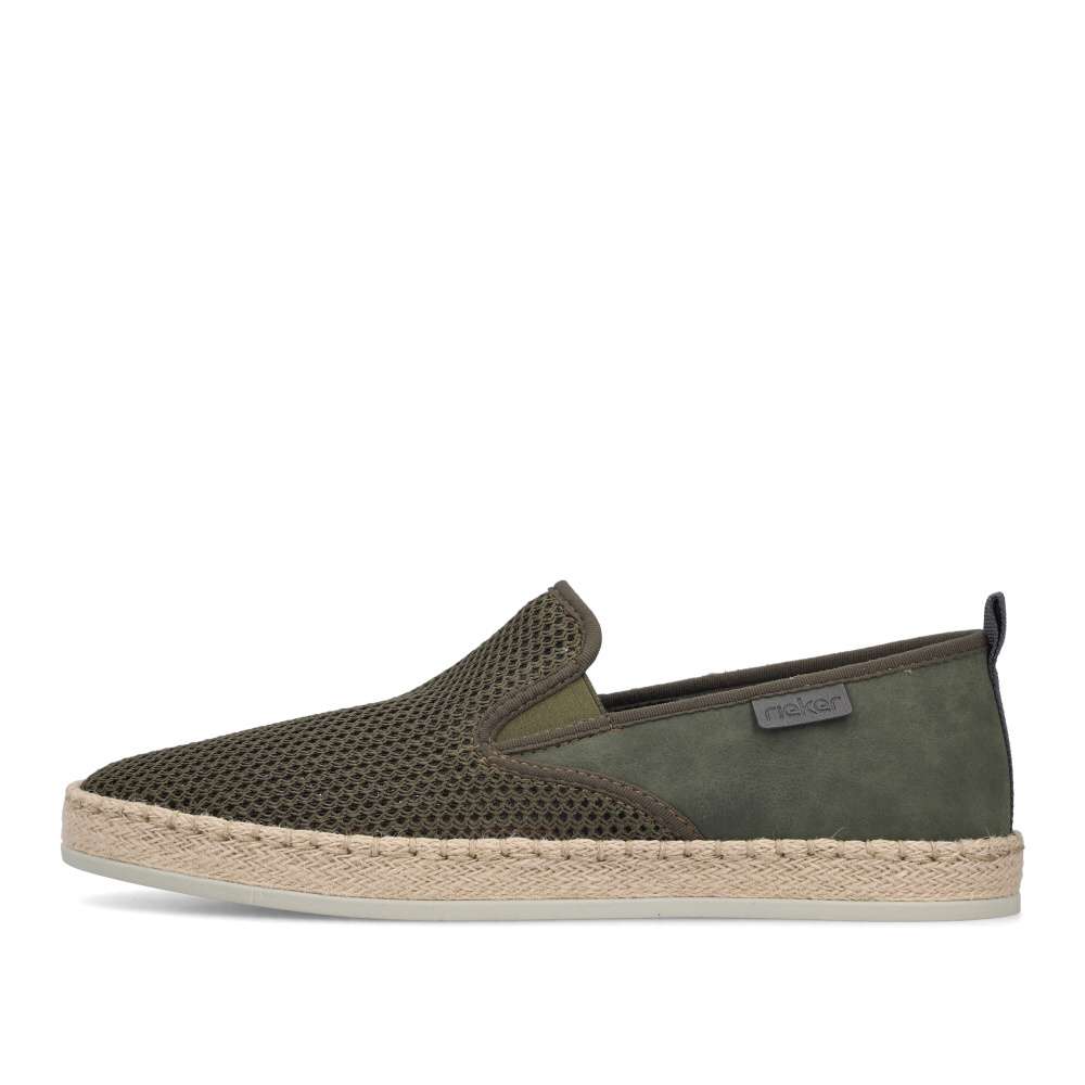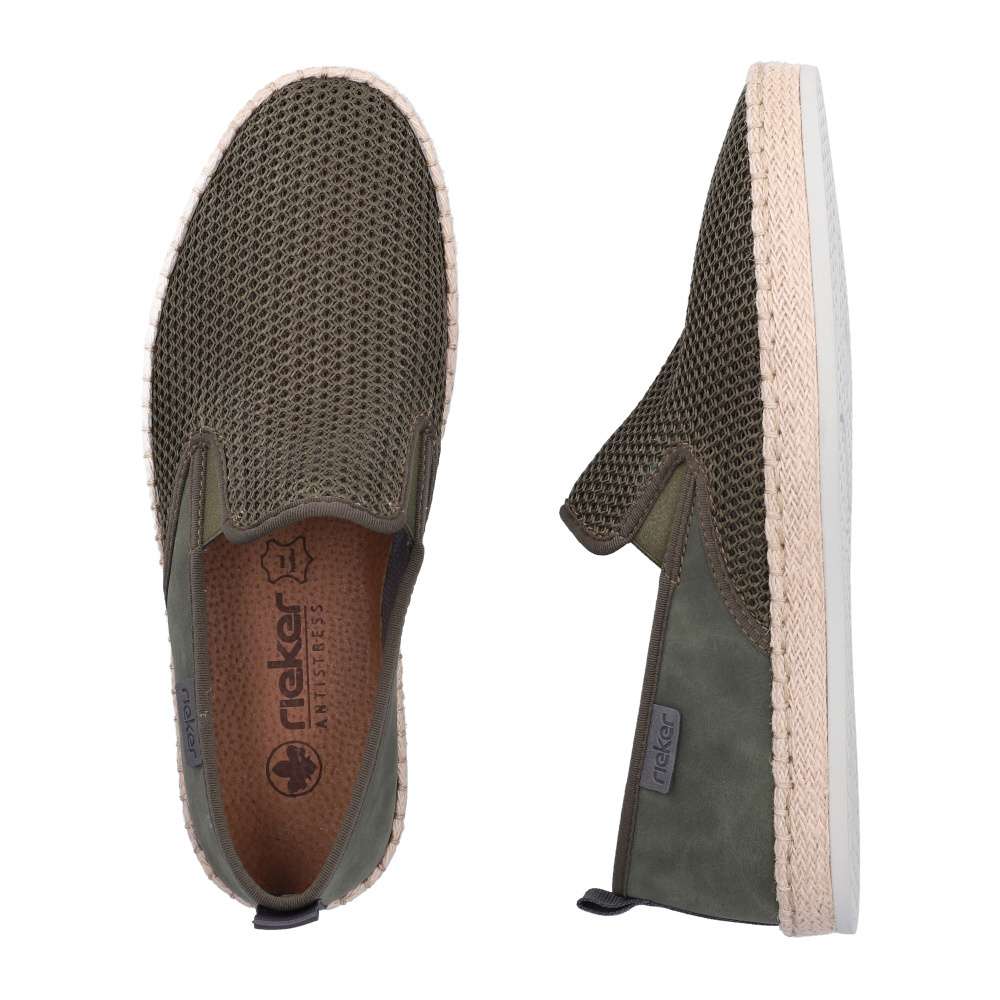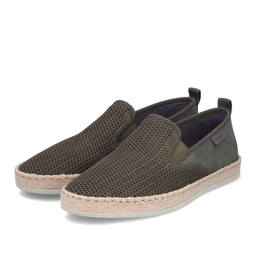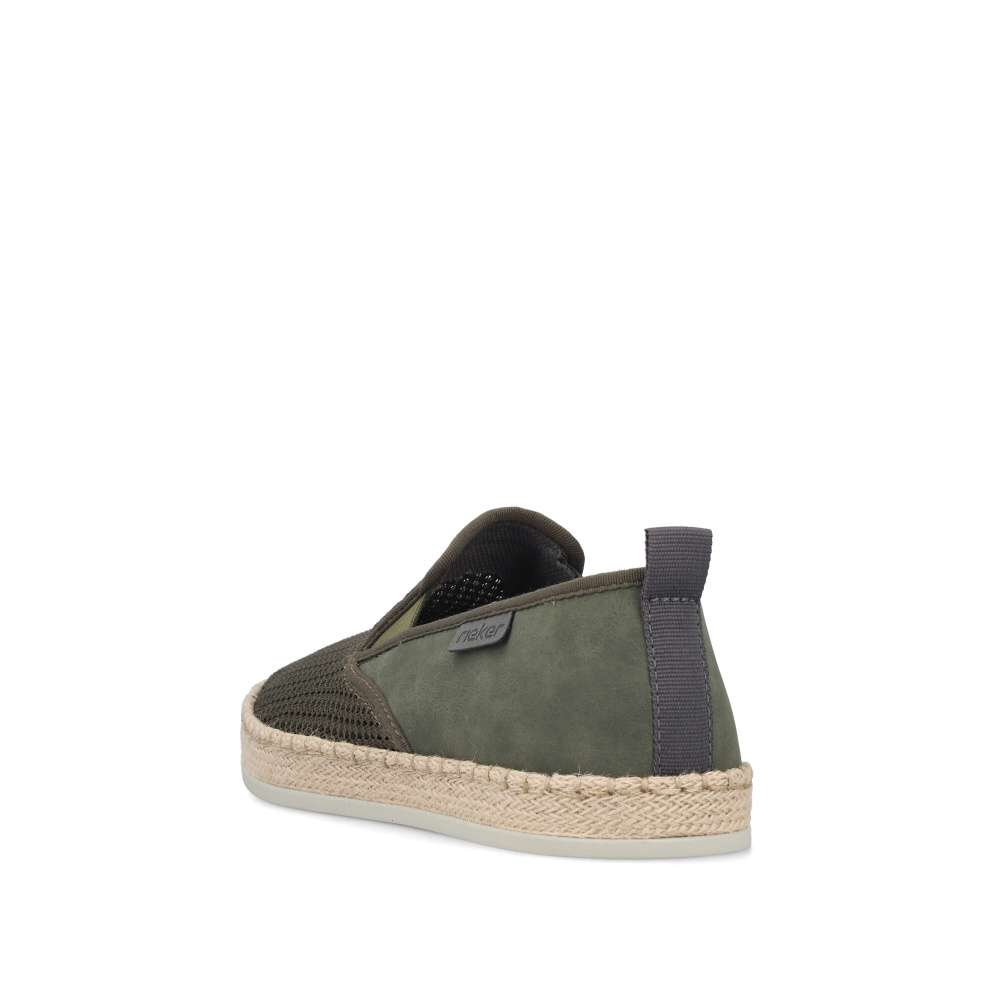 Tyto pánské mokasíny RIEKER jsou vynikající volbou pro muže, kteří hledají dokonalou kombinaci stylu, kvality a komfortu. Zelený svršek je zajímavou hrou různých struktur materiálu, což dodává botám originální vzhled a navíc textilní materiál zajistí cirkulaci vzduchu v horkých dnech svojí prodyšností. Prémiový charakter vystihuje logo značky umístěné z boční části boty. Do interiéru snadno vklouznete a gumičky v části nártu zajistí dokonalé přizpůsobení tvaru nohy. Kožená stélka poskytuje maximální pohodlí a podešev s tlumením nárazů minimalizuje únavu, což přidává botám praktický rozměr, který oceníte při delším nošení. Boty jsou díky svému designu a kvalitnímu zpracování ideální do práce i pro volný čas, přičemž každý váš krok bude pohodlný, bezpečný a vizuálně působivý.