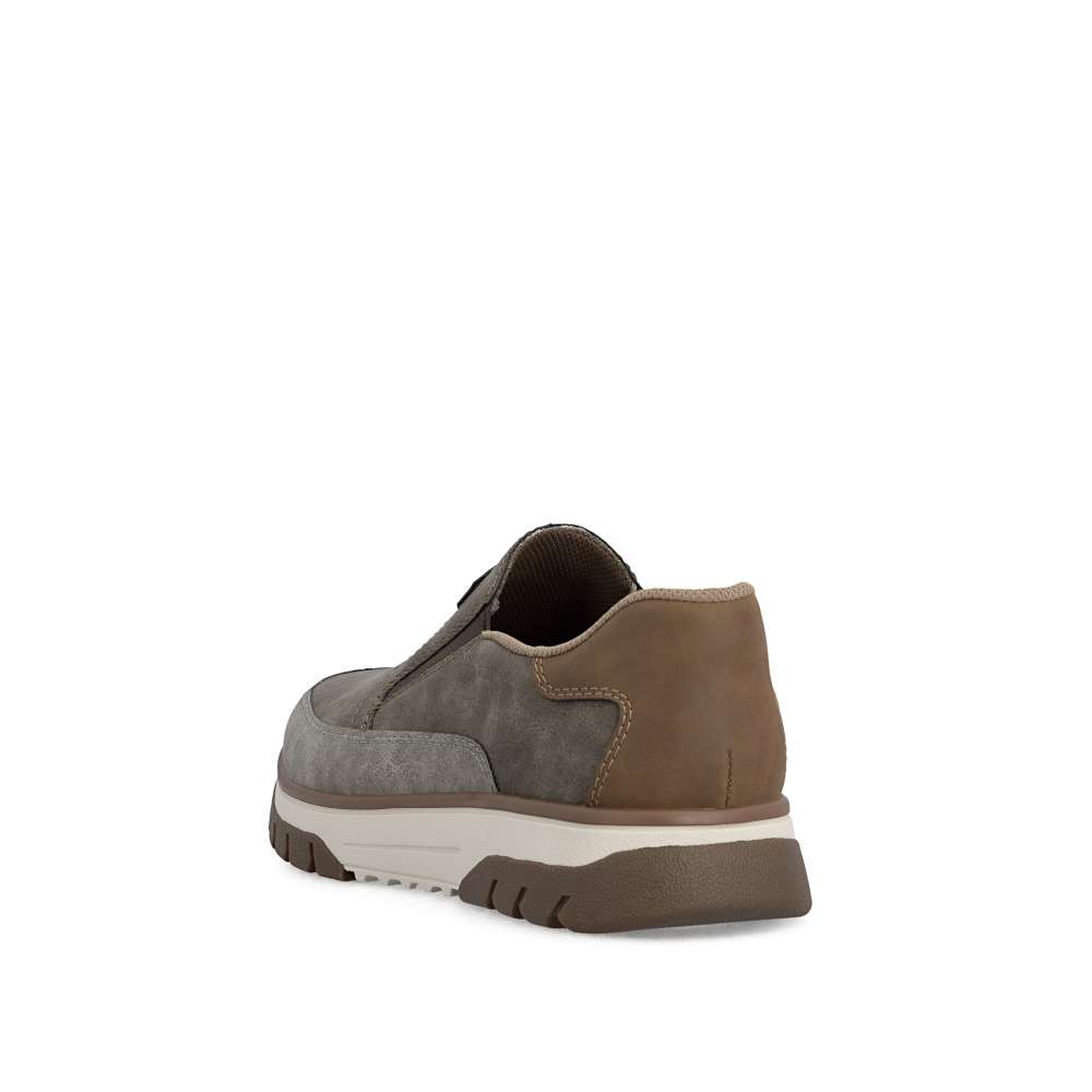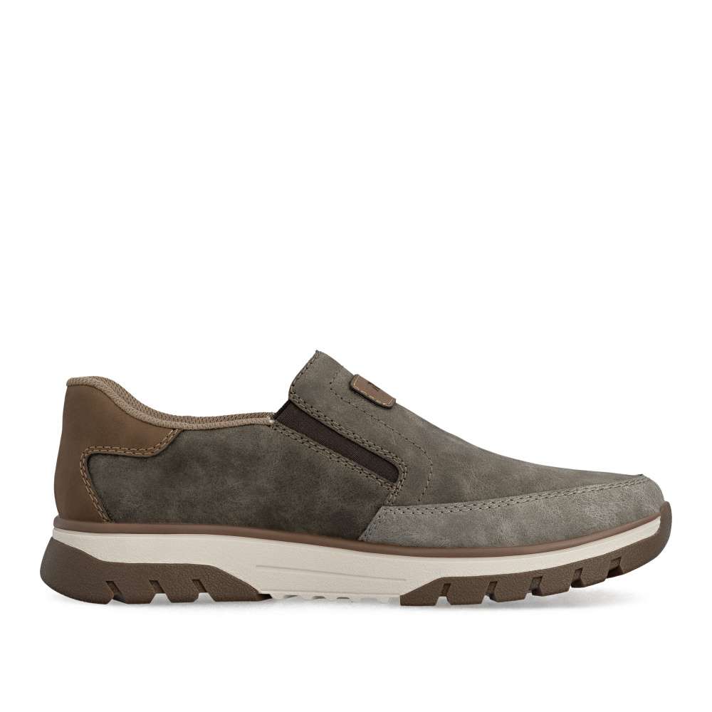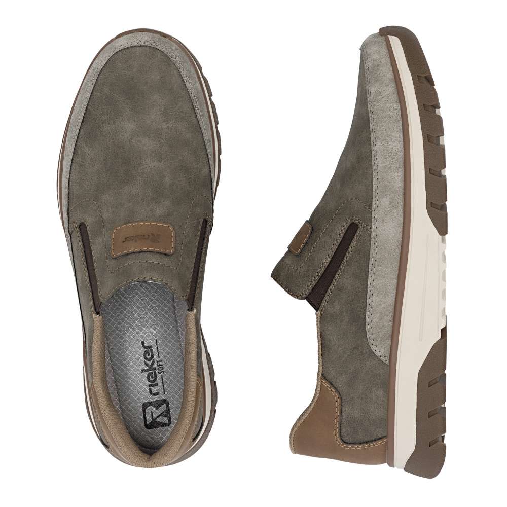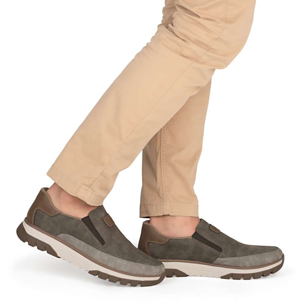 Tyto pánské mokasíny RIEKER jsou ztělesněním módního stylu v pohodlném provedení, které zaručí nejen atraktivní vzhled, ale také maximální komfort během celého dne. Svršek je vytvořen z nápadité kombinace barev, což dodává botám originální a moderní charakter. Každý detail je přepracován s důrazem na styl – jemné prošití, ikonické logo značky RIEKER a decentní prvky vytváří harmonický celek. Obouvání je rychlé a snadné díky pružným textilním částem po stranách nártu. Tento funkční prvek umožňuje dokonalé přizpůsobení obuvi tvaru chodidla, takže boty skvěle sedí a poskytují oporu při každém kroku. Uvnitř se nachází měkká vyjímatelná stélka, která poskytuje výjimečný komfort a pocit měkkosti při došlapu. Kromě toho umožňuje snadnou údržbu či výměnu za vlastní stélku, čímž zvyšuje praktičnost celého modelu. Dokonalý komfort poskytne širší střih bot vytvářející dostatečný prostor chodidlu. Propracovaná podešev s nárazy tlumícím efektem zaručí pohodlí při každém kroku a zároveň přidává botám na stylovém vzhledu. Je lehká, flexibilní a přizpůsobená dynamickému pohybu, což činí z těchto bot ideálního společníka na celodenní nošení – ať už se vydáte na procházku městem, do práce nebo na volnočasové aktivity. Tyto boty RIEKER spojují v sobě komfort, kvalitu a módní vzhled, čímž se stanou oblíbeným kouskem v šatníku muže, který hledá ideální rovnováhu mezi stylem a pohodlím. Dokonalá souhra moderního vzhledu a maximálního pohodlí díky funkčním technologiím to jsou boty RIEKER Sport.
