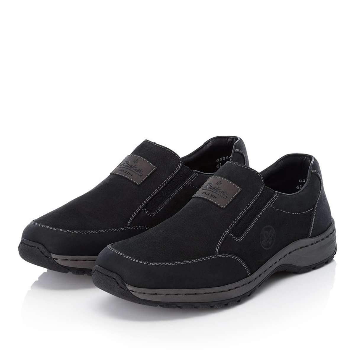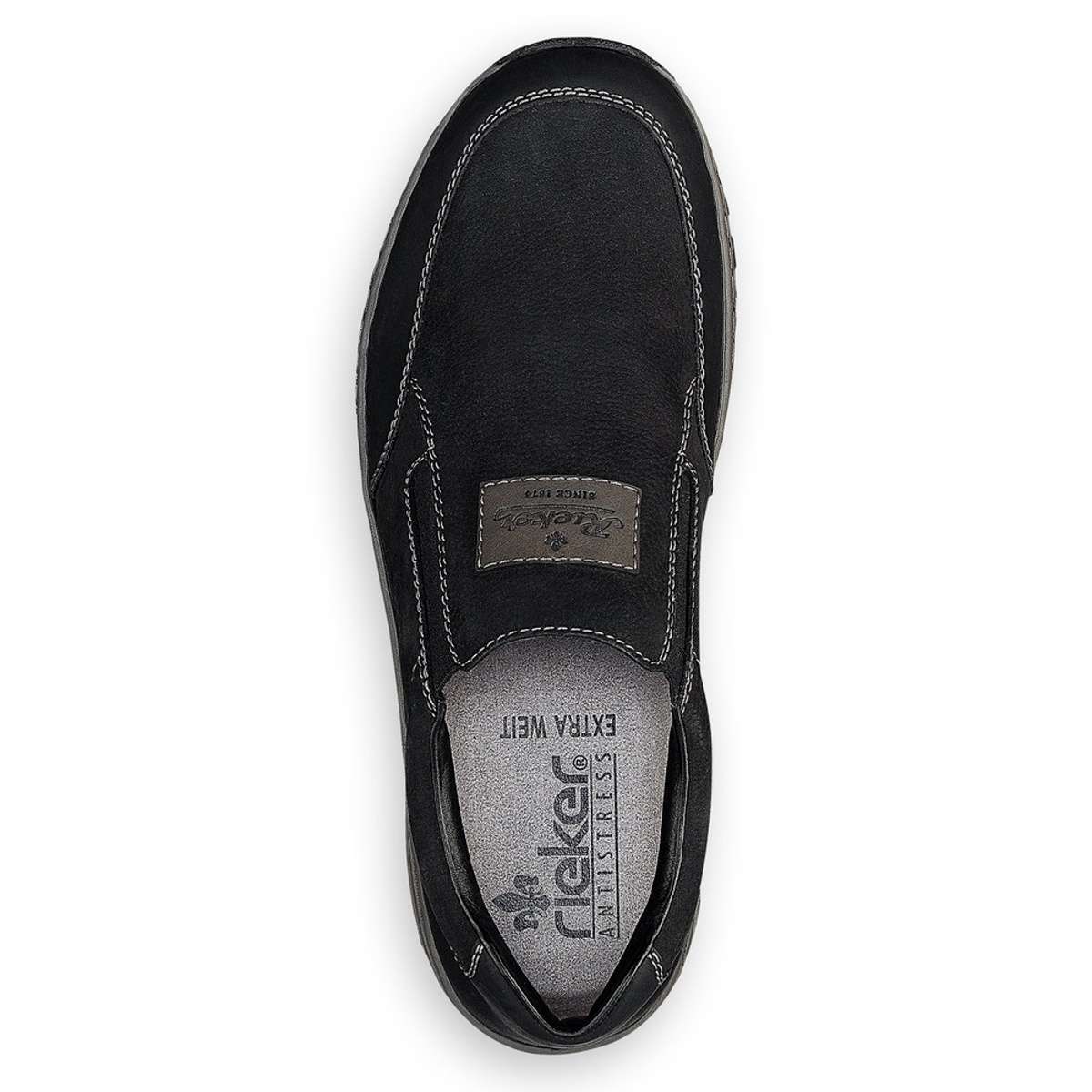 Pánské mokasíny značky RIEKER, které Vás uchvátí na první pohled. Svršek Kontrastní šití a kombinace vzhledu svrškových částí s hrubším vzorkem podešve jsou zdobnými prvky tohoto modelu. Po stranách jsou vsazeny pružné gumičky, které můžete využít při obutí a vyzutí. Stélka Vyjímatelnou stélku můžete kdykoliv vyměnit či vyvětrat. Obuv s označením Extraweit má stélku boty určenou pro široké chodidlo. Podešev Podešev s jemným vzorkem je vyrobena z velmi kvalitního syntetického materiálu. Podešev je díky technologii Antistress lehká, flexibilní, absorbuje nárazy při došlapu a snadno se přizpůsobí každé noze. Technologie: Antistress, Extraweit Vyjímatelná stélka: Ano