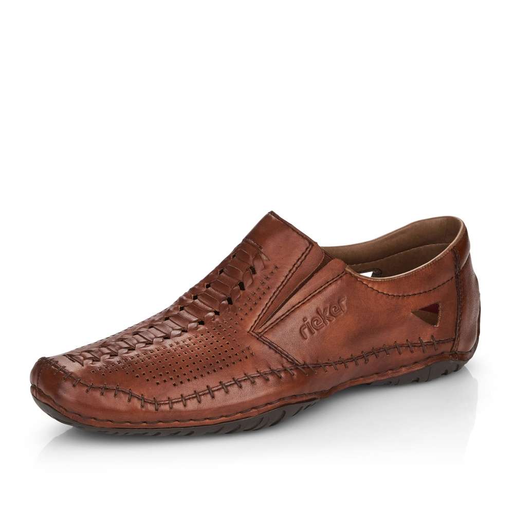 Detailní informace Pánské polobotky značky RIEKER Vás upoutají na první pohled. Kožený svršek zdobný proplétaným vzorem na nártu, prošíváním a vytlačeným logem značky je pro snadnější odvětrávání vybaven perforací. Měkká stélka je pro Vaše pohodlí vyjímatelná a nízká podešev je se svrškem spojena šitím, což je pro tuto značku typické.Tato obuv bude dobře vypadat jak k plátěným kalhotám, tak ke kraťasům.