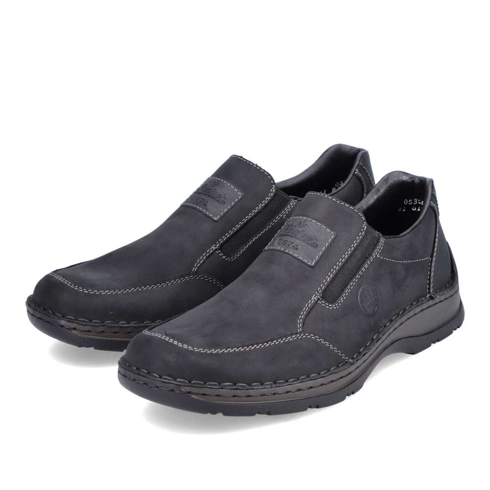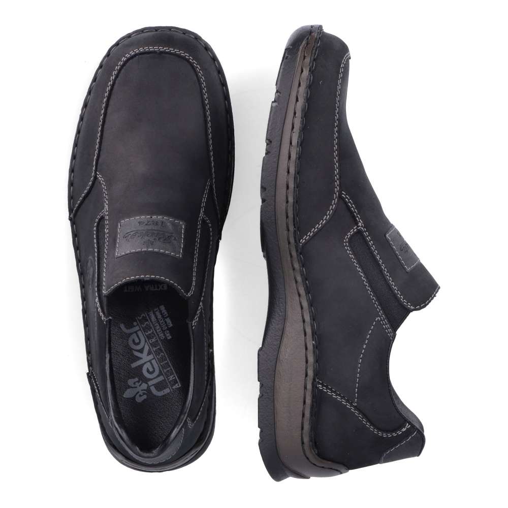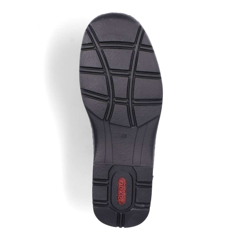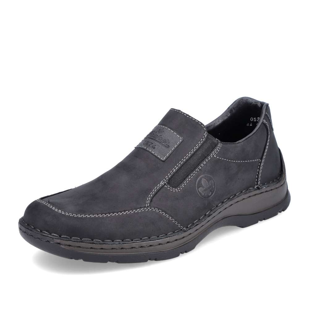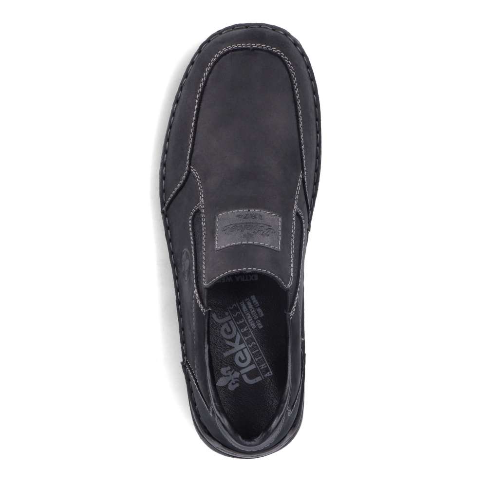 Pánské mokasíny značky RIEKER, které Vás dostanou svou jednoduchostí na první pohled. Černý jemně broušený svršek je vyroben z pravé kůže a je doplněn o kontrastní prošívání, nášivku na nártu a vytlačené logo značky. Po stranách jsou vsazeny pružné gumičky, které můžete využít při obutí a vyzutí. Pohodlí na každém kroku zajistí měkká kožená stélka a příjemně vysoká podešev je se svrškem spojena šitím, které je pro tuto značku typické a činí tak obuv lehkou a flexibilnější. Velmi praktická bota vhodná ke všem Vašim příležitostem, kdy se budete vždy cítit skvěle. Technologie: Antistress – podešev je díky této technologii lehká, flexibilní, absorbuje nárazy při došlapu a snadno se přizpůsobí každé noze.