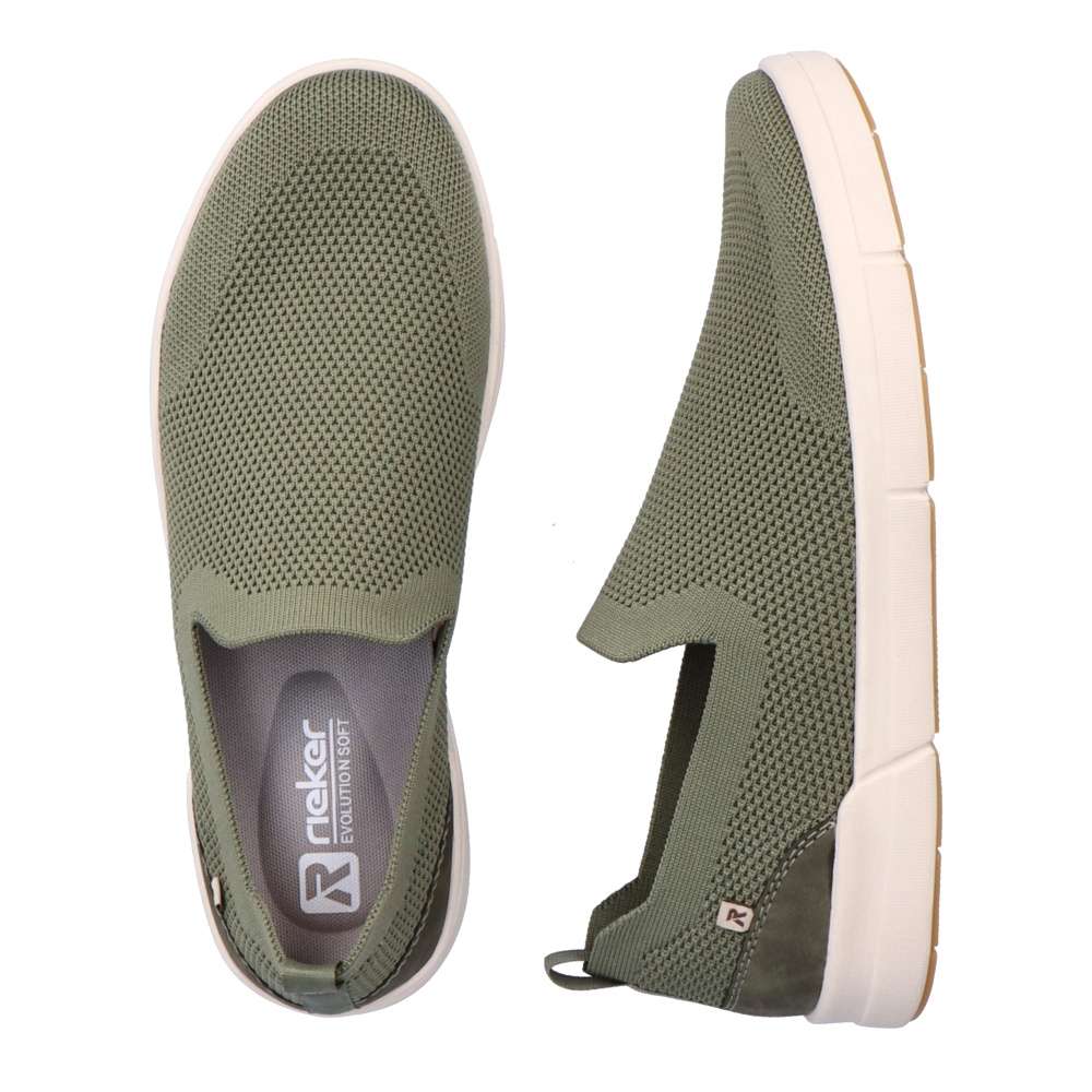 Rieker Revolution je nová řada moderní sportovní obuvi s obrovským důrazem na komfort a pohodlí i při celodenním nošení. Pánské Slip on tenisky RIEKER jsou ideální na nošení od jara do podzimu během slunečních dní a dní bez deště. Svršek je z textilního prodyšného materiálu, v kterém Vám bude příjemně i po dobu letních měsíců. Obuv má na zadní straně poutko pro snadnější obutí. Stélka je vyrobena z unikátní paměťové pěny, která se maximálně přizpůsobí tvaru Vašeho chodidla. Můžete k nim obléct téměř cokoliv, tyhle boty nikdy nezklamou. Technologie: MemoSoft – unikátní stélka z paměťové pěny, která změkčuje došlap, maximálně se přizpůsobí tvaru Vašeho chodidla, ale zároveň ji můžete vyjmout, vyměnit nebo vyvětrat. Tato bota je vybavena vyjímatelnou stélkou.