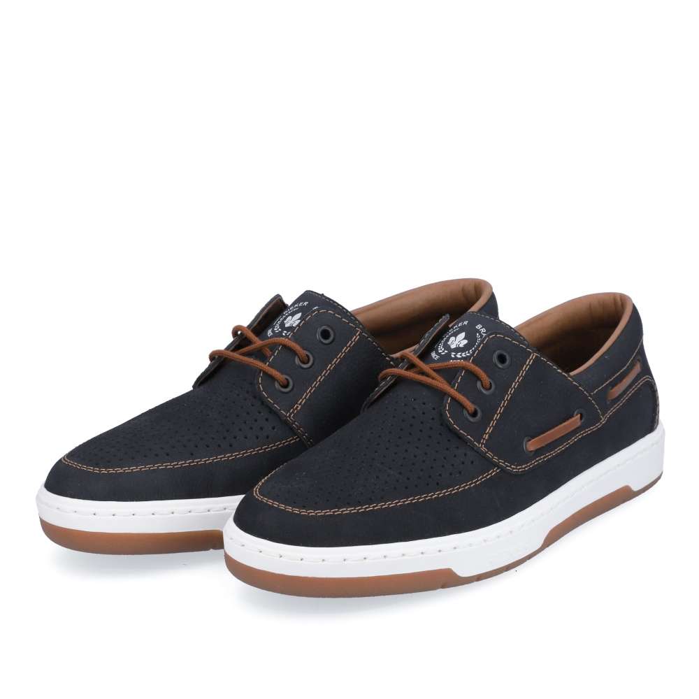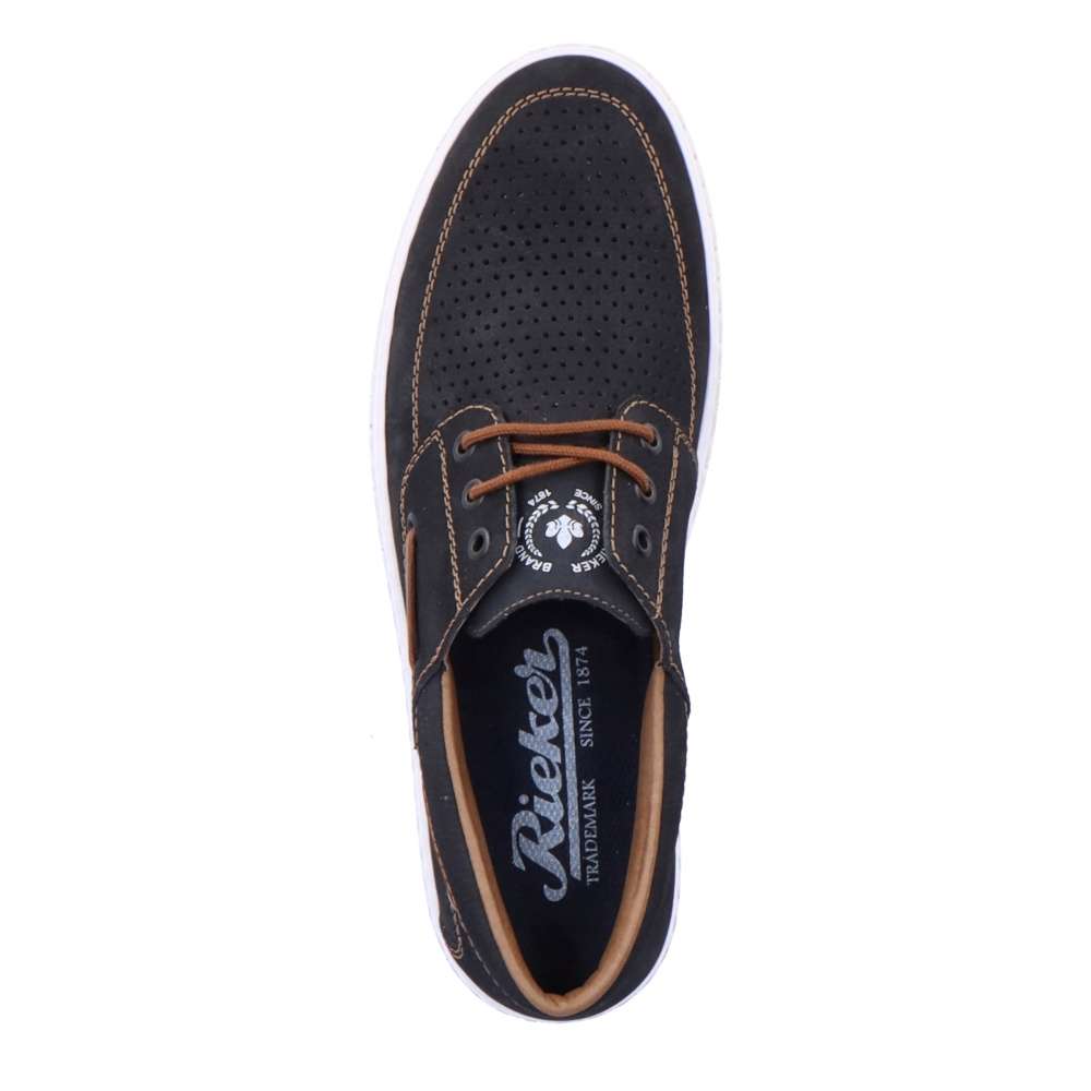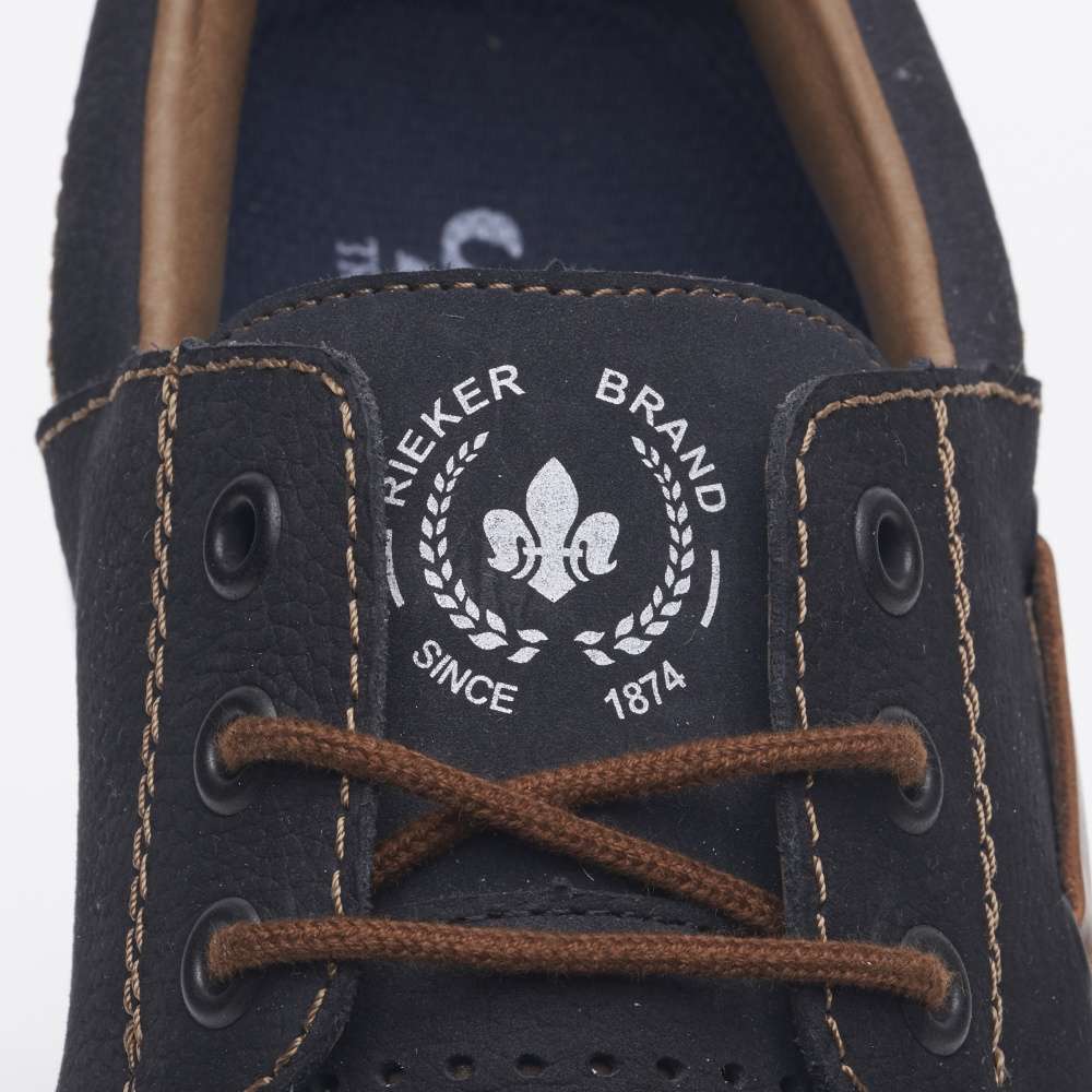 Kožené mokasíny od značky RIEKER jsou doslova luxusní kousek, který nadchne všechny pány se smyslem pro styl. Svršek je z přírodní kůže v semišovém provedení, který má v přední části perforaci pro lepší prodyšnost obuvi, zdobený je logem značky na jazyku, hnědým prošíváním a hnědým páskem na boku. O pohodlí se postará měkká stélka a flexibilní podešev. Tkaničky slouží k přizpůsobení dle Vašich požadavků. Tento model se hodí na každodenní pochůzky i na business schůzku či na rande s přítelkyní.