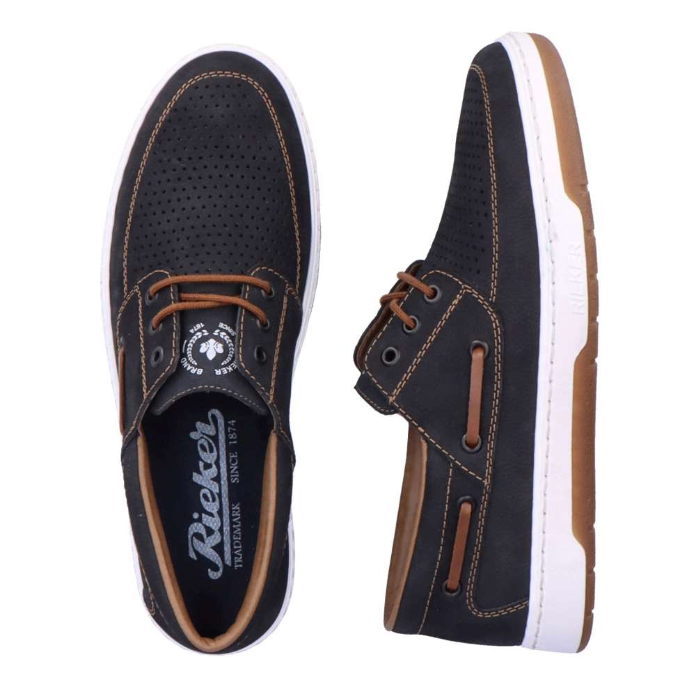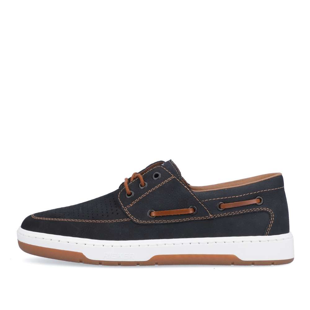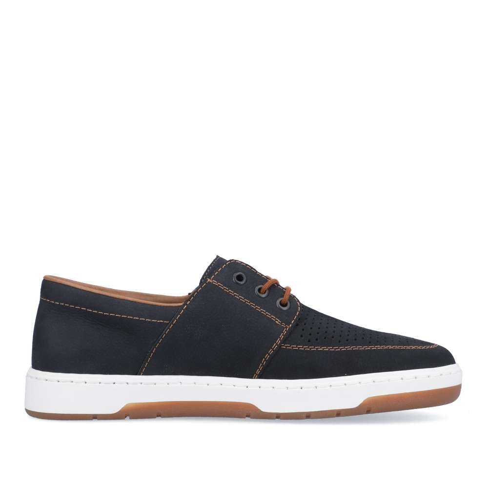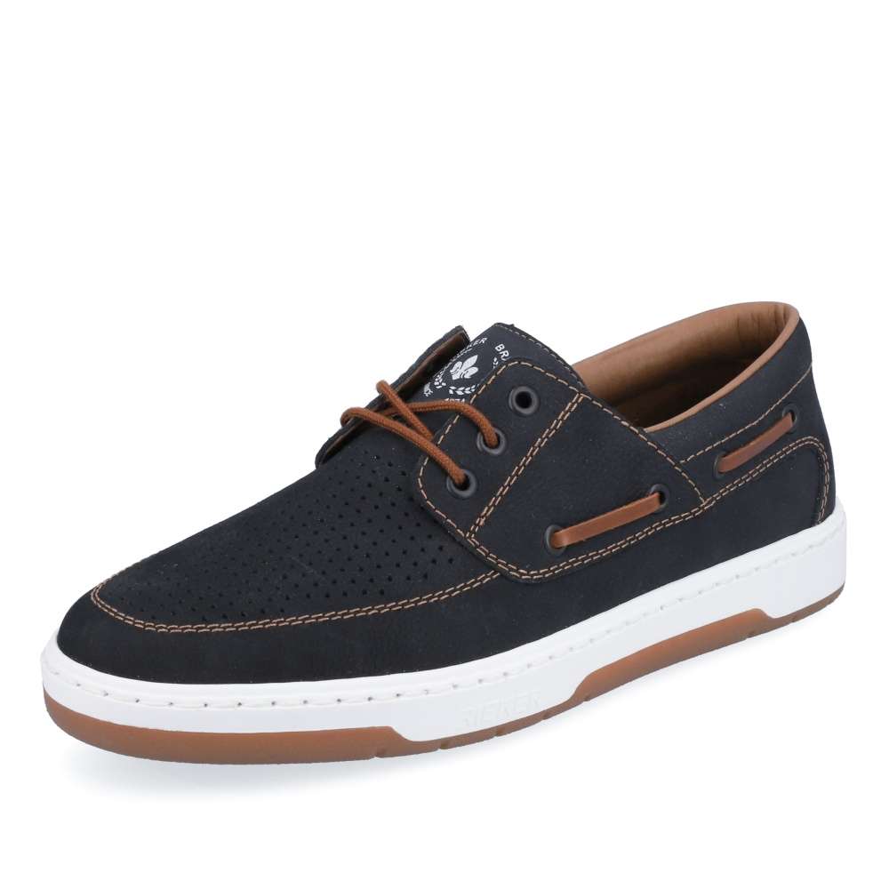 Kožené mokasíny od značky RIEKER jsou doslova luxusní kousek, který nadchne všechny pány se smyslem pro styl. Svršek je z přírodní kůže v semišovém provedení, který má v přední části perforaci pro lepší prodyšnost obuvi, zdobený je logem značky na jazyku, hnědým prošíváním a hnědým páskem na boku. O pohodlí se postará měkká stélka a flexibilní podešev. Tkaničky slouží k přizpůsobení dle Vašich požadavků. Tento model se hodí na každodenní pochůzky i na business schůzku či na rande s přítelkyní.