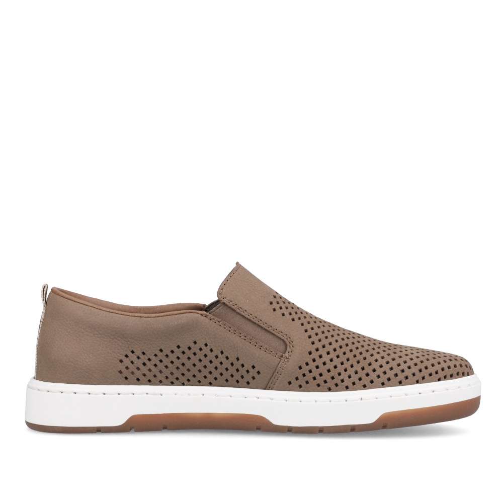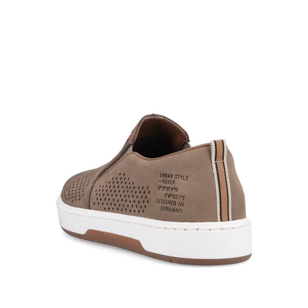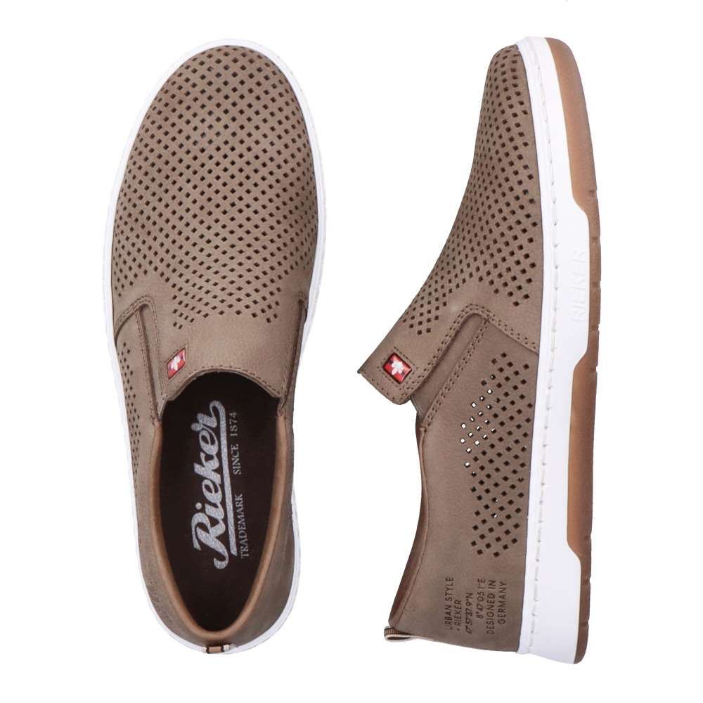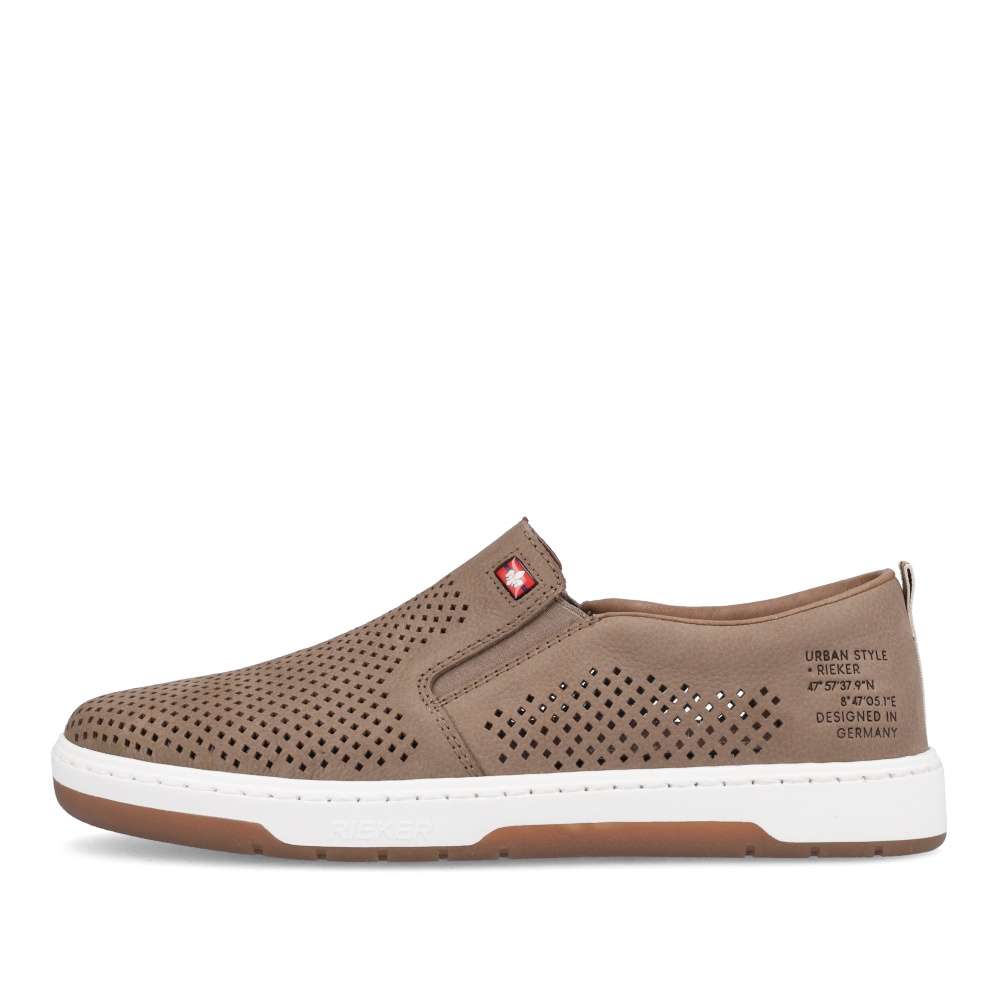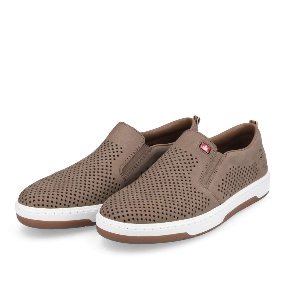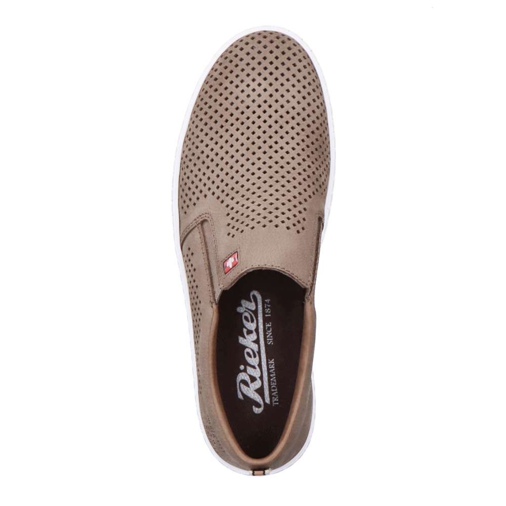 Detailní informace Nazouvací kožené slip-ony od značky Rieker jsou tady pro všechny pohodáře, kteří milují sportovně-elegantní módu. Tato šitá obuv má perforovaný svršek z pravé usně, který umožní Vašim chodidlům dýchat. Po stranách se nachází pružné gumičky pro snadné přezutí a uvnitř je měkká stélka, která zajistí komfort po celý den. Tento model bude skvělým doplňkem k džínům a tričku.