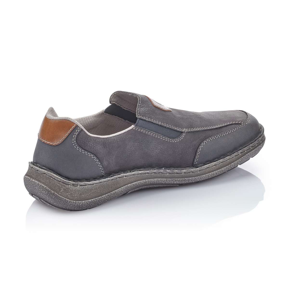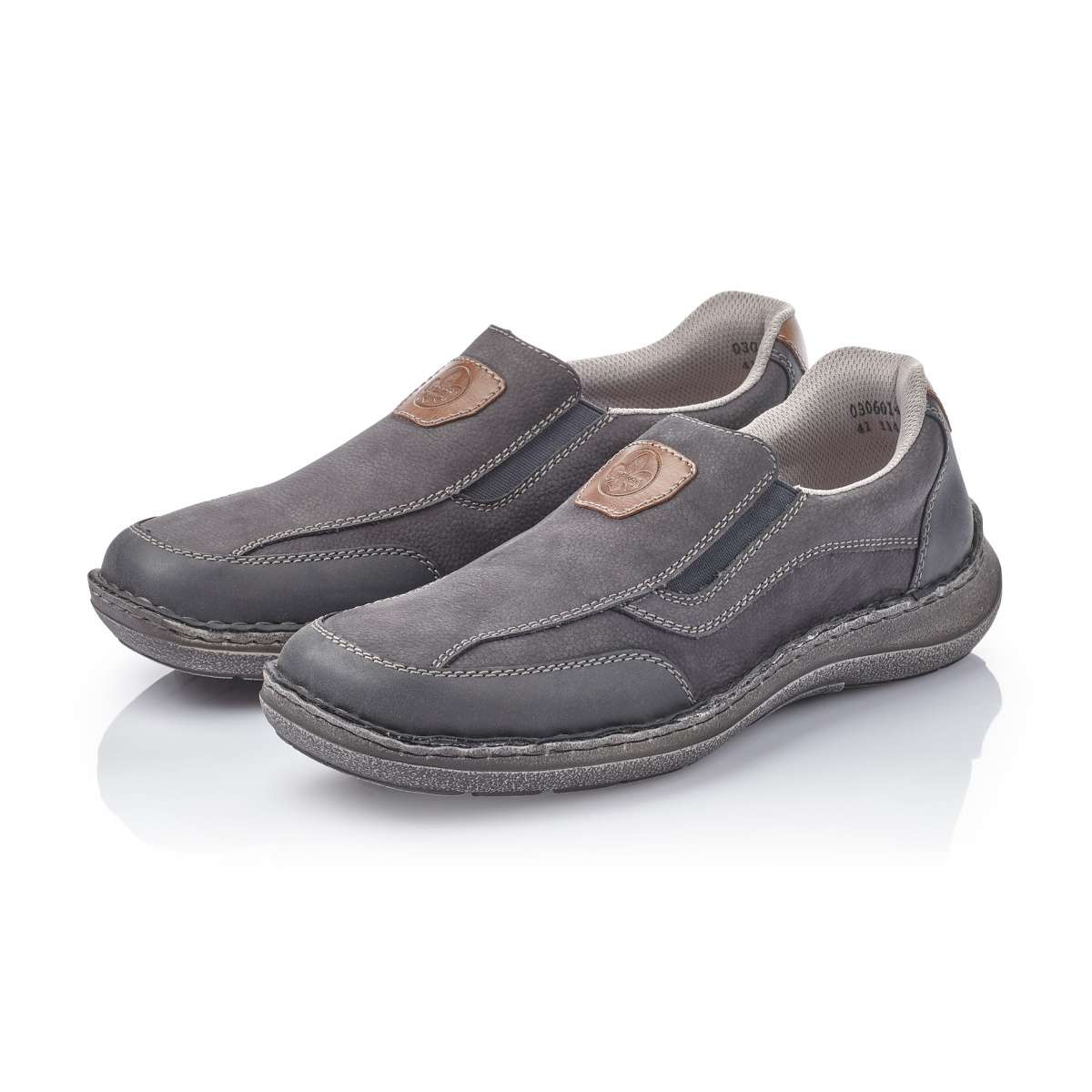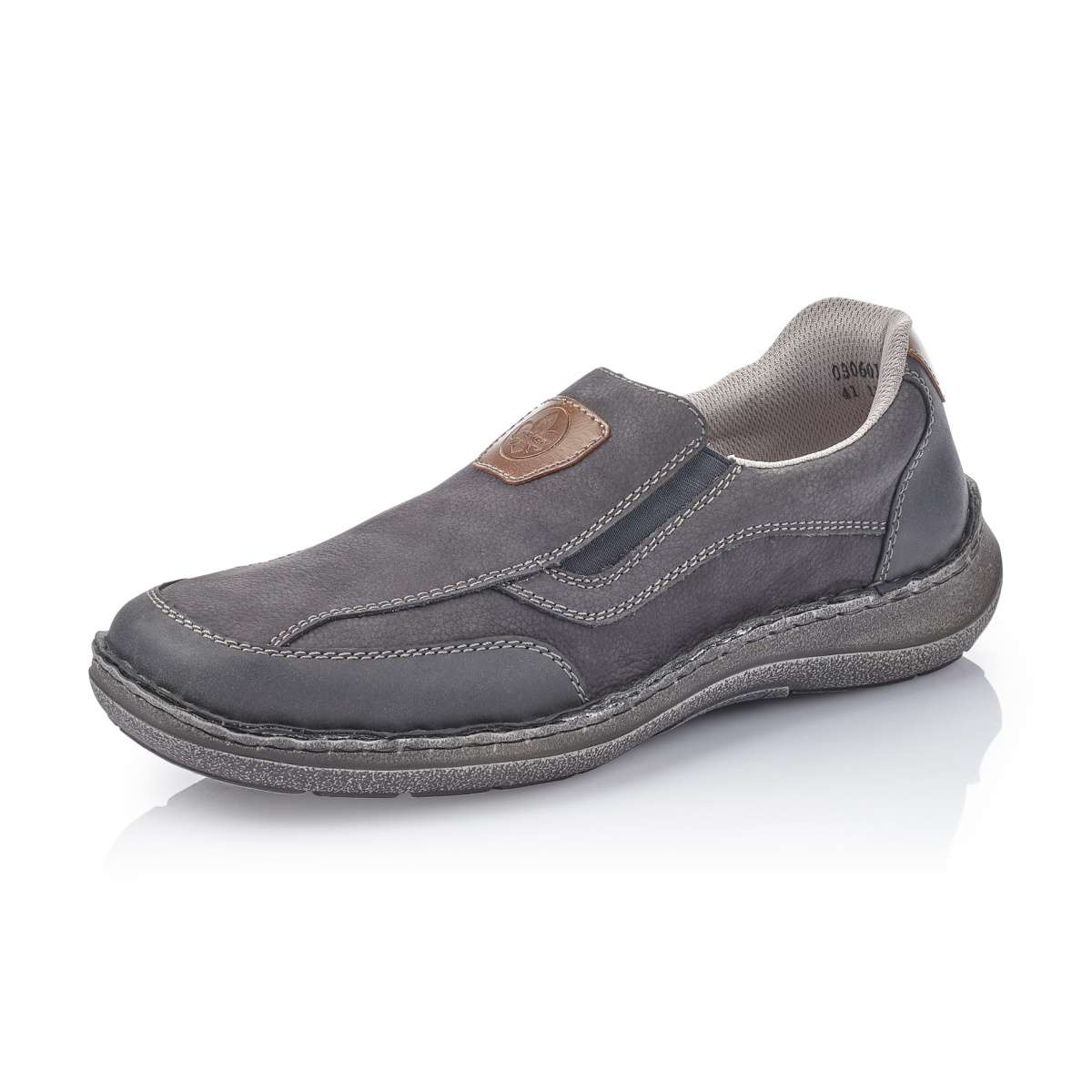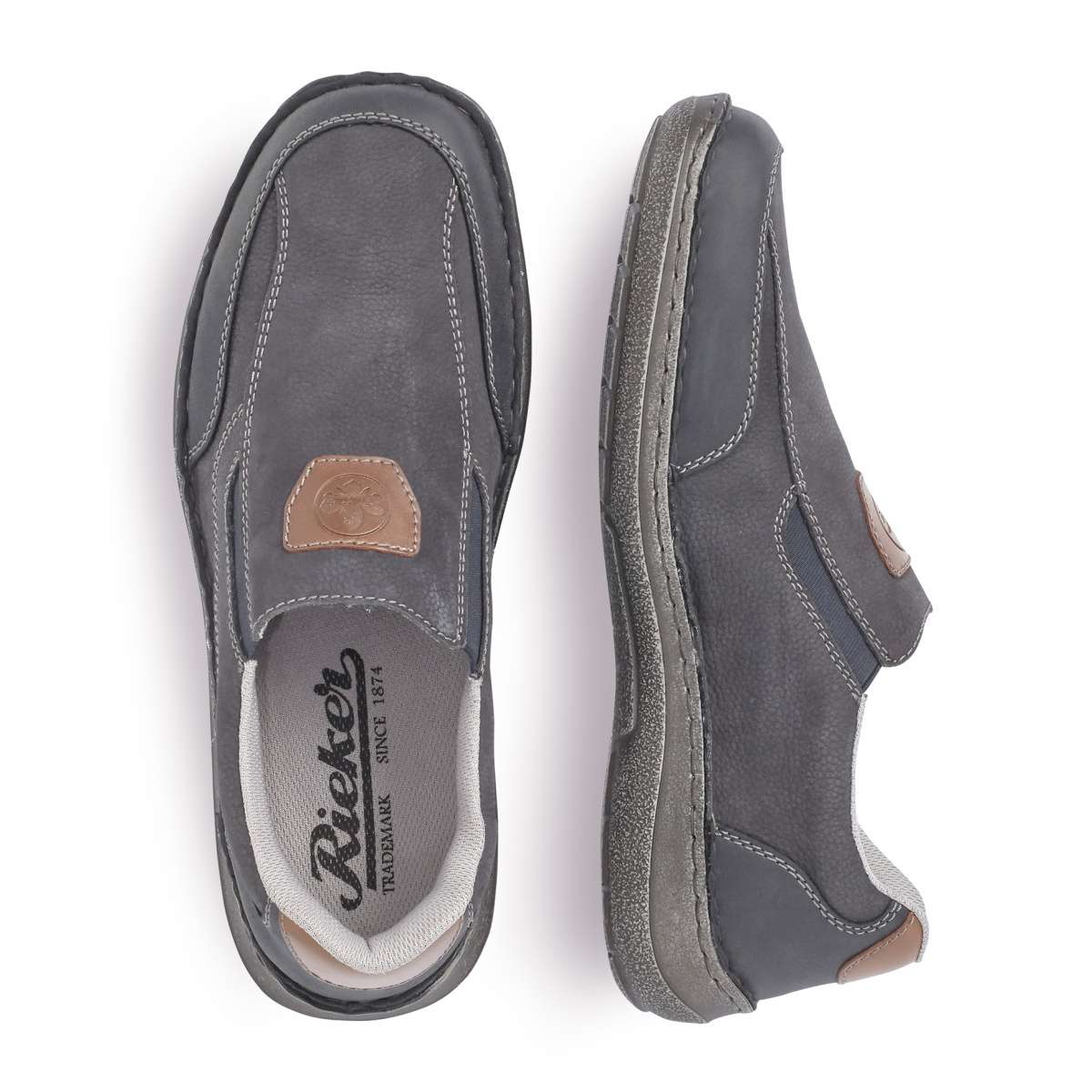 Elegantní obuv značky Rieker modré barvy je ozdobena logem značky a vyrobena z pravé kůže, což Vás jistě potěší. Tento model ocení pánové, kteří mají rádi elegantnost a zároveň se chtějí cítit pohodlně. V oblasti nártu jsou také vsazené gumičky, které usnadňují obouvání. Tato obuv perfektně podtrhne neutrální outfit do práce či do města.