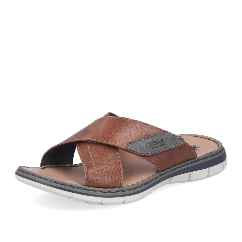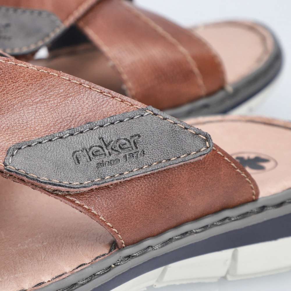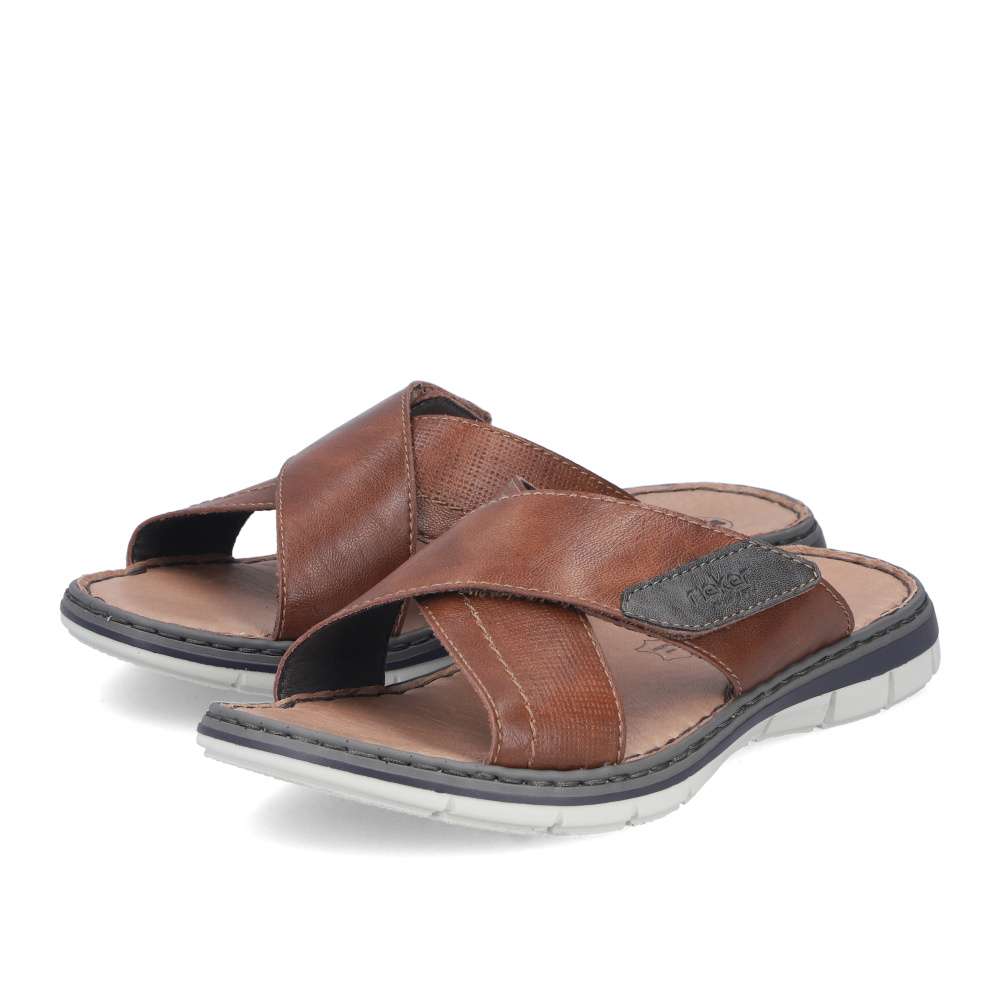 Tyto kožené pánské nazouváky RIEKER představují spojení stylového designu a maximálního komfortu, díky čemuž se stanou vaším oblíbeným společníkem během letních dnů. Svršek je tvořen efektně překříženými pásky v různých strukturách, což dodává obuvi jedinečný vizuální charakter. Na jednom z pásků se nachází decentní nášivka s logem značky RIEKER, která podtrhuje kvalitu a originalitu modelu. Pro ještě větší komfort při nošení je pásek opatřen praktickým suchým zipem, díky kterému si můžete obuv jednoduše přizpůsobit podle tvaru svého chodidla. Vnitřek doplňuje kožená stélka, která poskytuje pocit pohodlí a opory během celého dne. Flexibilní podešev, typická pro značku RIEKER, je vybavena technologií tlumení nárazů, čímž usnadňuje každý krok a přispívá k přirozené chůzi bez únavy. Tyto nazouváky jsou ideální volbou pro každodenní nošení, skvěle se hodí pro volnočasové nošení, procházky po městě či dovolené.