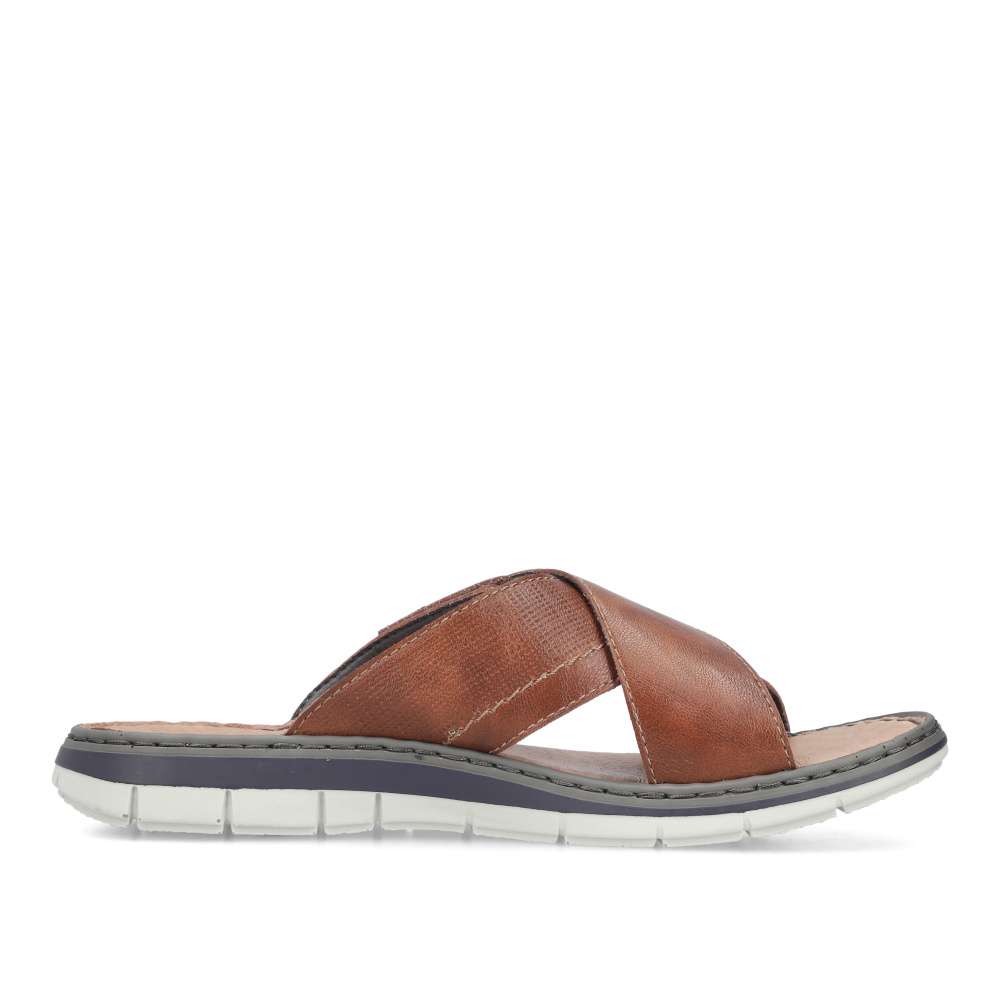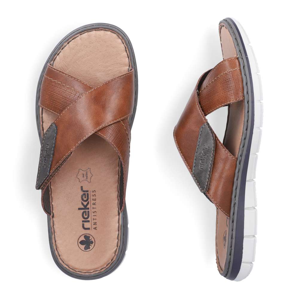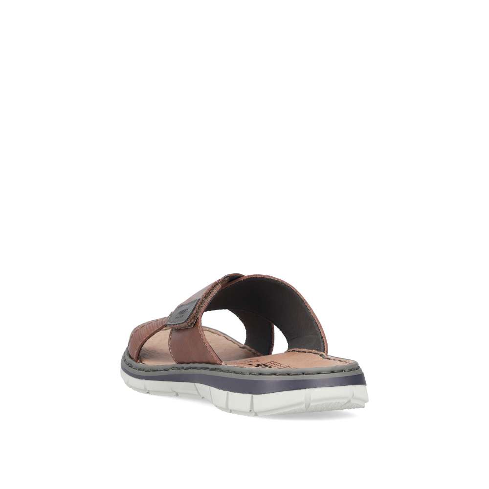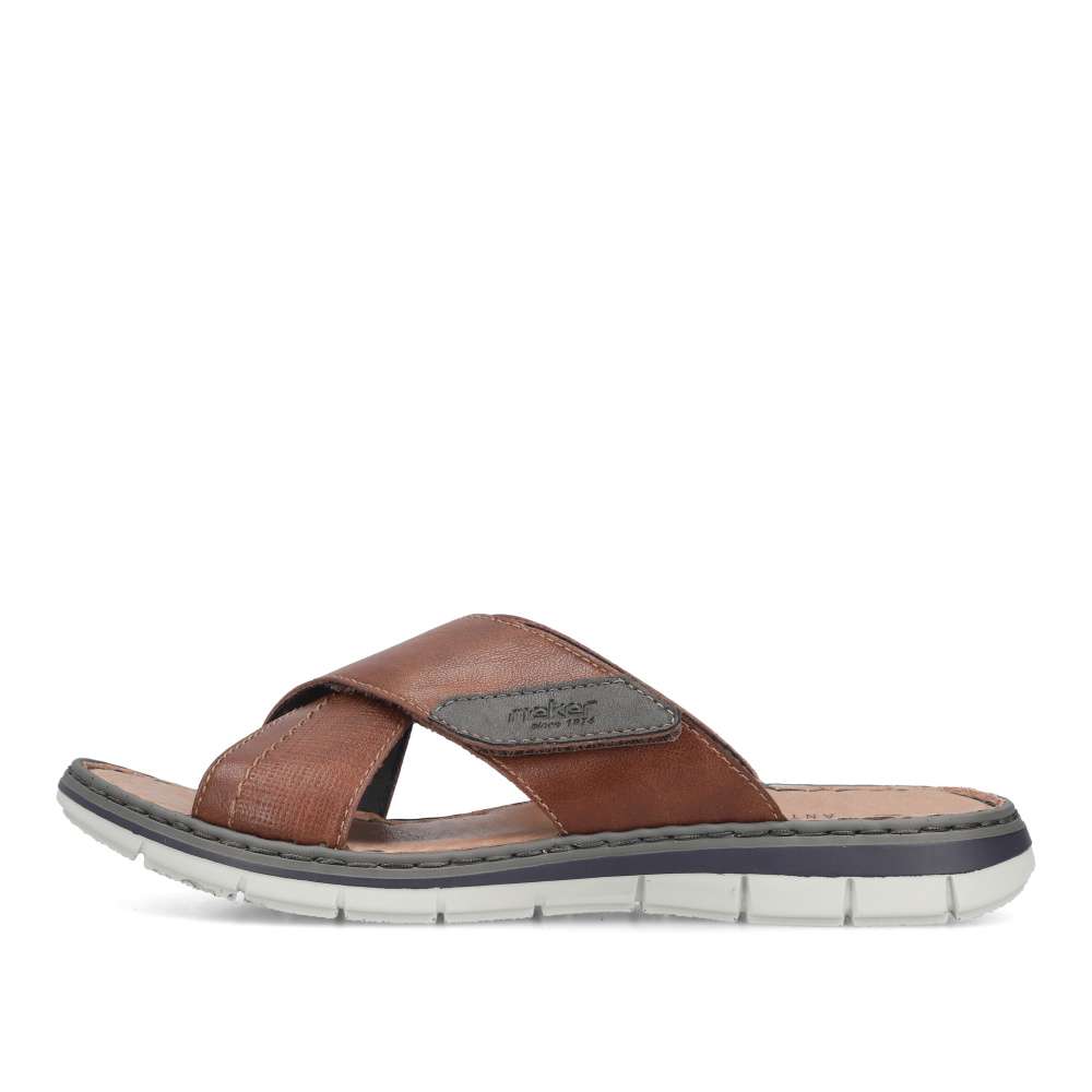 Tyto kožené pánské nazouváky RIEKER představují spojení stylového designu a maximálního komfortu, díky čemuž se stanou vaším oblíbeným společníkem během letních dnů. Svršek je tvořen efektně překříženými pásky v různých strukturách, což dodává obuvi jedinečný vizuální charakter. Na jednom z pásků se nachází decentní nášivka s logem značky RIEKER, která podtrhuje kvalitu a originalitu modelu. Pro ještě větší komfort při nošení je pásek opatřen praktickým suchým zipem, díky kterému si můžete obuv jednoduše přizpůsobit podle tvaru svého chodidla. Vnitřek doplňuje kožená stélka, která poskytuje pocit pohodlí a opory během celého dne. Flexibilní podešev, typická pro značku RIEKER, je vybavena technologií tlumení nárazů, čímž usnadňuje každý krok a přispívá k přirozené chůzi bez únavy. Tyto nazouváky jsou ideální volbou pro každodenní nošení, skvěle se hodí pro volnočasové nošení, procházky po městě či dovolené.