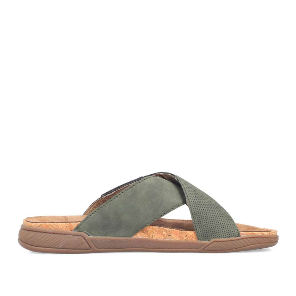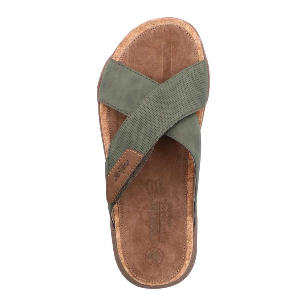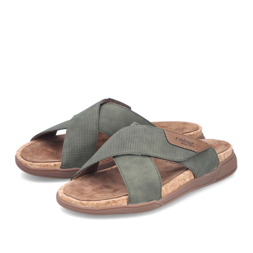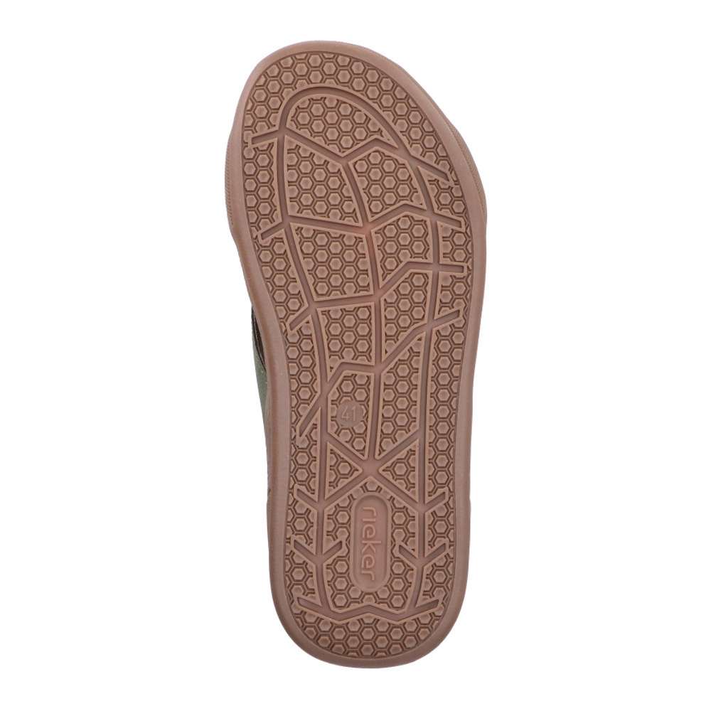 Tyto pánské nazouváky značky RIEKER spojují moderní vzhled s maximálním komfortem, čímž se stávají ideální volbou pro letní dny, dovolené i každodenní nošení. Svršek je efektně řešen poskládanými pásky přes nárt, z nichž jeden je opatřen suchým zipem pro snadné přizpůsobení tvaru nohy a pohodlné obouvání. Kombinace různých materiálových struktur spolu s nášivkou s logem značky dodává botám originální a dynamický vzhled. Kožená stélka a širší střih poskytují pohodlí při delším nošení, zatímco podešev s tlumením nárazů zaručuje stabilitu, jistotu při každém kroku a navíc působí vizuálně zajímavě. Tyto nazouváky stylově doplní různé letní outfity, ať už se jedná o ležérní šortky, plátěné kalhoty nebo pohodlné casual kombinace, přičemž spojují praktičnost, komfort a moderní design do jednoho celku.