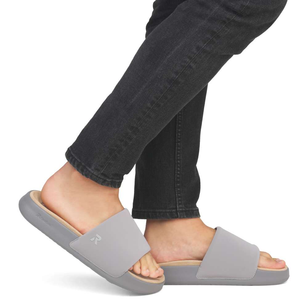 Lehkost, pohodlí a přirozený pohyb – přesně to přinášejí tyto nazouváky značky RIEKER. Stačí do nich plynule vklouznout a každý krok je okamžitě příjemný a uvolněný. Široký šedý pásek přes nárt jemně obepne chodidlo a poskytne mu potřebnou oporu bez pocitu tlaku. Kožená stélka dopřeje komfort i při delším nošení, zatímco podešev s tlumící funkcí zajistí příjemný došlap. Tyto nazouváky jsou ideálním společníkem na letní dny, procházky městem i oddechové chvíle, kdy chcete kráčet přirozeně s pocitem dokonalého pohodlí. Dokonalá souhra moderního vzhledu a maximálního pohodlí díky funkčním technologiím to jsou boty RIEKER Sport.