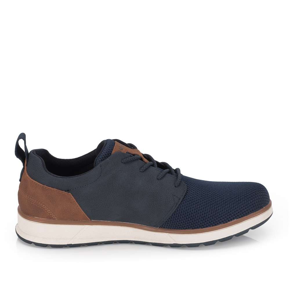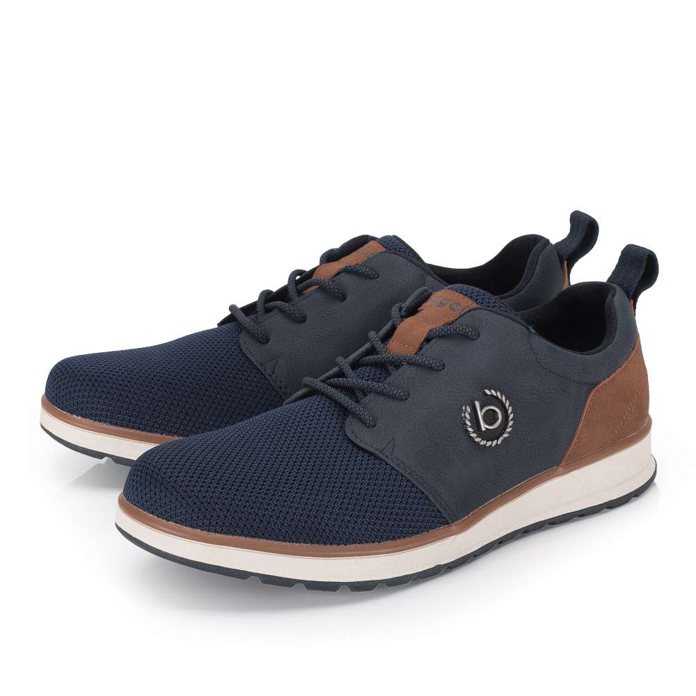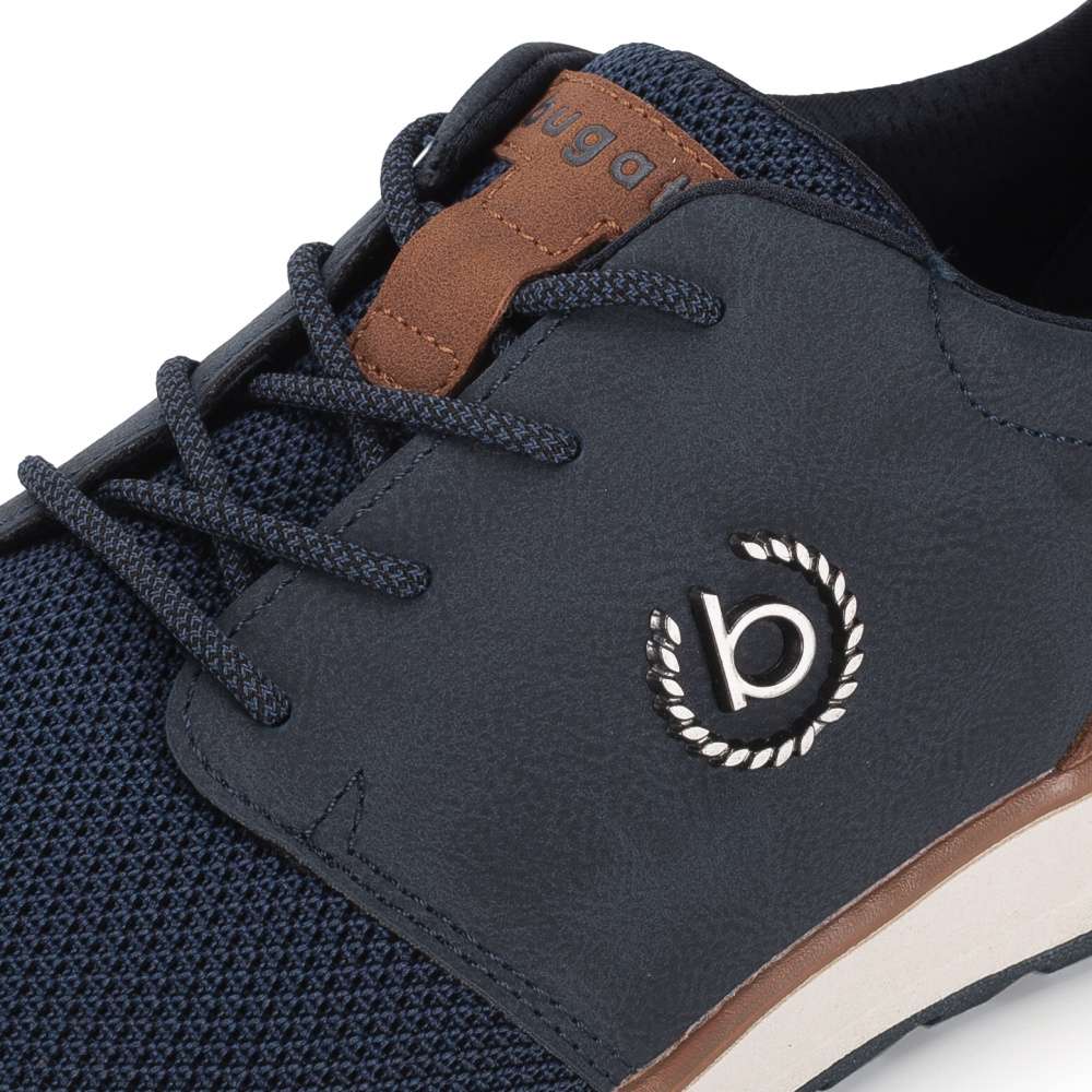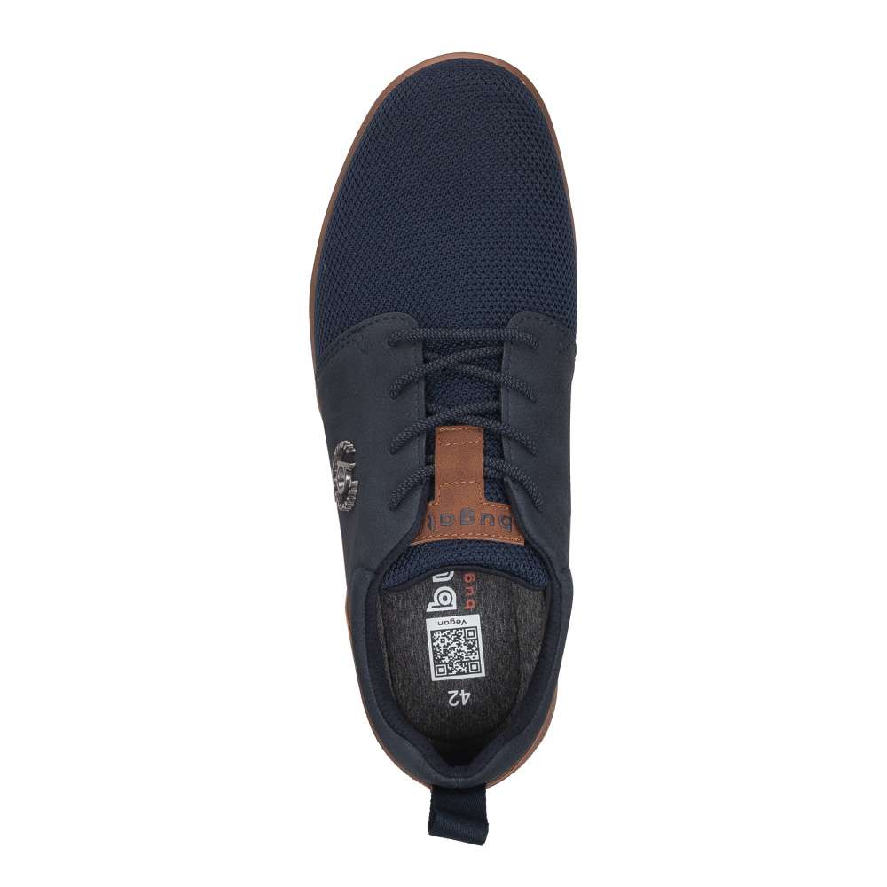 Značka Bugatti je synonymem pohodlí a moderního stylu pro každého muže – a tyto tenisky to jen potvrzují. Jsou navrženy tak, aby Vás nezklamaly ani při celodenním nošení a zároveň se staly přirozenou součástí Vašeho osobitého vzhledu. Materiálově kombinovaný tmavě modrý svršek působí nadčasově, zatímco kontrastní patní část a logo značky Bugatti vytvářejí harmonický a moderní celek. Díky klasickému šněrování si obuv jednoduše přizpůsobíte přesně podle svých potřeb a vyjímatelná stélka Vám poskytne možnost snadné údržby nebo výměny. Tento model je ideální volbou do práce, na běžné pochůzky i procházky s rodinou – spolehlivé tenisky, které drží krok s Vaším každodenním tempem.