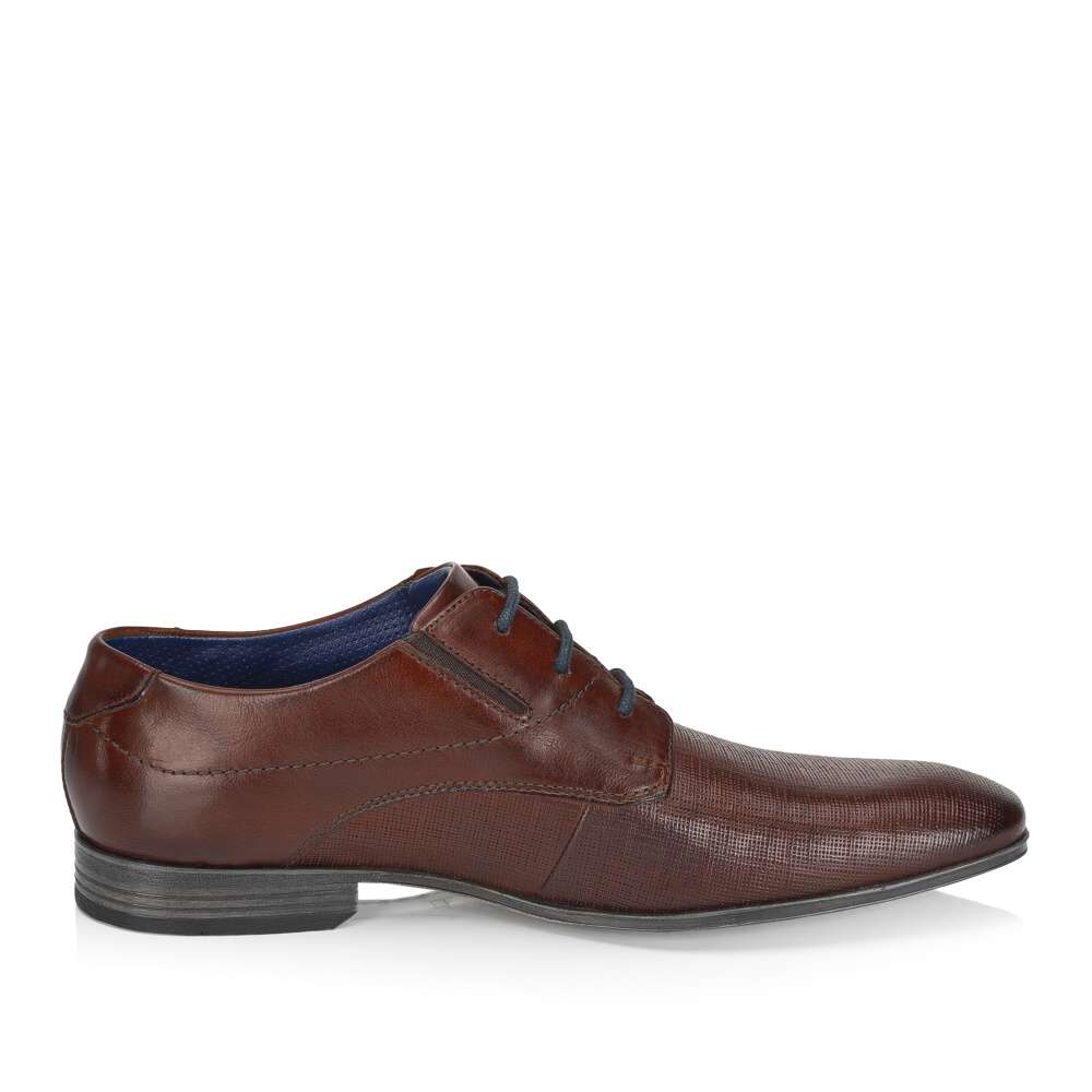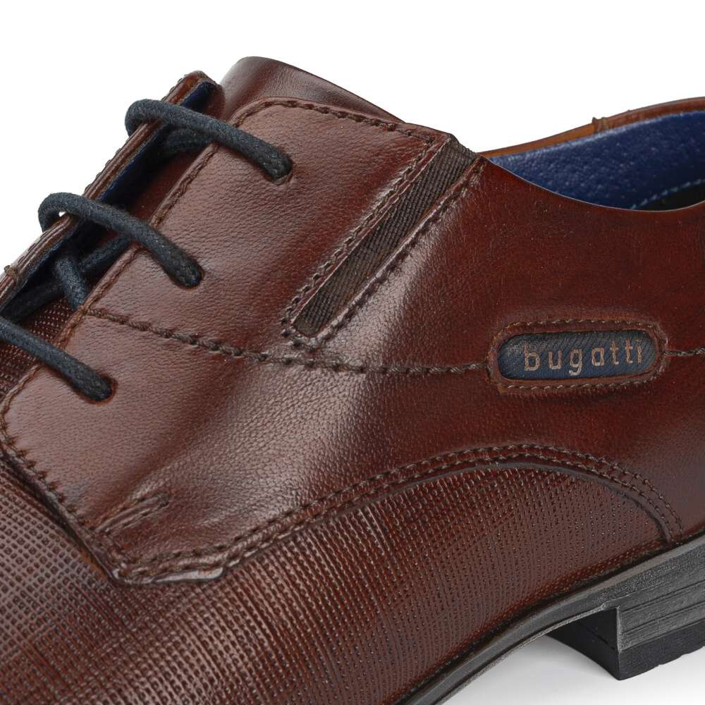 Detailní informace Tyto elegantní polobotky značky BUGATTI využijete jak do práce, tak i do společnosti. Mají kožený hnědý svršek s jemnou strukturou, zúženou kulatou špičku a jemné prošívání, které zdobí obuv. Pro snadné nazouvání a přizpůsobení se je zde šněrování. Pohodlí na každém kroku zajistí měkká stélka a flexibilní podešev. Tento model bude skvěle vypadat s dlouhými kalhotami.