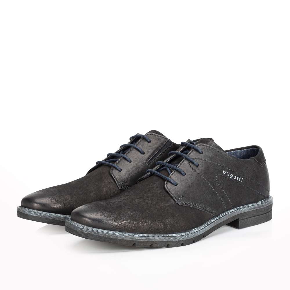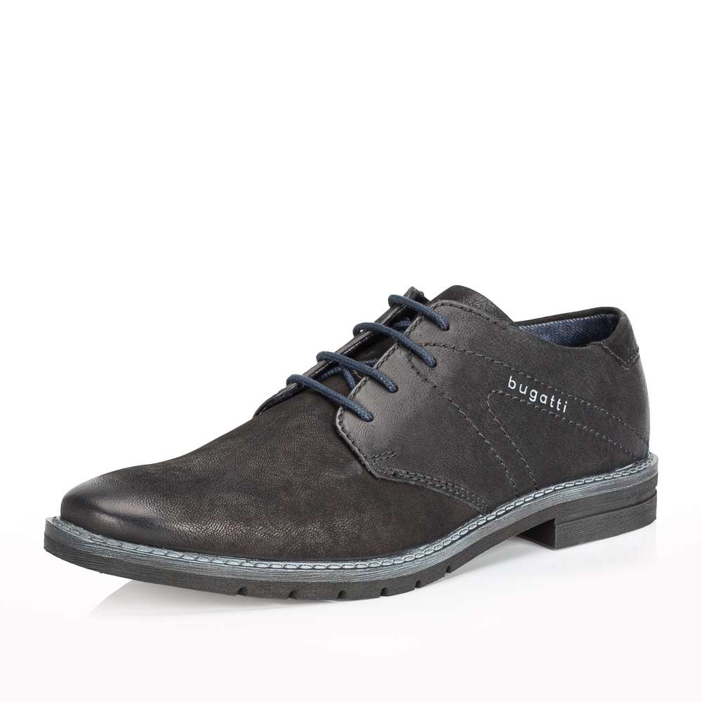 Kožené černé polobotky Bugatti mají nádech elegance, a přitom je dokážete sladit i s ležérním oblečením. Decentní zdobení prošitím a logem vytvoří hezký celkový vzhled. Šněrování usnadní nazutí a přizpůsobení se noze. Kožená stélka zajistí komfort pro chodidlo i celodenním nošení a její tvar vytváří dostatečný prostor v přední části. Tento model lze jednoduše sladit s riflemi i s formálními kalhotami. Technologie: Comfort Wide – tvar boty je přizpůsobený chodidlu pro vytvoření dostatečného prostoru v oblasti přední části chodidla.