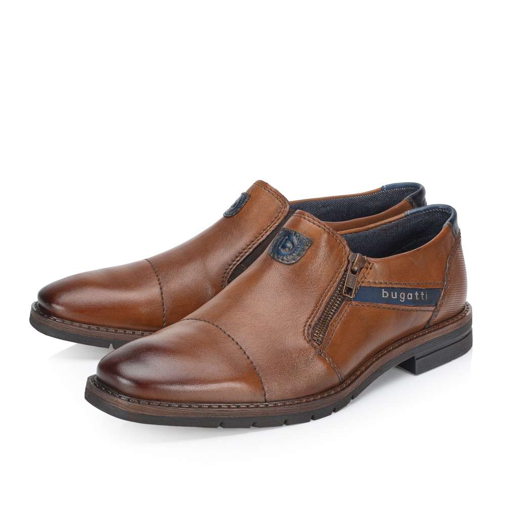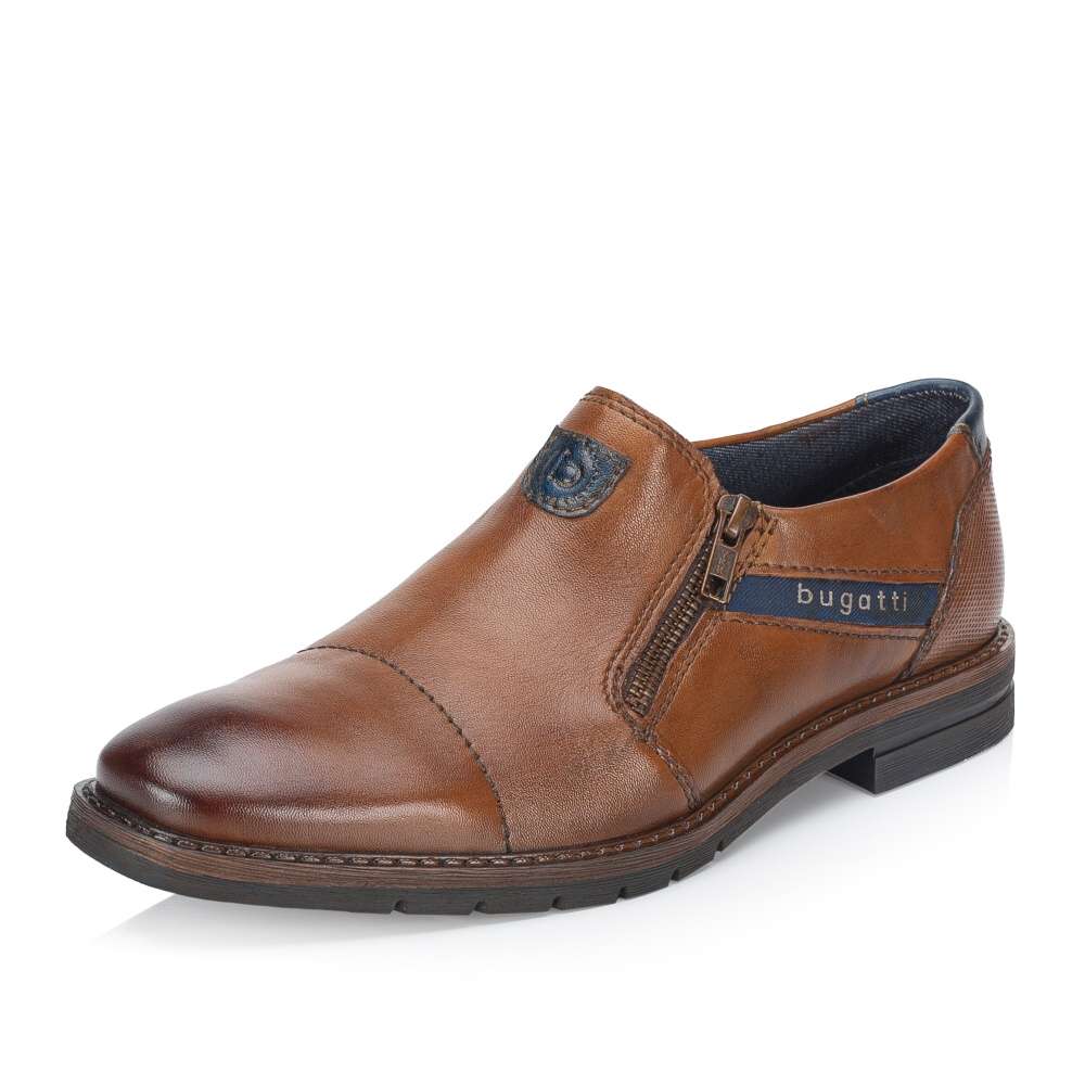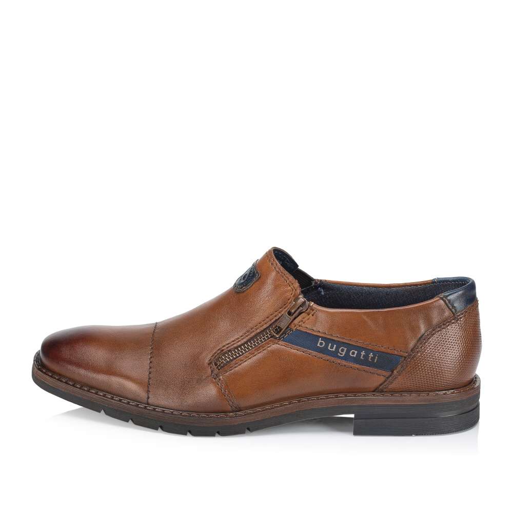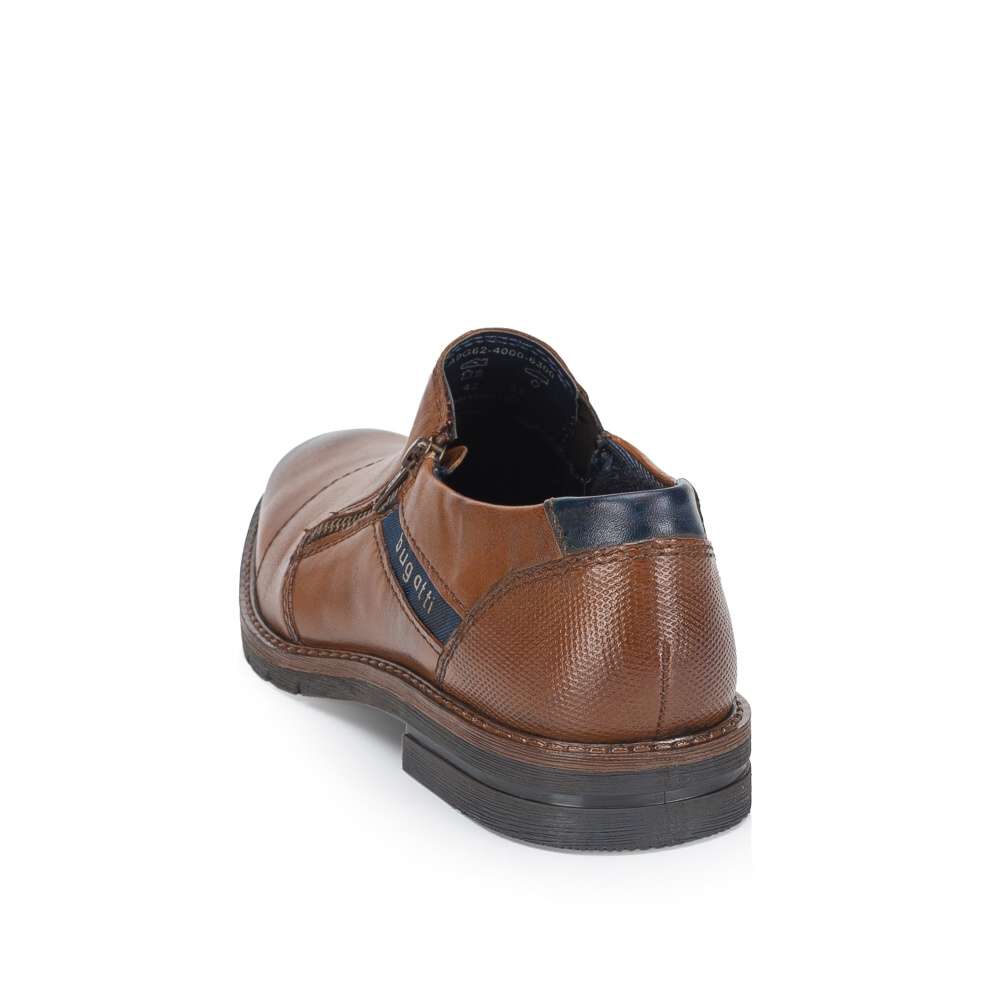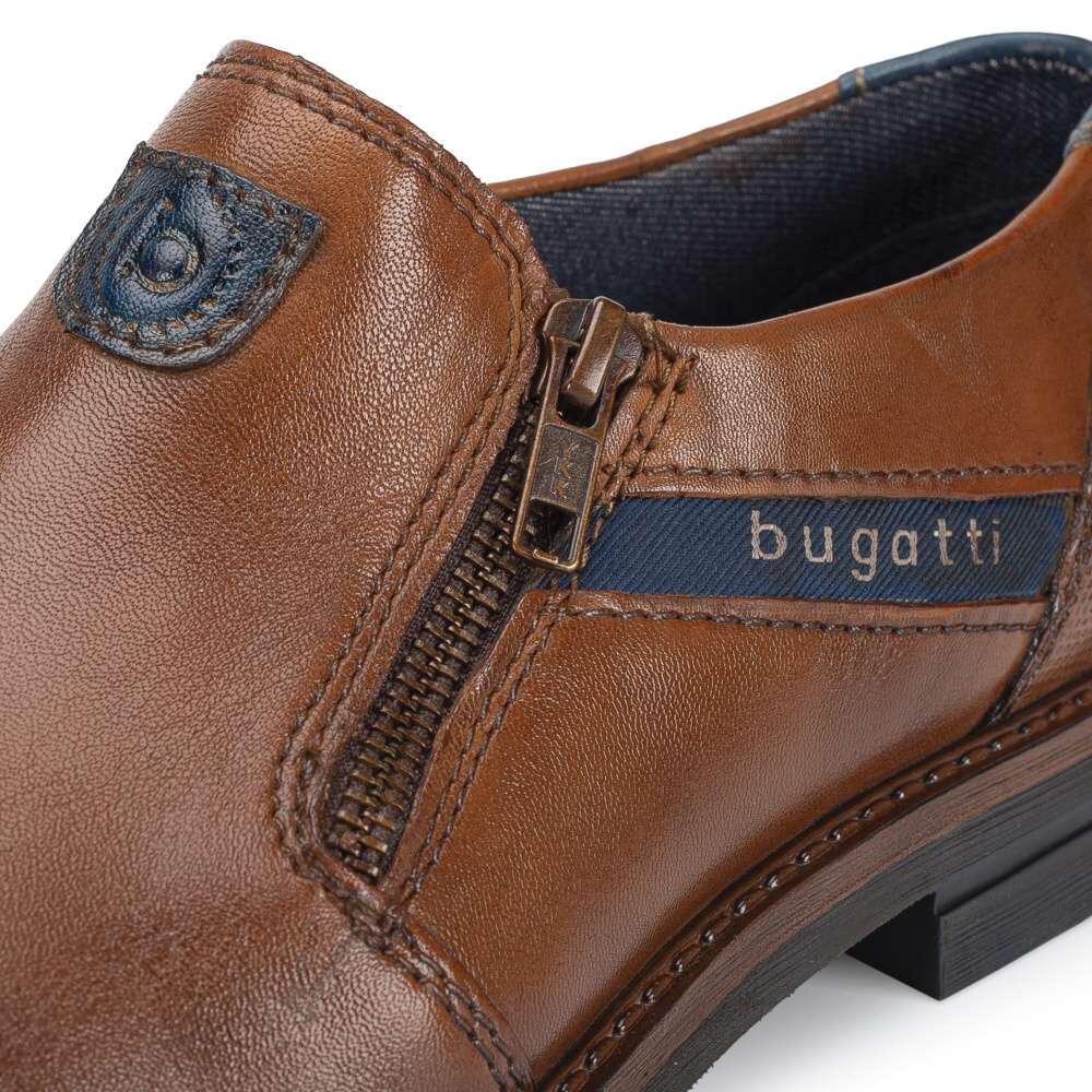 Hnědé kožené boty Bugatti jsou praktickým a stylovým doplňkem pro muže. Díky zipu na nártu a gumičce se snadno obouvají a jejich střih je vhodný pro širší nohu, což zajišťuje pohodlné nošení po celý den. Boty jsou zdobené logy značky na hladkém svršku, což dodává obuvi sofistikovaný vzhled. Tyto boty Bugatti jsou ideální volbou pro muže, kteří chtějí spojit styl, pohodlí a praktičnost ve své obuvi. Technologie: Comfort Wide – tvar boty je přizpůsobený chodidlu pro vytvoření dostatečného prostoru v oblasti přední části chodidla.