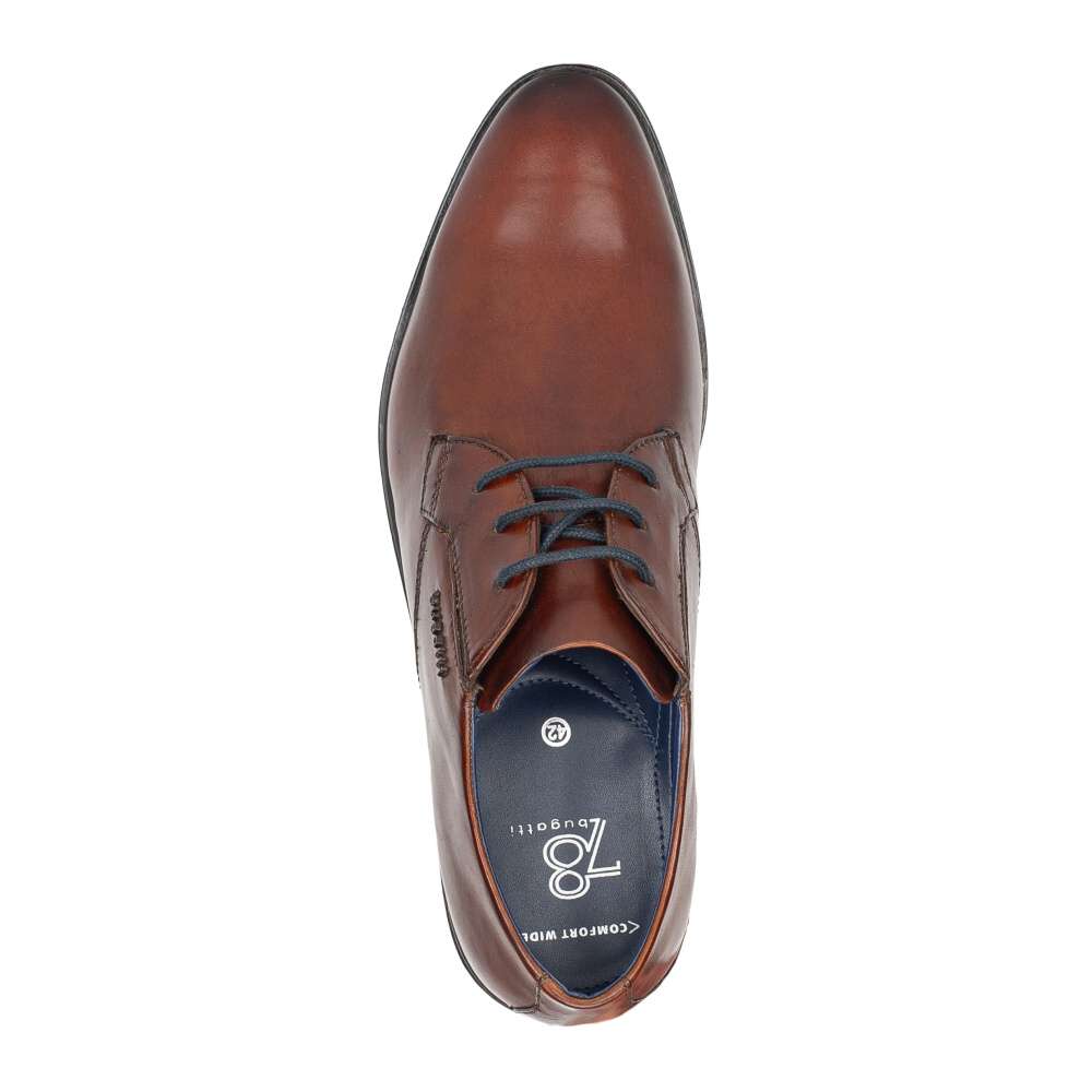 Tyto elegantní polobotky značky BUGATTI využijete jak do práce, tak i do společnosti. Mají kožený hnědý svršek, zúženou kulatou špičku a jemné prošívání, které zdobí obuv. Pro snadné nazouvání a přizpůsobení se je zde šněrování. Pohodlí na každém kroku zajistí měkká stélka a flexibilní podešev. Tento model bude skvěle vypadat s dlouhými kalhotami. Technologie: Comfort Wide – tvar boty je přizpůsobený chodidlu pro vytvoření dostatečného prostoru v oblasti přední části chodidla.