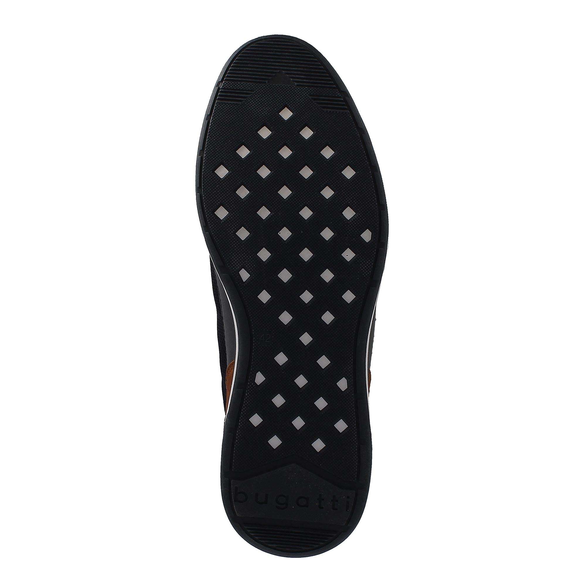 Pánské tenisky jsou zdobené kontrastními prvky a znakem Bugatti na vnější straně i kombinací hladkého materiálu a textilu. Šněrováním si pak obuv upravíte dle Vašich požadavků. Vyjímatelnou stélku můžete kdykoliv vyměnit či vyvětrat. Tento jednoduchý model unosíte jak do práce, tak na procházky městem.