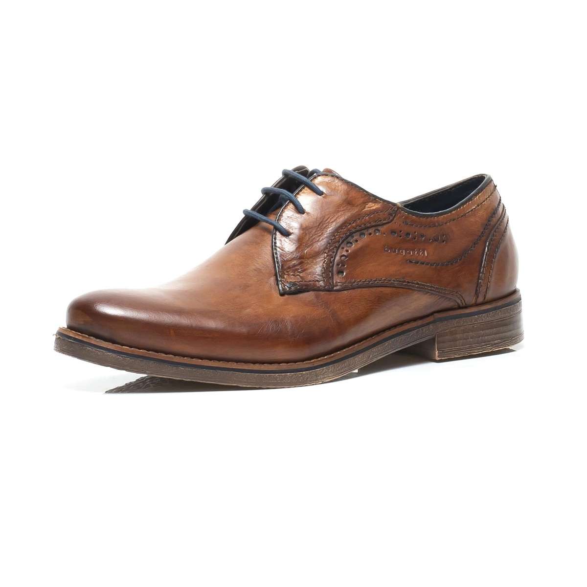 Pánské kožené polobotky hnědé barvy, značky BUGATTI.