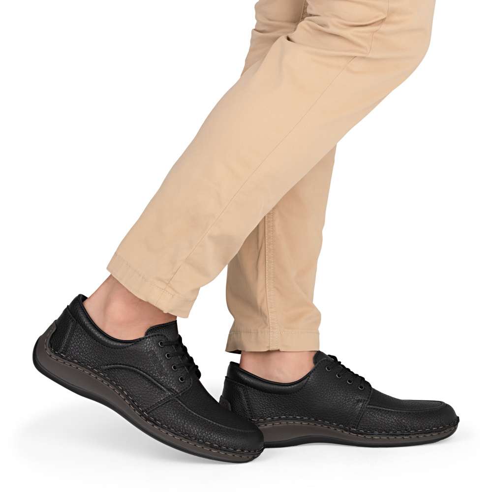 Tento model pánských bot RIEKER je ztělesněním nadčasové elegance a maximálního pohodlí. Jedná se o klasický kousek, který by neměl chybět v šatníku žádného muže – spojuje jednoduchost, kvalitu a univerzální styl, díky čemuž se dokonale hodí pro běžné nošení i formálnější příležitosti. Svršek boty zdobí jen decentní prošívání a logo značky, což podtrhuje jejich čistý vzhled. Praktické šněrování zaručuje snadné nazouvání a zároveň možnost přizpůsobit si botu přesně podle tvaru vaší nohy. Vnitřní zpracování je navrženo s důrazem na komfort – kožená stélka, širší střih a flexibilní podešev tlumící nárazy se postarají o pohodlí i během dlouhých dnů. Tento model oceníte pro jeho všestrannost a nadčasový design.