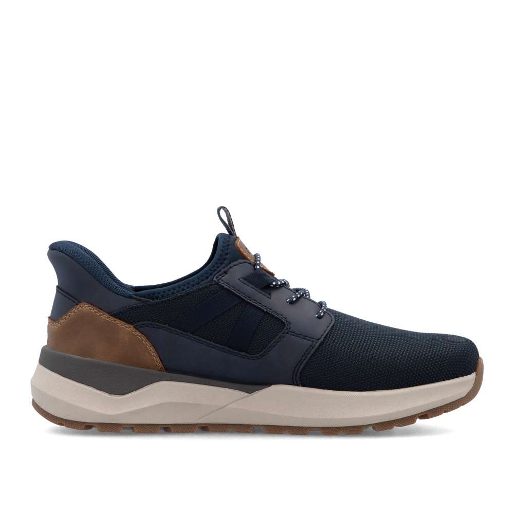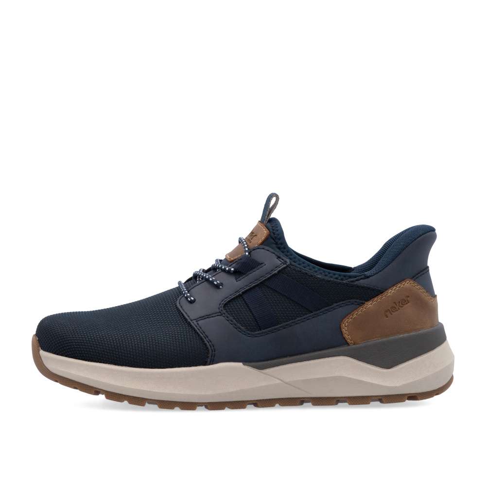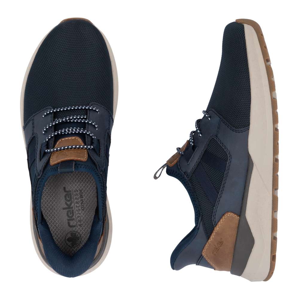 Tenisky RIEKER v trendy designu přinášejí dokonalou kombinaci stylu a pohodlí. Zajímavá kombinace barev a materiálů svršku vytváří jedinečný vzhled doplněný logem značky. Pružný lem horního okraje a gumička namísto šněrování zajišťují snadné obutí a přizpůsobení boty individuálním potřebám. Potřebný celodenní komfort je zajištěn kvalitními materiály svršku a vyjímatelnou stélkou. Stabilní podešev s dobrou přilnavostí poskytuje optimální oporu při každém kroku. Tento model je ideální pro muže, kteří hledají pohodlné a moderní obutí pro každodenní nošení. Technologie: Antistress – díky čtyřem antistresovým vlastnostem – lehkosti, pružnosti, prostornosti a vynikající absorpci nárazů – vám boty RIEKER nabídnou komfortnější chůzi. Ready2GO – obout a jít, díky tvarově stabilní patní části je obouvání snadné bez použití pomůcek a rukou. EXTRA WIDE – boty jsou širšího střihu, tvar boty je přizpůsoben chodidlu pro vytvoření dostatečného prostoru v oblasti přední části chodidla. Tato bota je vybavena vyjímatelnou stélkou.