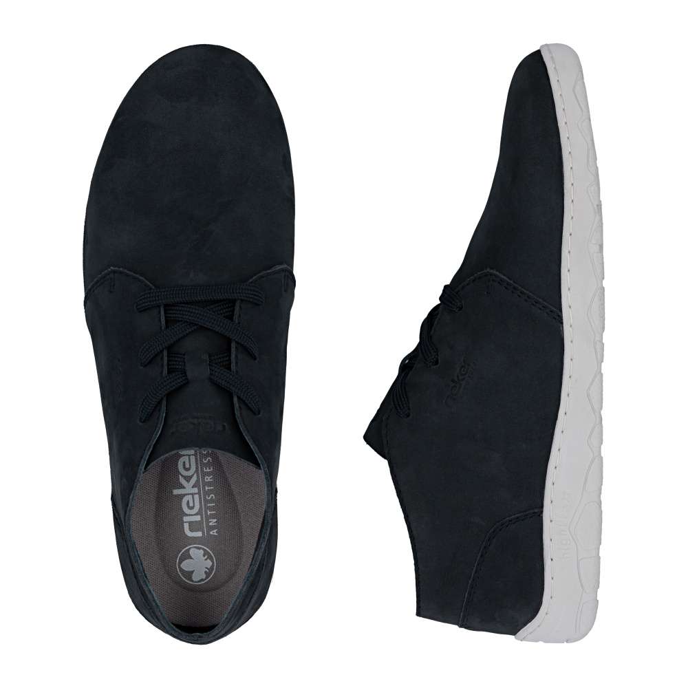 Kožená klasika do pánského šatníku – boty RIEKER spojují nadčasový design, kvalitu a maximální pohodlí při nošení. Tmavě modrý kožený svršek působí univerzálně a doplňují jej decentní loga značky, která podtrhují precizní zpracování a dodávají obuvi originální charakter. Šněrování na nártu umožňuje snadné obutí a přesné přizpůsobení tvaru nohy. Vyjímatelná měkká stélka a širší střih bot se postarají o výjimečné pohodlí při každém kroku, svým anatomickým tvarem podpoří přirozený pohyb chodidla. Každodenní nošení zpříjemňuje lehká a flexibilní podešev s technologií RIEKER Antistress, která spolehlivě tlumí nárazy a snižuje únavu nohou i po delším nošení. Tyto boty jsou ideální volbou pro muže, kteří upřednostňují kombinaci nadčasového vzhledu a moderního komfortu – ať už do práce nebo běžné denní nošení.