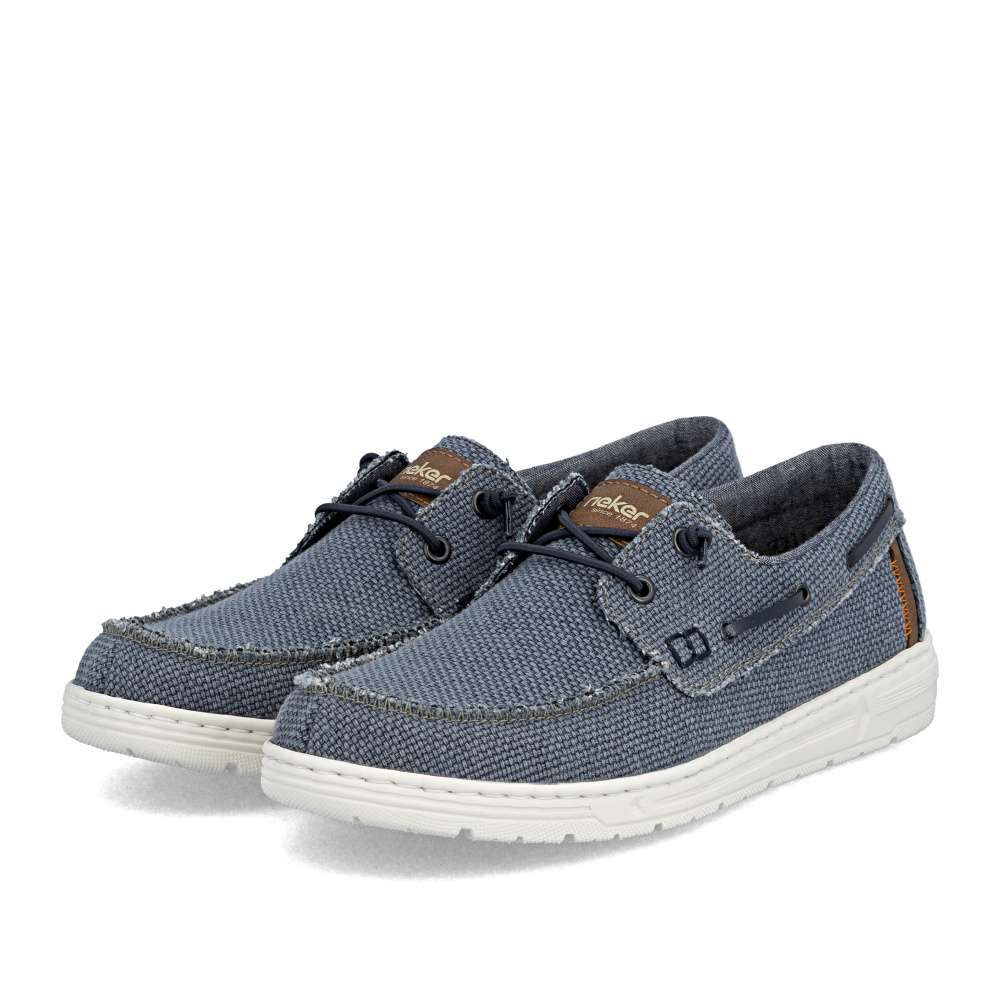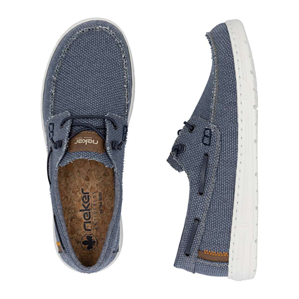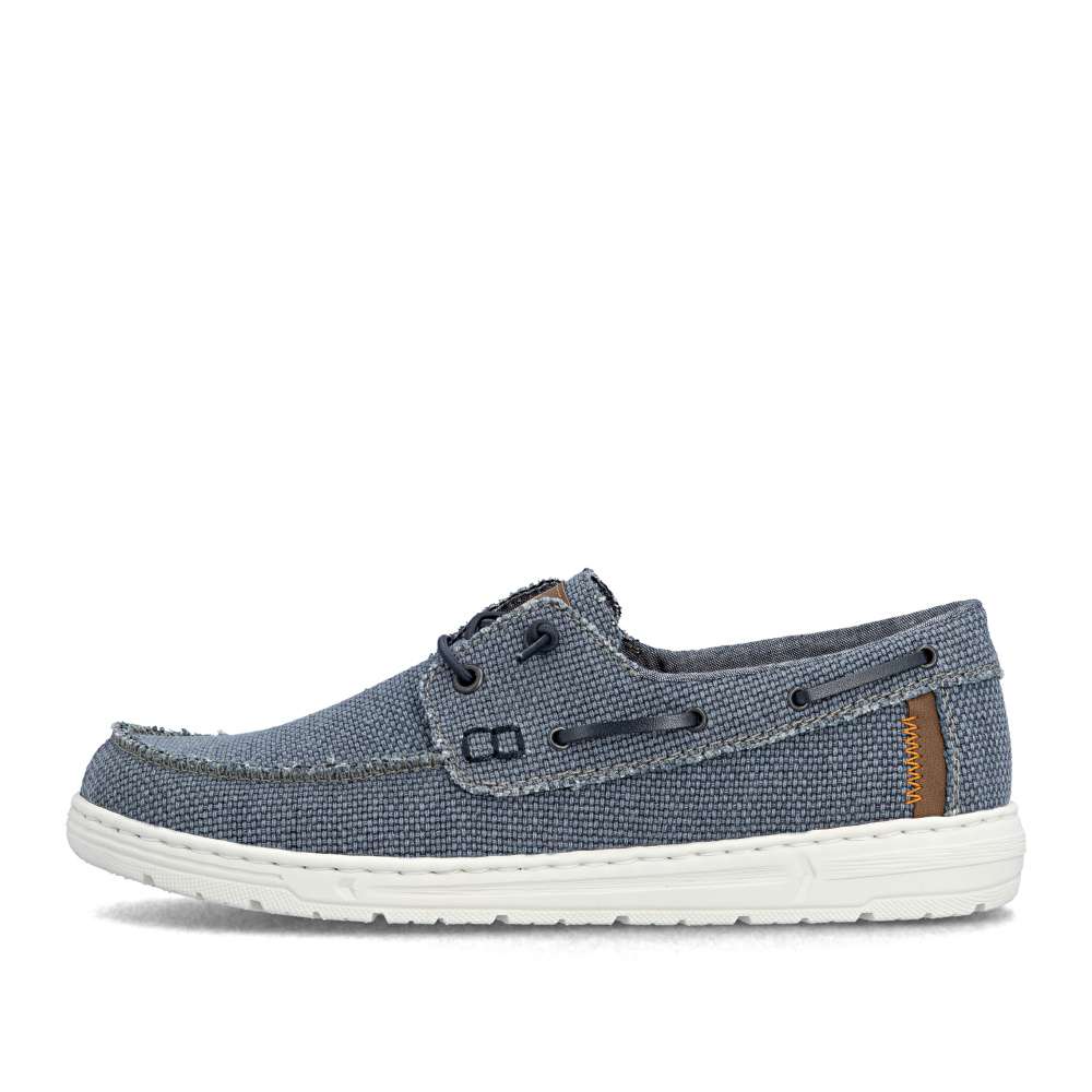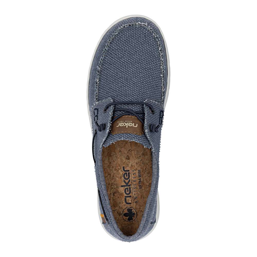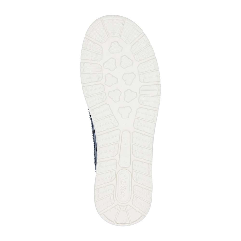 Tyto pánské mokasíny značky RIEKER nabízí dokonalou rovnováhu mezi stylem a pohodlím. Design mokasín je nadčasový a univerzální, díky čemuž se hodí pro každodenní nošení, do práce i pro volný čas. Textilní svršek bot v mladistvě modré barvě je doplněn efektními aplikacemi a nášivkou s logem značky, která přidává modelu atraktivní vzhled. Pružná gumička v části nártu zajišťuje snadné obouvání a zároveň umožňuje optimální přizpůsobení noze. Vyjímatelná stélka a širší střih bot poskytují extra komfort a možnost výměny stélky za jinou Vámi preferovanou. Flexibilní podešev s tlumením nárazů zajišťuje pohodlnou chůzi během celého dne a dodává pocit stability při každém kroku. Tento model je ideální volbou pro muže, kteří nechtějí dělat kompromis mezi atraktivním vzhledem a komfortem.