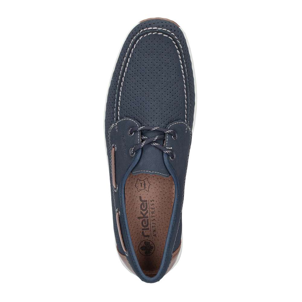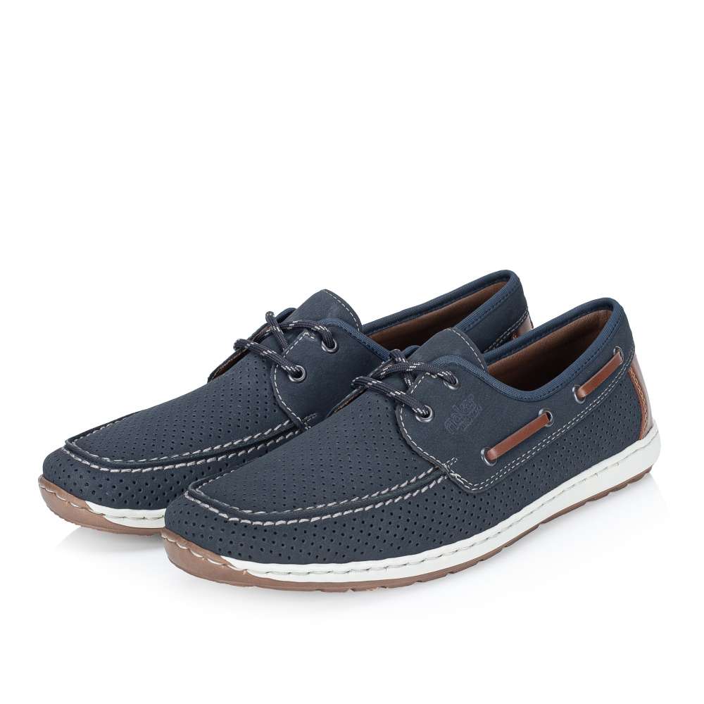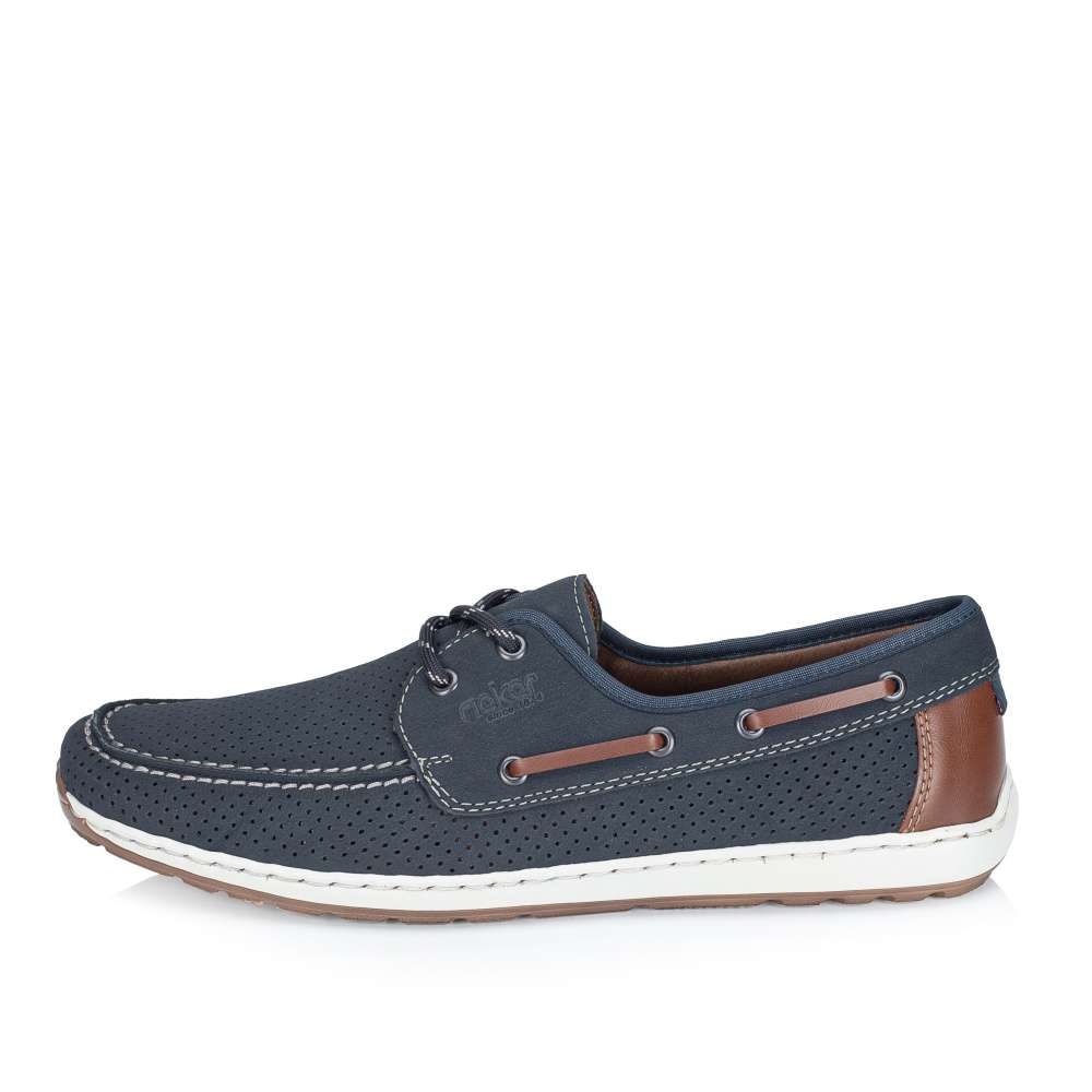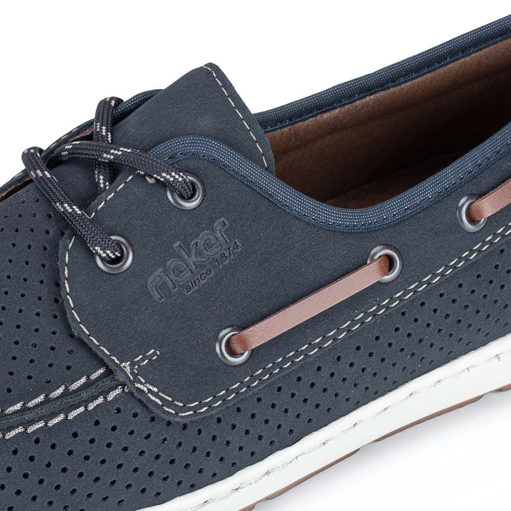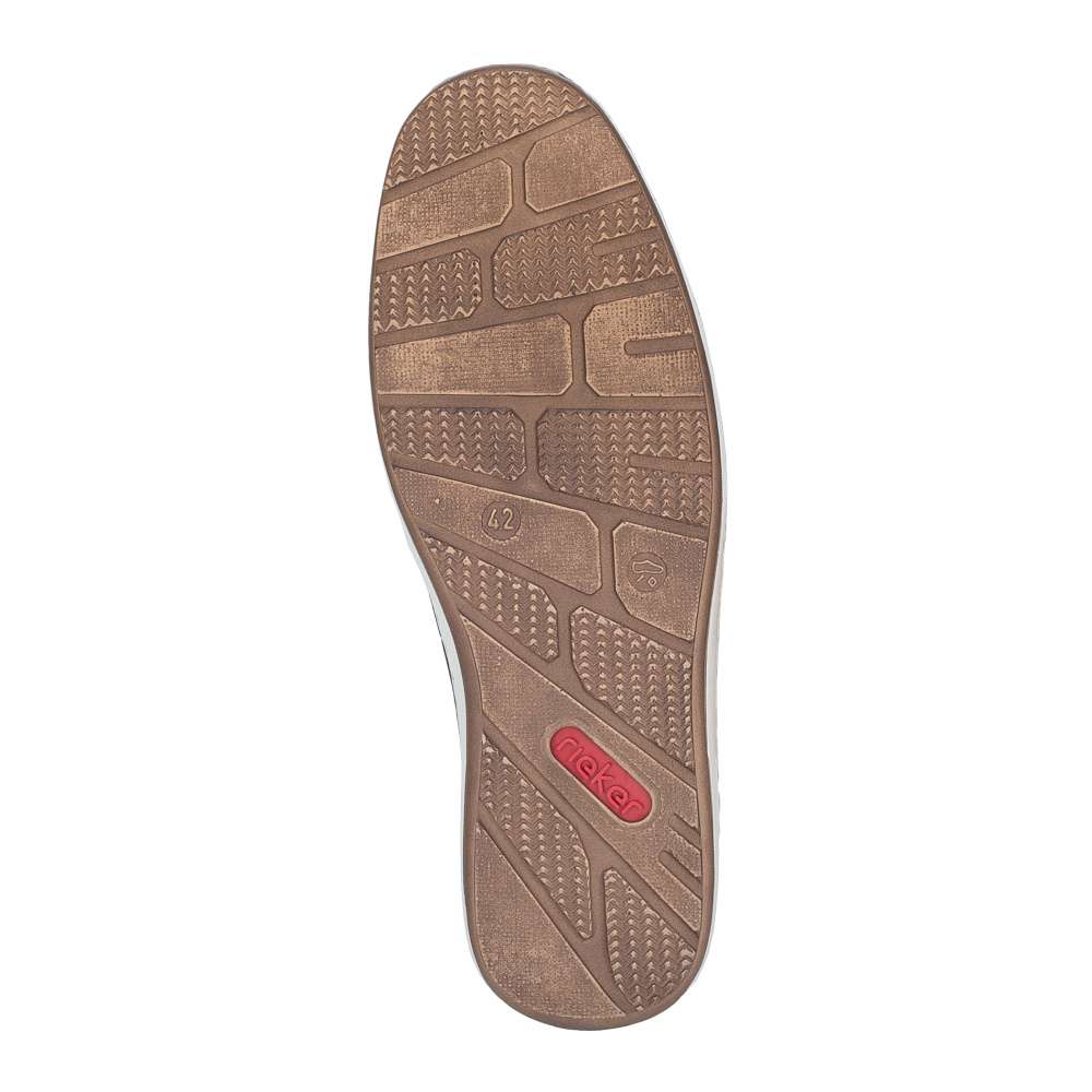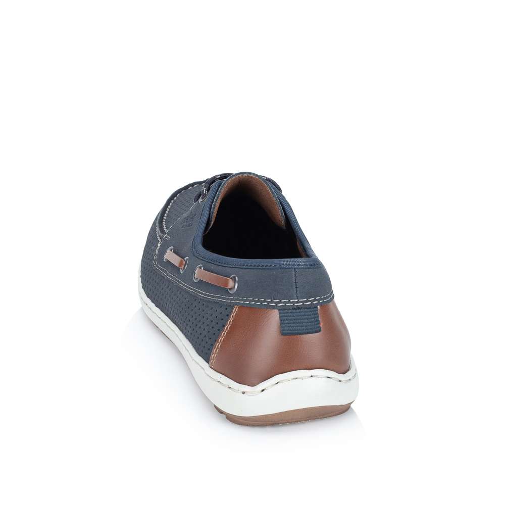 Tyto pánské polobotky značky RIEKER nabízí dokonalou rovnováhu mezi stylem a pohodlím. Design bot je nadčasový a univerzální, díky čemuž se hodí pro každodenní nošení, do práce i pro volný čas. Modrý svršek bot je doplněn perforovaným vzorem, efektními aplikacemi a logem značky, které přidávají modelu atraktivní vzhled. Šněrování zajišťuje snadné obouvání a zároveň umožňuje optimální přizpůsobení noze. Flexibilní podešev s tlumením nárazů zajišťuje pohodlnou chůzi během celého dne a dodává pocit stability při každém kroku. Tento model je ideální volbou pro muže, kteří nechtějí dělat kompromis mezi atraktivním vzhledem a komfortem.