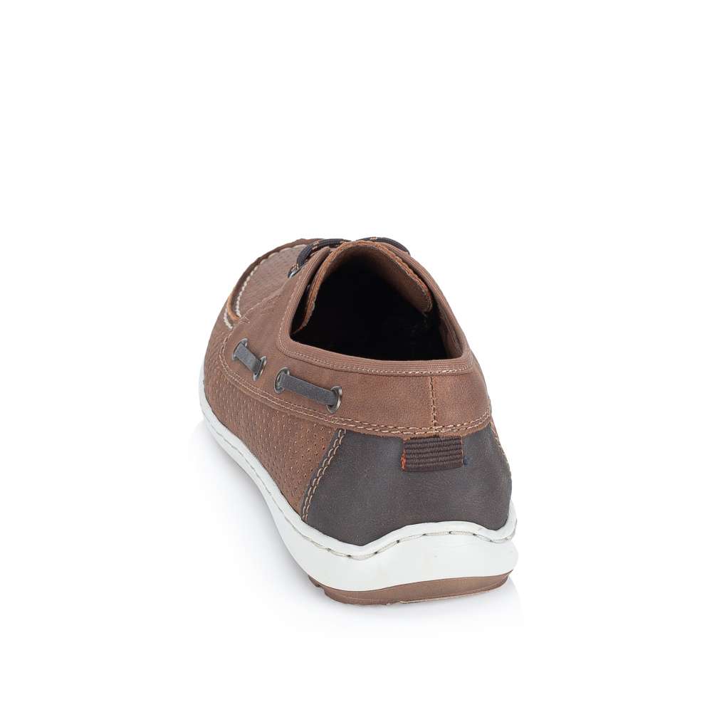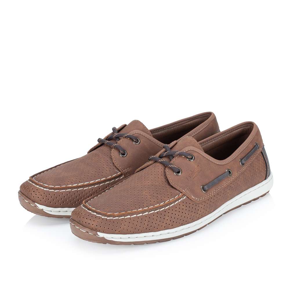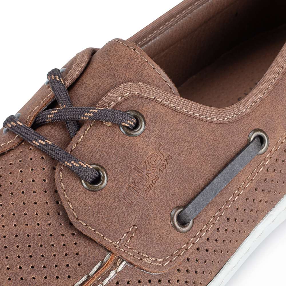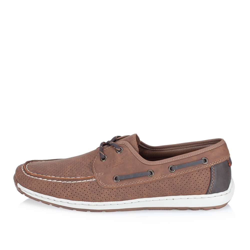 Tyto pánské polobotky značky RIEKER nabízí dokonalou rovnováhu mezi stylem a pohodlím. Design bot je nadčasový a univerzální, díky čemuž se hodí pro každodenní nošení, do práce i pro volný čas. Hnědý svršek bot je doplněn perforovaným vzorem, efektními aplikacemi a logem značky, které přidávají modelu atraktivní vzhled. Šněrování zajišťuje snadné obouvání a zároveň umožňuje optimální přizpůsobení noze. Flexibilní podešev s tlumením nárazů zajišťuje pohodlnou chůzi během celého dne a dodává pocit stability při každém kroku. Tento model je ideální volbou pro muže, kteří nechtějí dělat kompromis mezi atraktivním vzhledem a komfortem.
