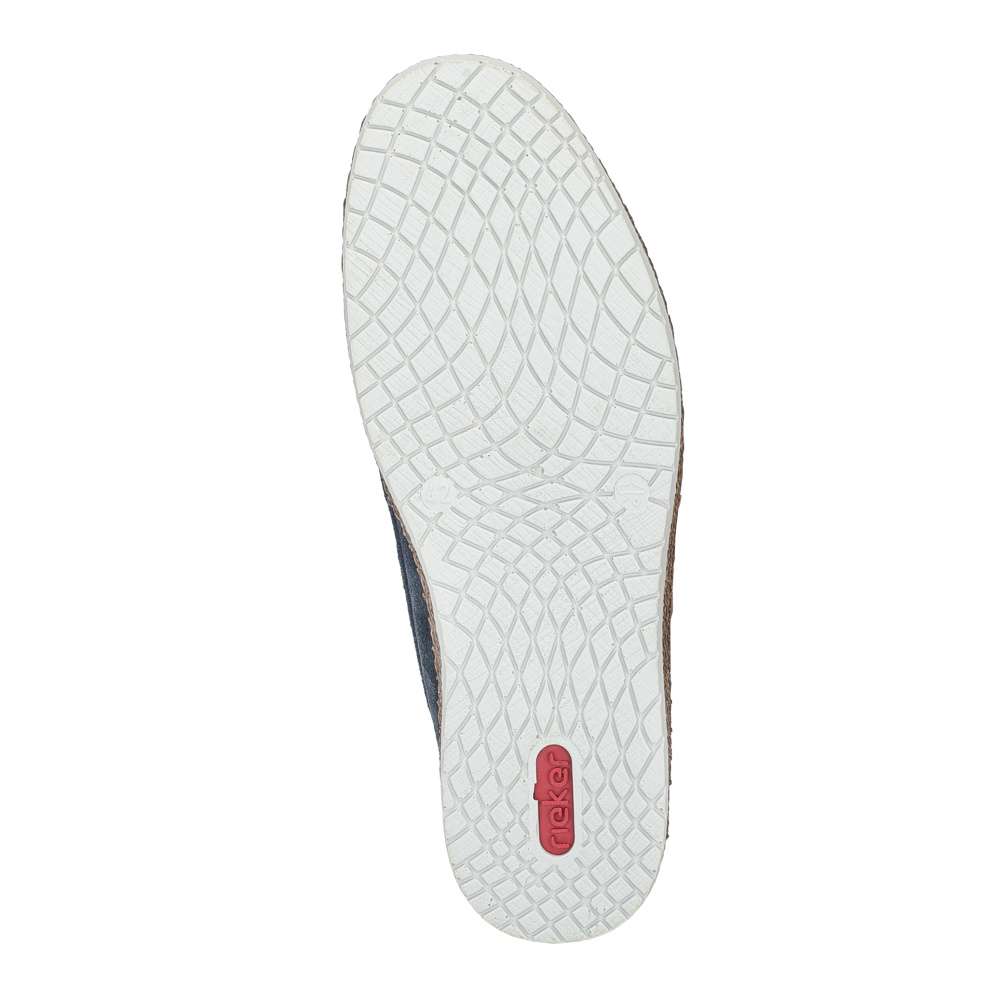 Tyto pánské mokasíny RIEKER jsou ztělesněním komfortu a moderního vkusu, ideální pro muže, kteří si potrpí na kvalitní zpracování a zároveň chtějí vypadat stylově v každé situaci. Jejich kožený svršek tmavě modré barvy působí luxusně a je doplněn decentními prošíváními a hnědými kontrastními detaily, které dodávají obuvi jedinečný charakter. Vnitřek bot je vybaven koženou stélkou, která poskytuje maximální pohodlí i při celodenním nošení. Flexibilní podrážka s tlumením nárazů zaručuje jistotu při každém kroku, čímž výrazně snižuje únavu nohou a nabízí lehkost a stabilitu v jednom. Tyto mokasíny jsou ideální volbou pro formální i volnočasové outfity – dokonale se hodí k elegantním kalhotám, ale také k džínům. Díky svému nadčasovému designu, preciznímu zpracování a důrazu na komfort se stávají neodmyslitelnou součástí moderního pánského šatníku.