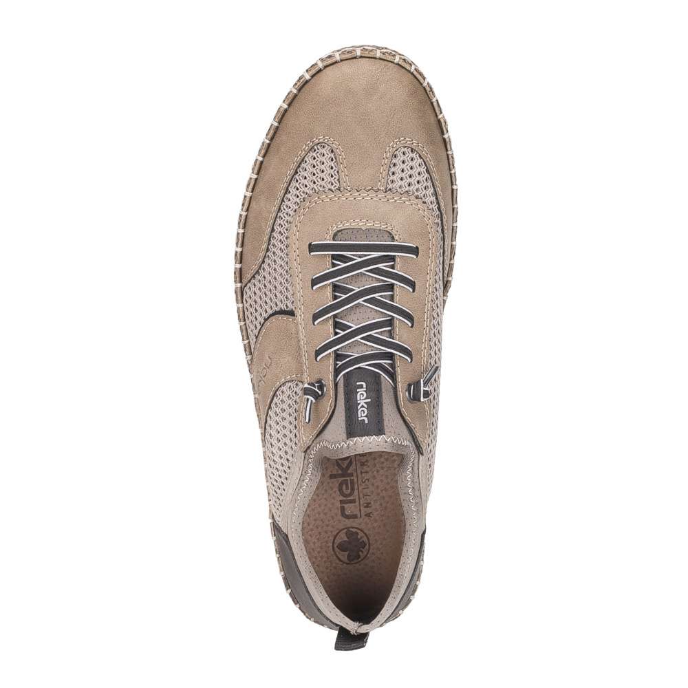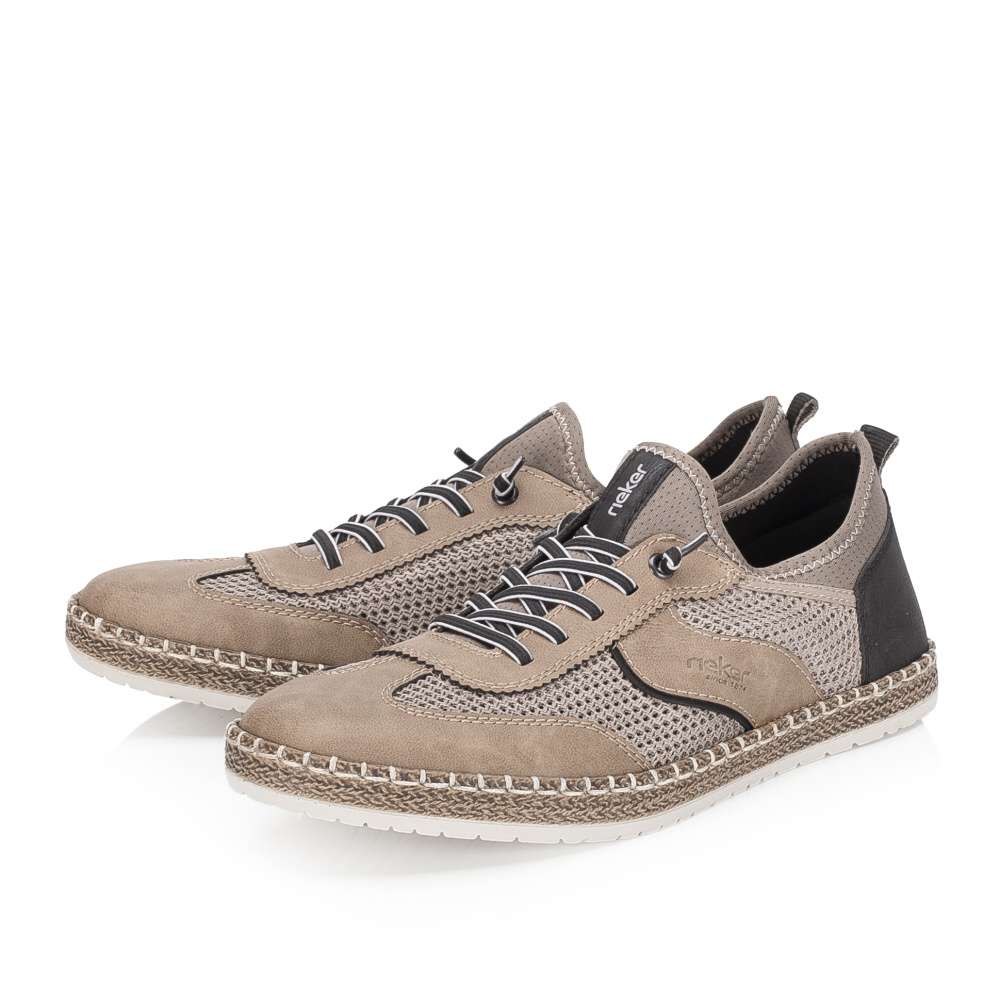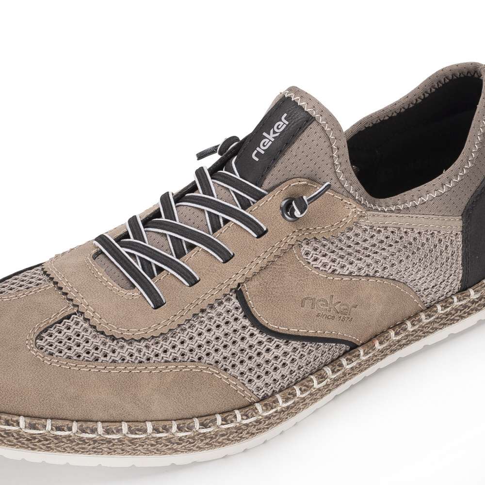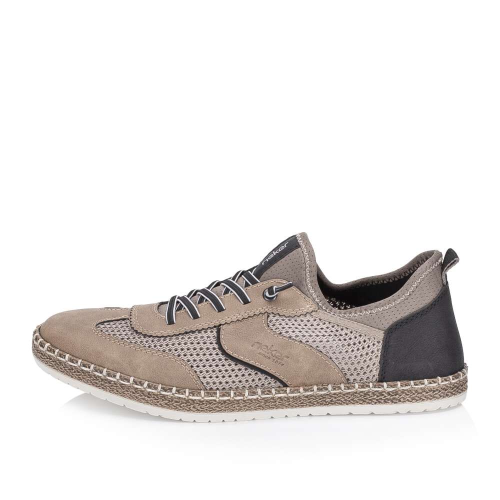 Tato pánská obuv značky RIEKER bude vaším spolehlivým společníkem pro každý den, spojující moderní vzhled a poskytované pohodlí. Vizuálně atraktivní vzhled svršku vytváří materiálová kombinace struktur a barev, prodyšný textilní materiál působí stylově a zároveň zajišťuje optimální cirkulaci vzduchu, takže vaše chodidla zůstanou v pohodlí i během delšího nošení. Design dotváří logo značky RIEKER a efektní dekorací je gumička namísto šněrování. Textilní lem horního okraje poskytne jednoduché nazutí, kdy vstoupíte do kožené stélky poskytující komfort při každém kroku. Podešev s technologií Antistress tlumí nárazy, snižuje únavu nohou a zajišťuje lehkost a flexibilitu během chůze. Zajímavým prvkem je také atraktivní vzhled podešve, který dodává botám moderní charakter. Tato obuv RIEKER je ideální volbou pro muže, kteří hledají kombinaci stylu, pohodlí a funkčnosti – ať už do práce, pro volný čas nebo do města.